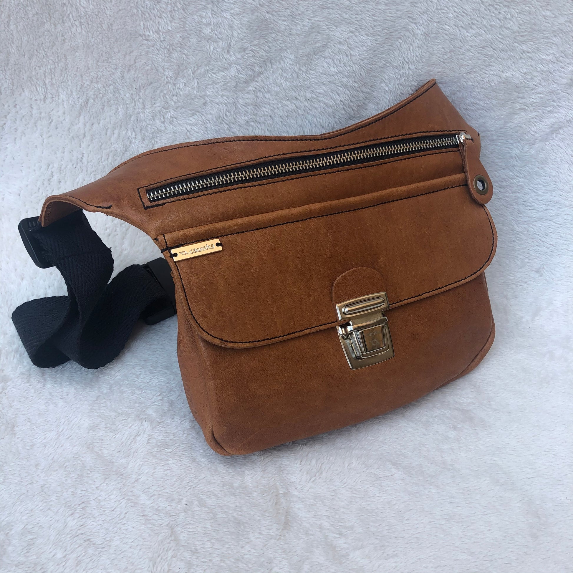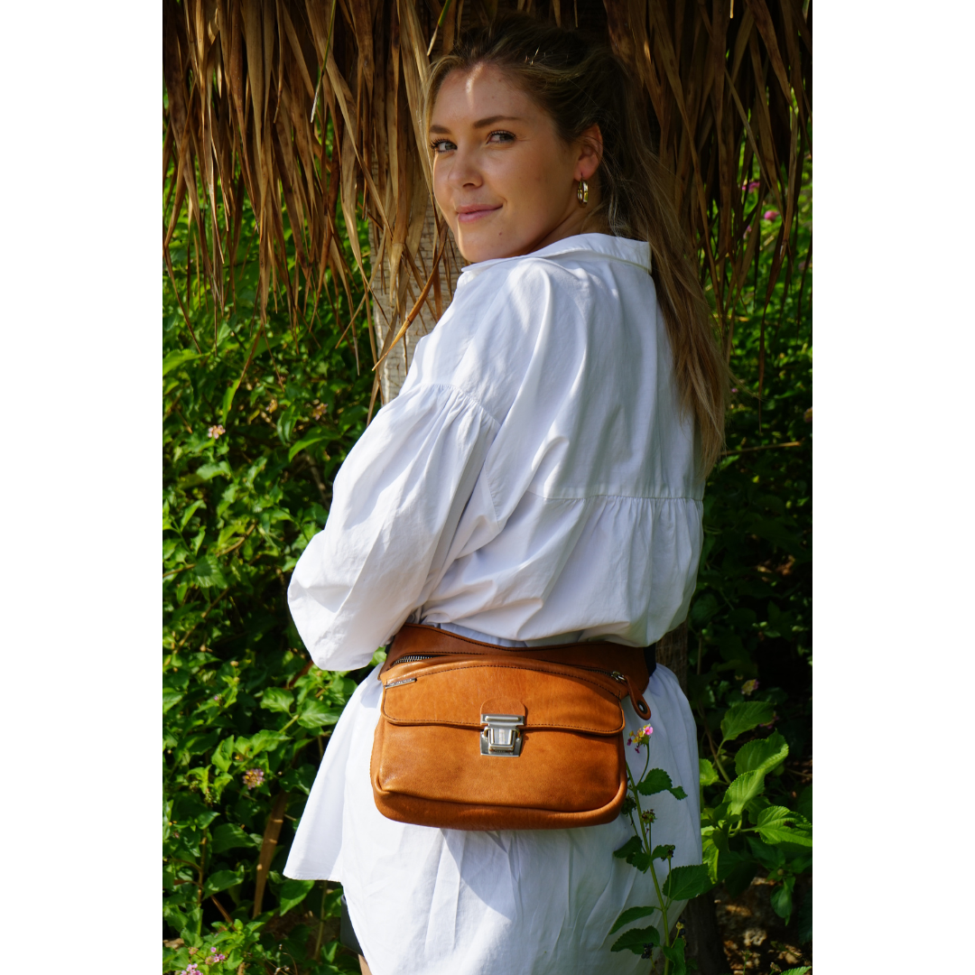 Multifunktions-Hüfttasche (Fan Bag - Bag - Shoulder Bag) aus chromfreiem BioCuir® Naturleder.