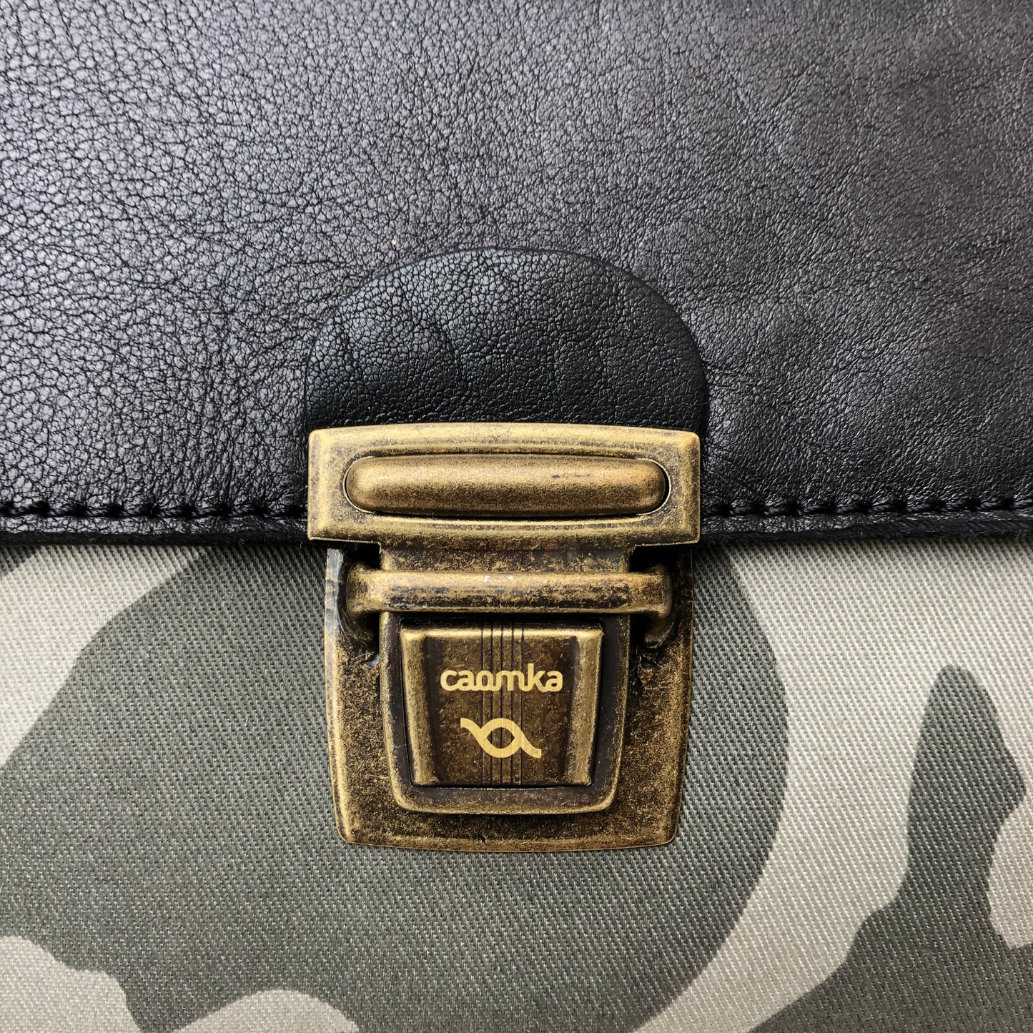Spezieller "Vintage"-Verschluss in Altgoldfarbe mit Caomka-Gravur.