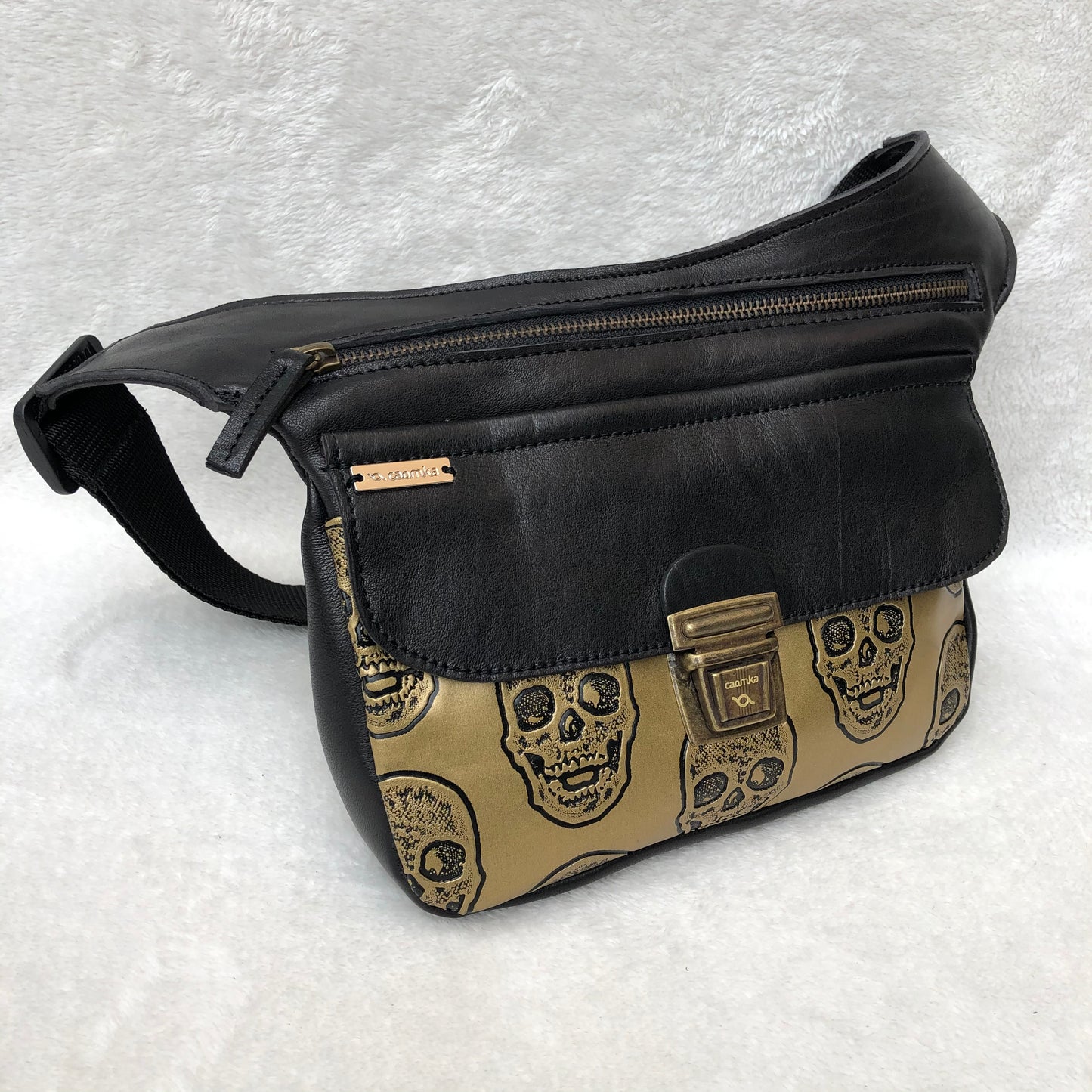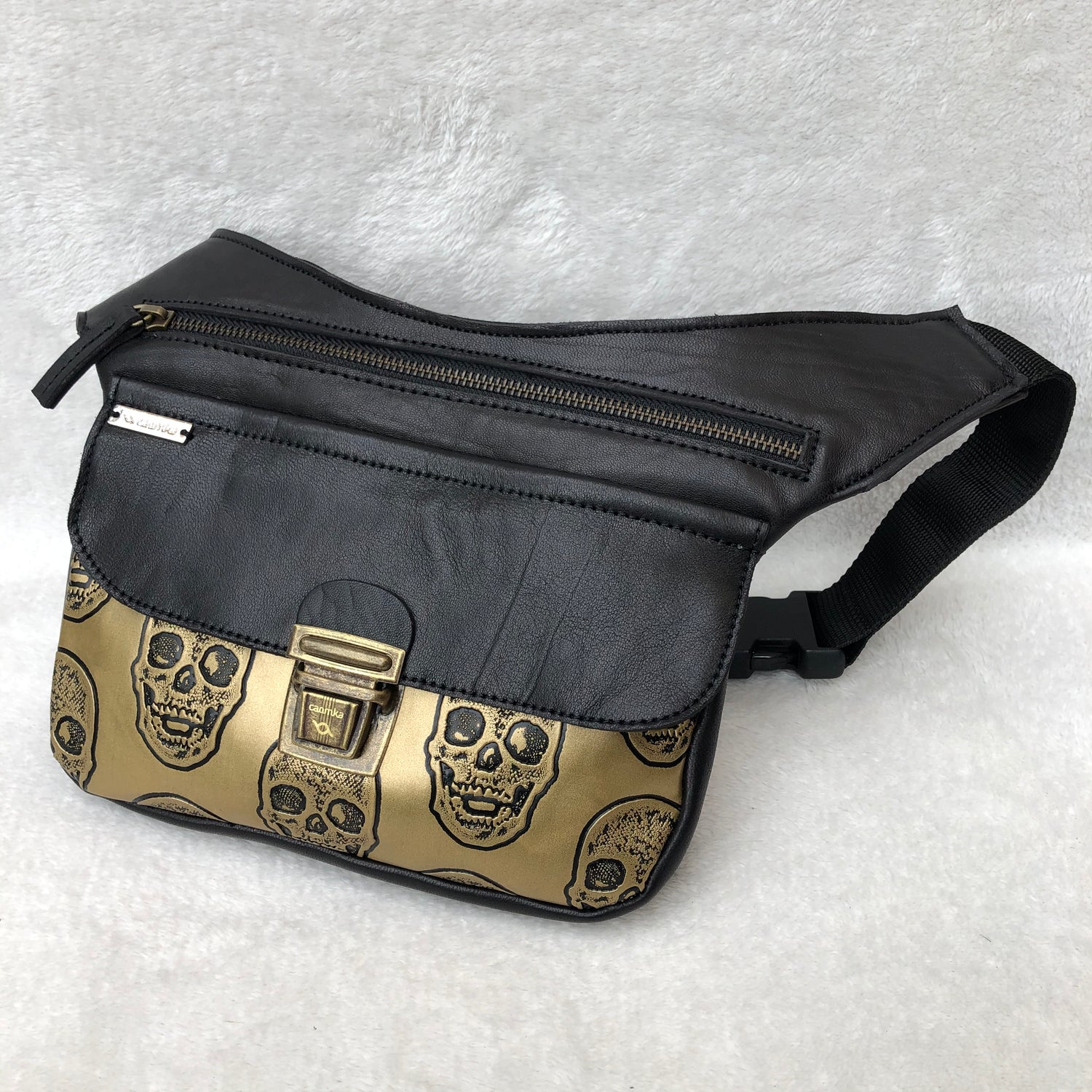 EcoFast Black Special Skulls Golden. ECO FAST® Naturleder und Kunstleder. Exklusives Stück Nr. 6829