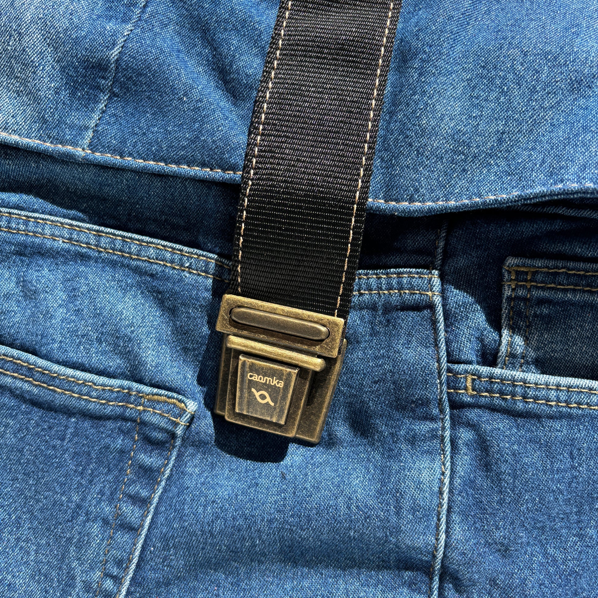 Mochila Caomka ultraligera confeccionada con tejido procedente de vaqueros reutilizados.