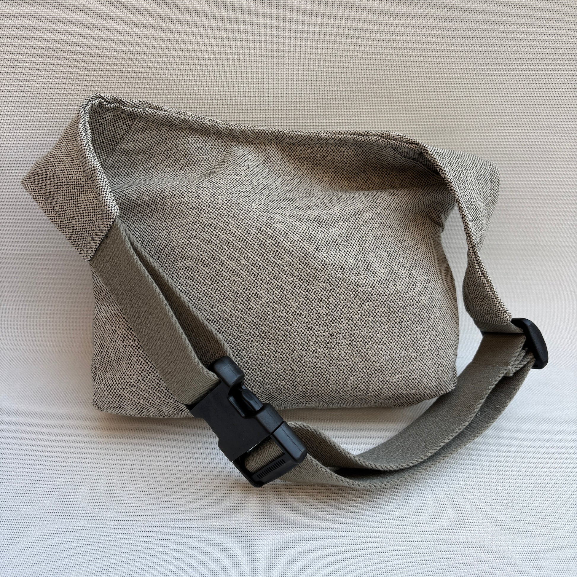 El contraste entre base neutra y estampado vibrante convierte esta pieza en una riñonera fácil de combinar pero con un punto artístico y distintivo.