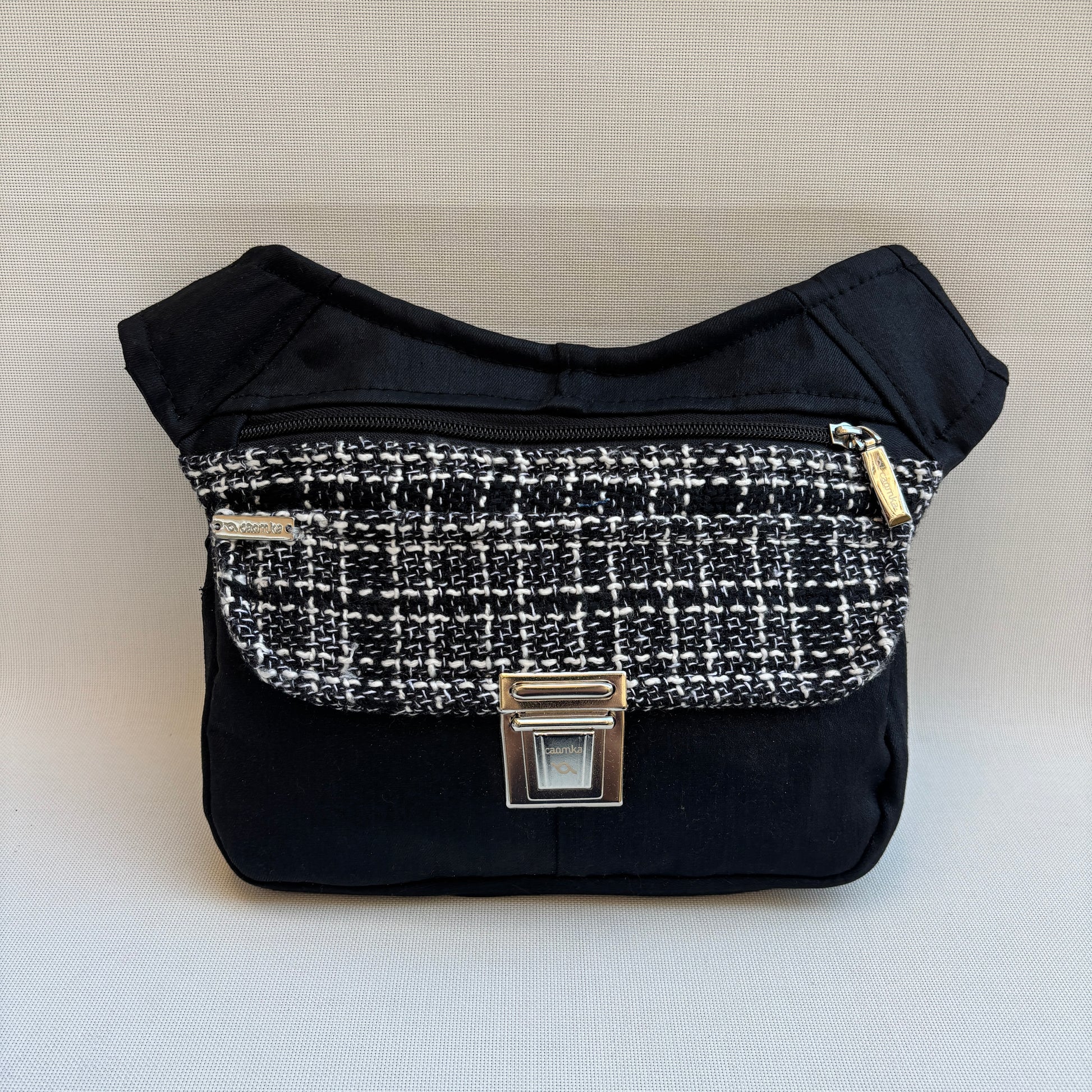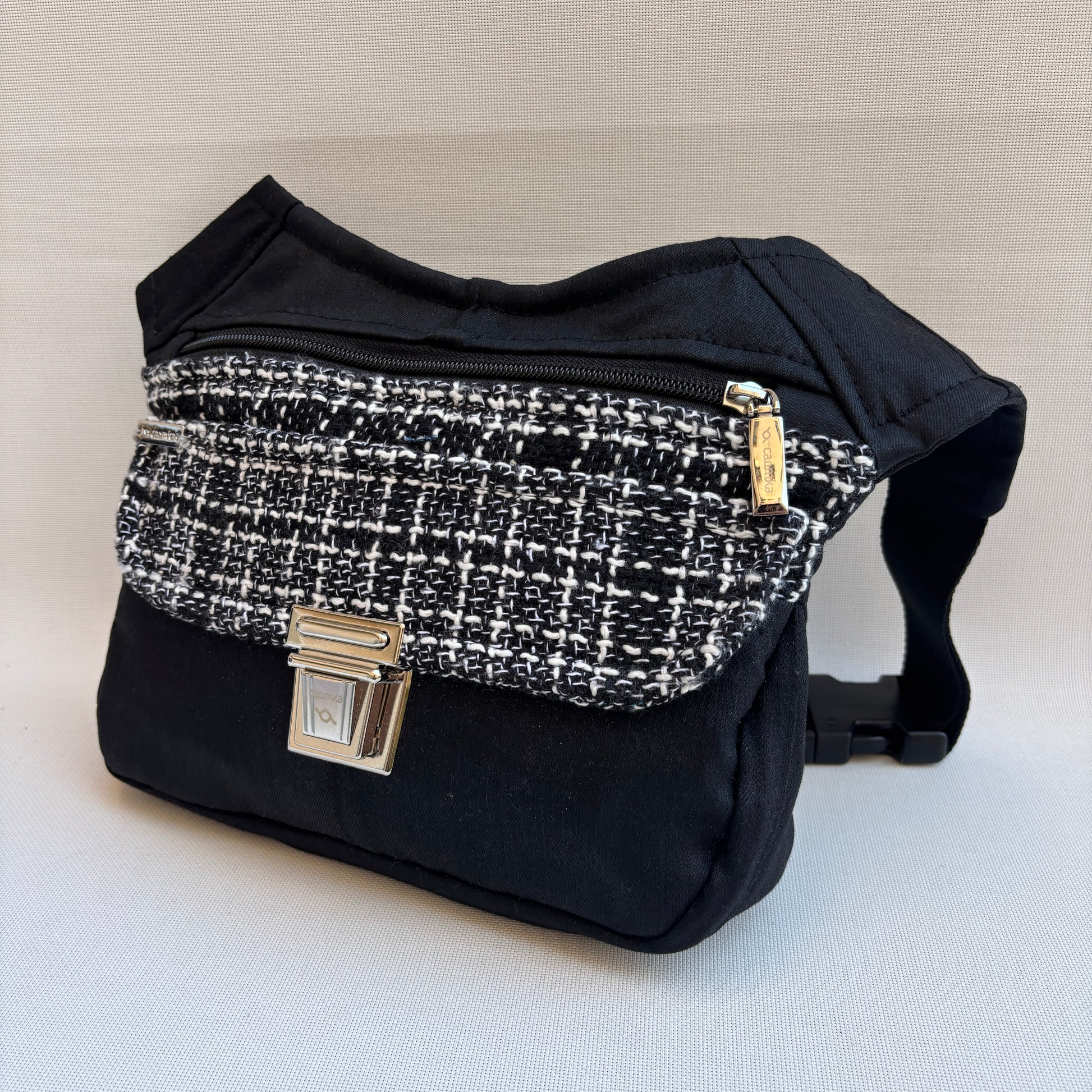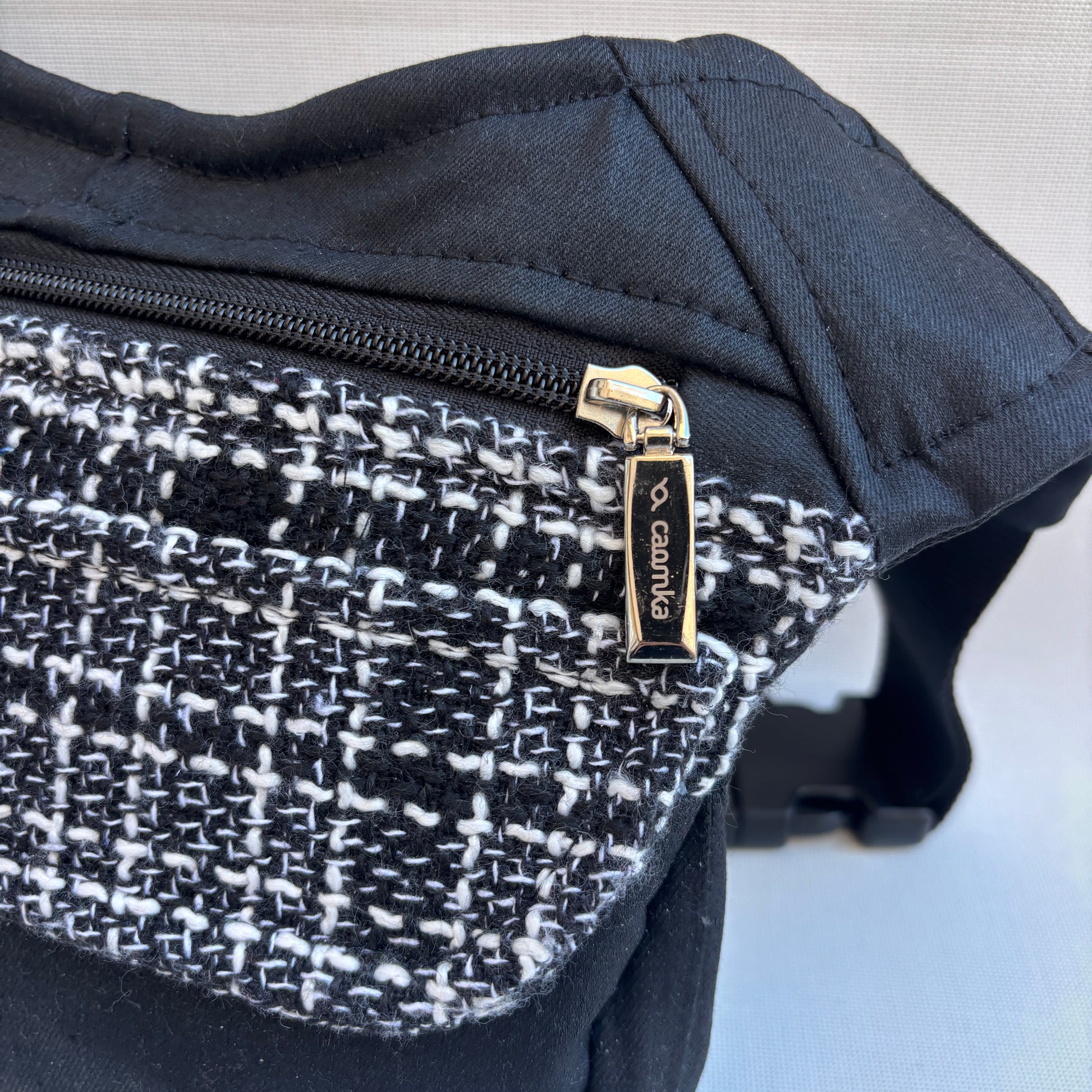Originaler schwarzer Reißverschluss, passend zum speziellen Caomka-Griff in Silber .
