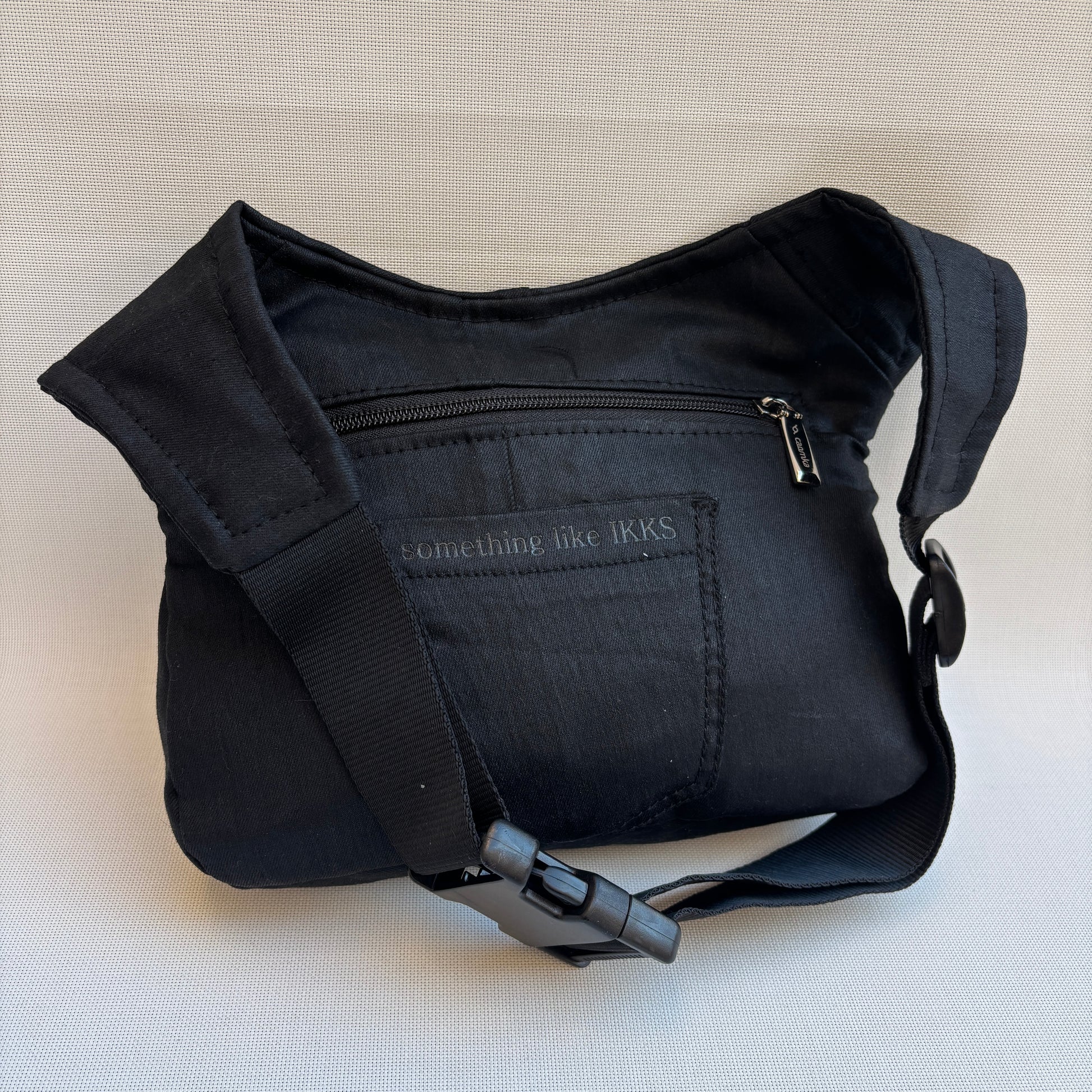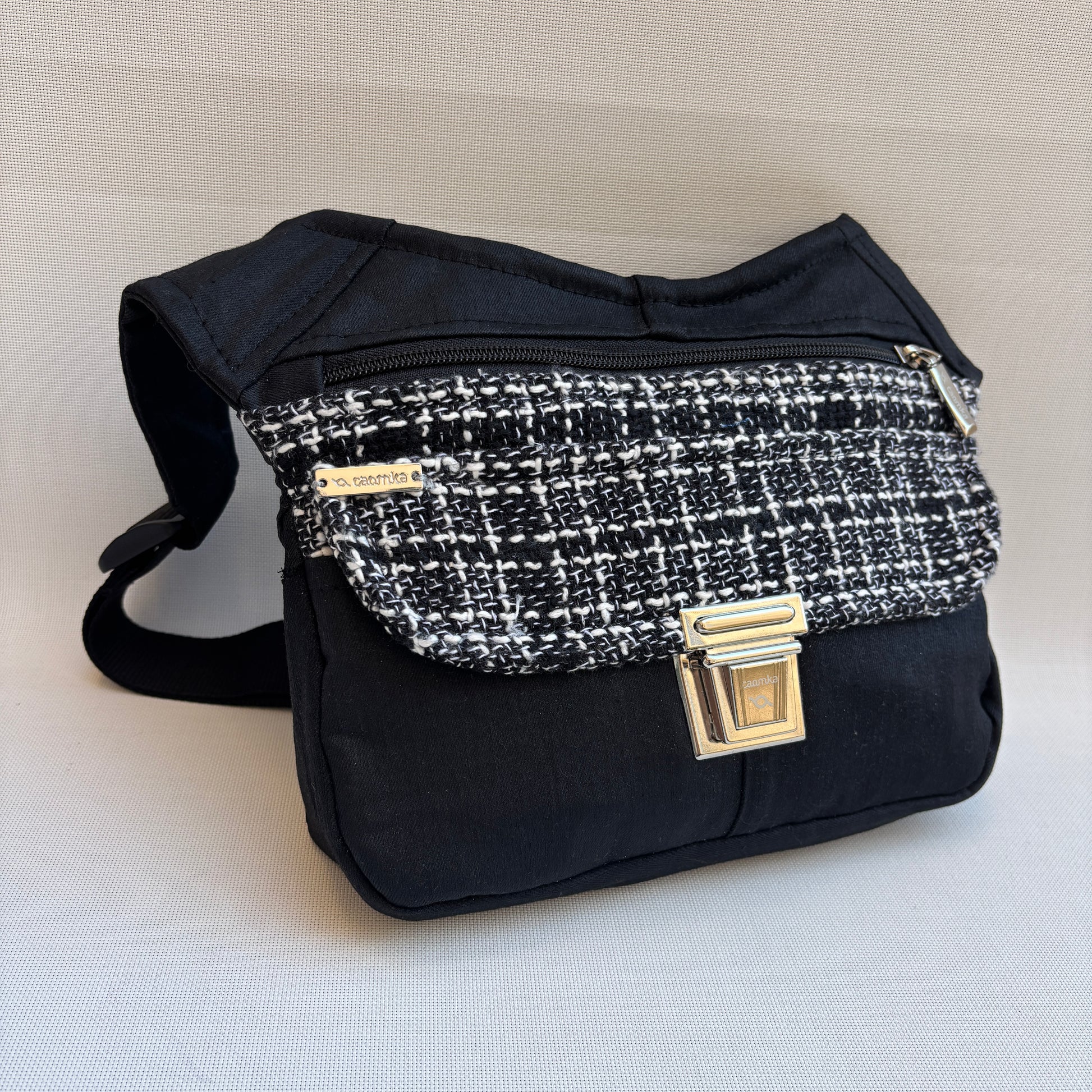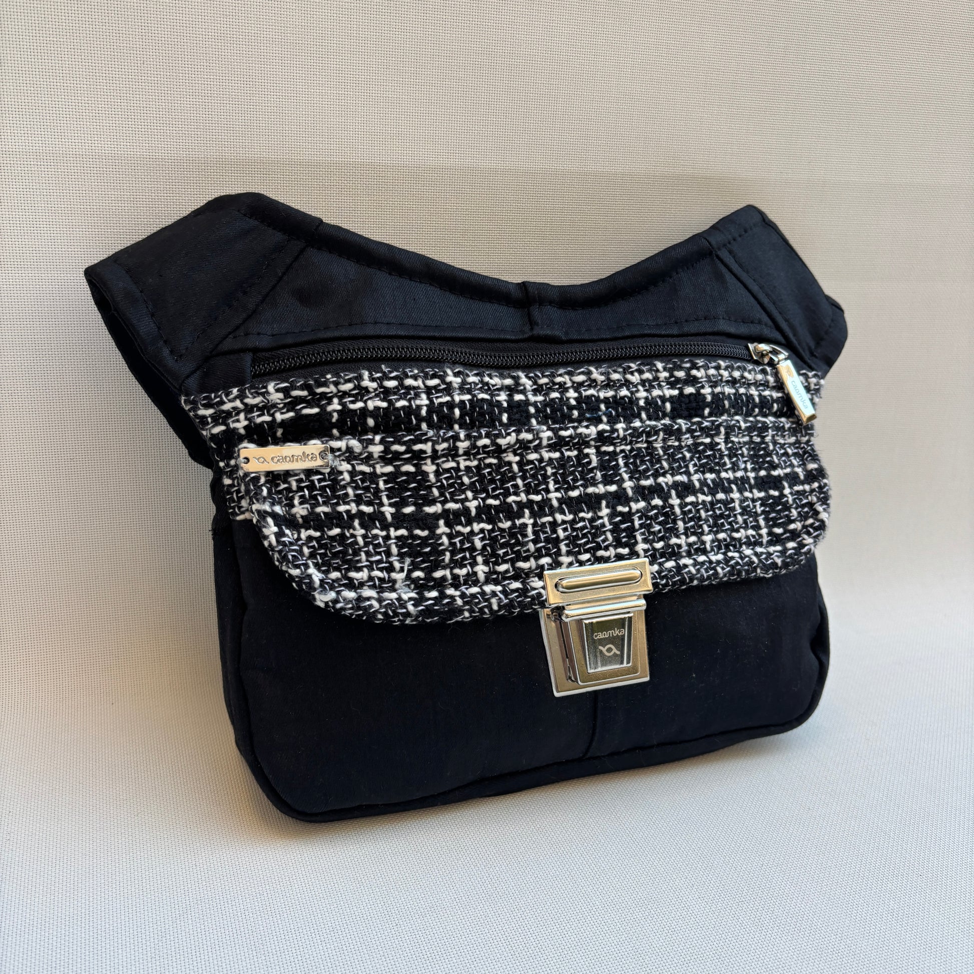 Originaler schwarzer Reißverschluss, passend zum speziellen Caomka-Griff in Silber .