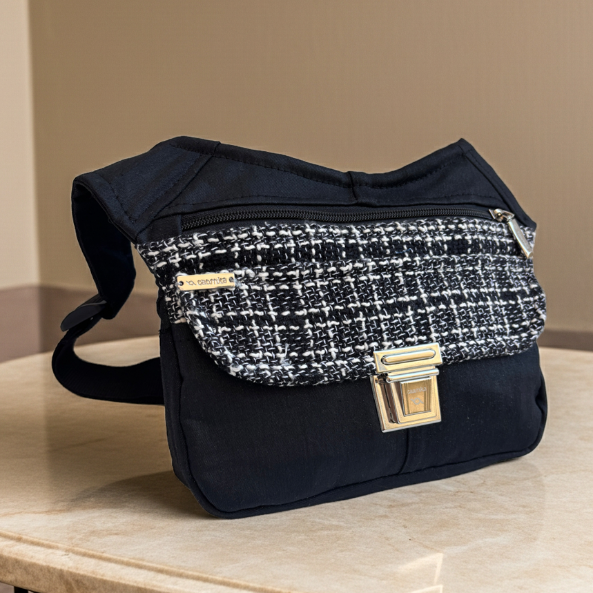 Multifunktions-Hüfttasche (Fan Bag - Bag - Shoulder Bag) aus widerstandsfähigem und recyceltem Denim-Stoff.