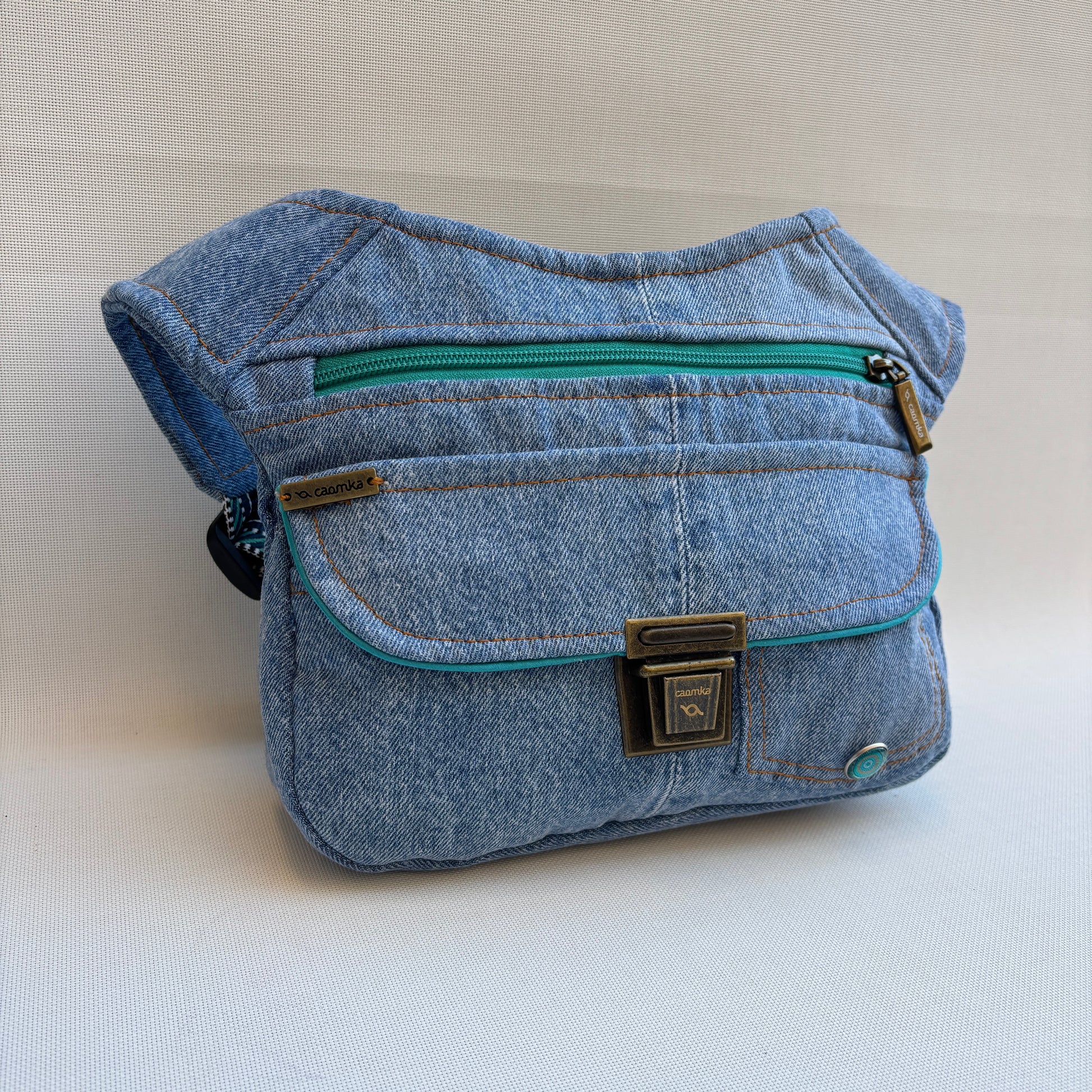 Multifunktions-Hüfttasche (Fan Bag - Bag - Shoulder Bag) aus widerstandsfähigem und recyceltem Denim-Stoff.