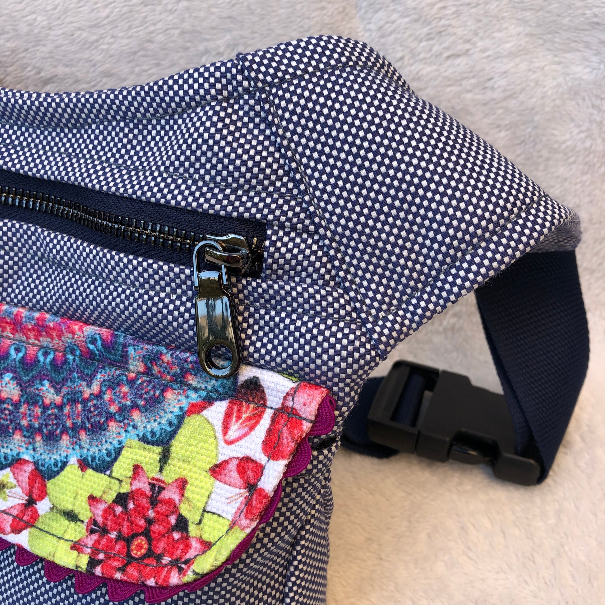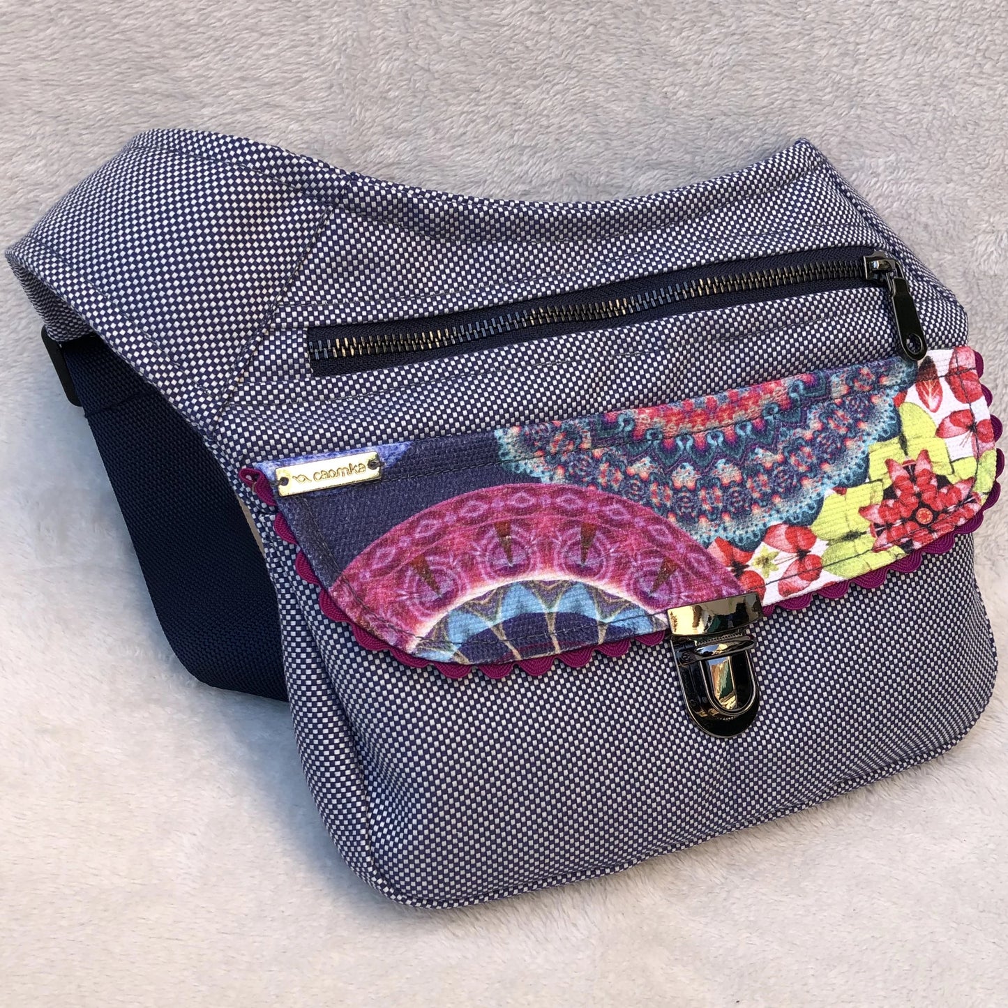 Multifunktions-Hüfttasche (Fan Bag - Bag - Shoulder Bag) aus speziellem Denim-Stoff.