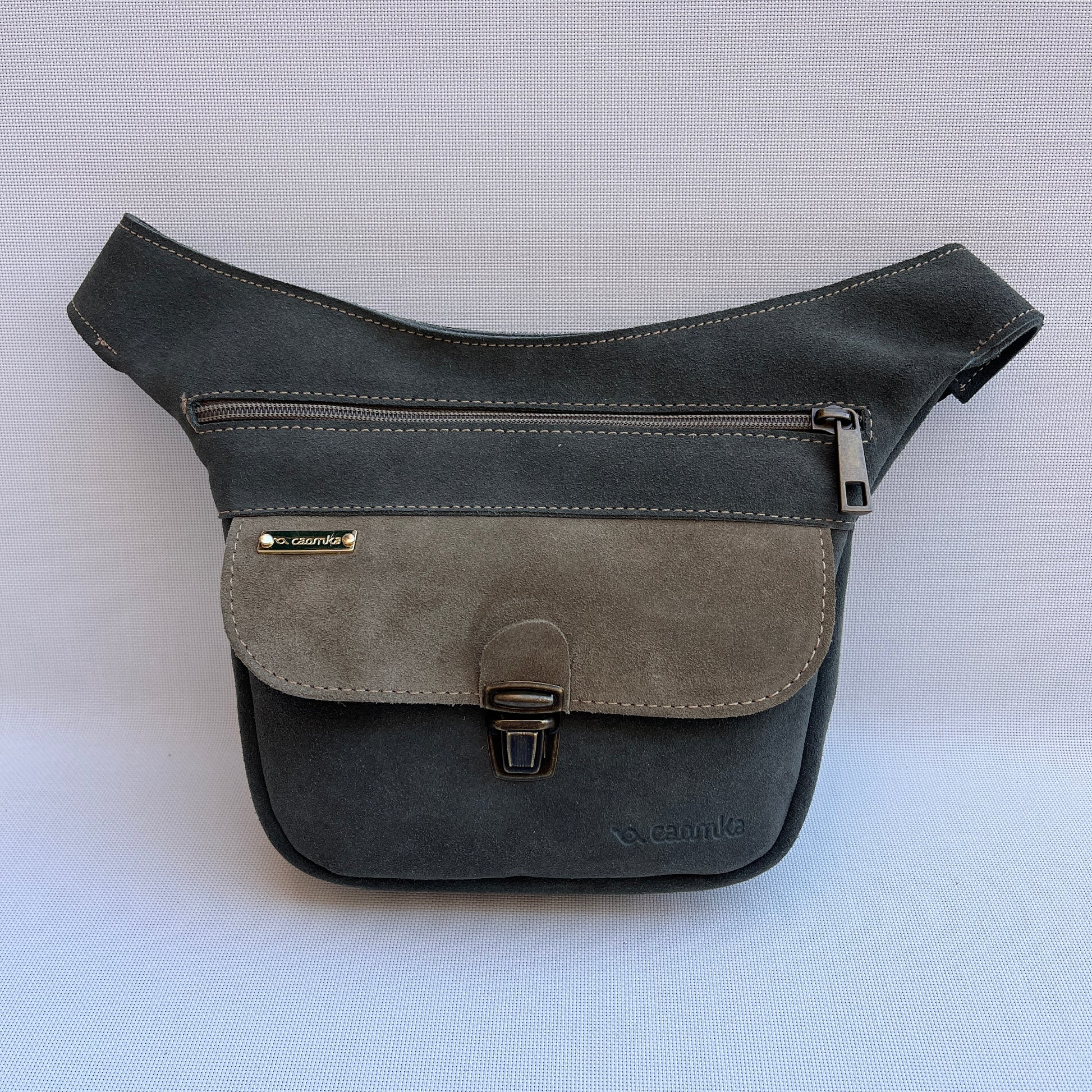 Bolso de Cadera multifunción (Riñonera - Bolso - Bandolera) confeccionado en piel de serraje en una original combinación de colores.