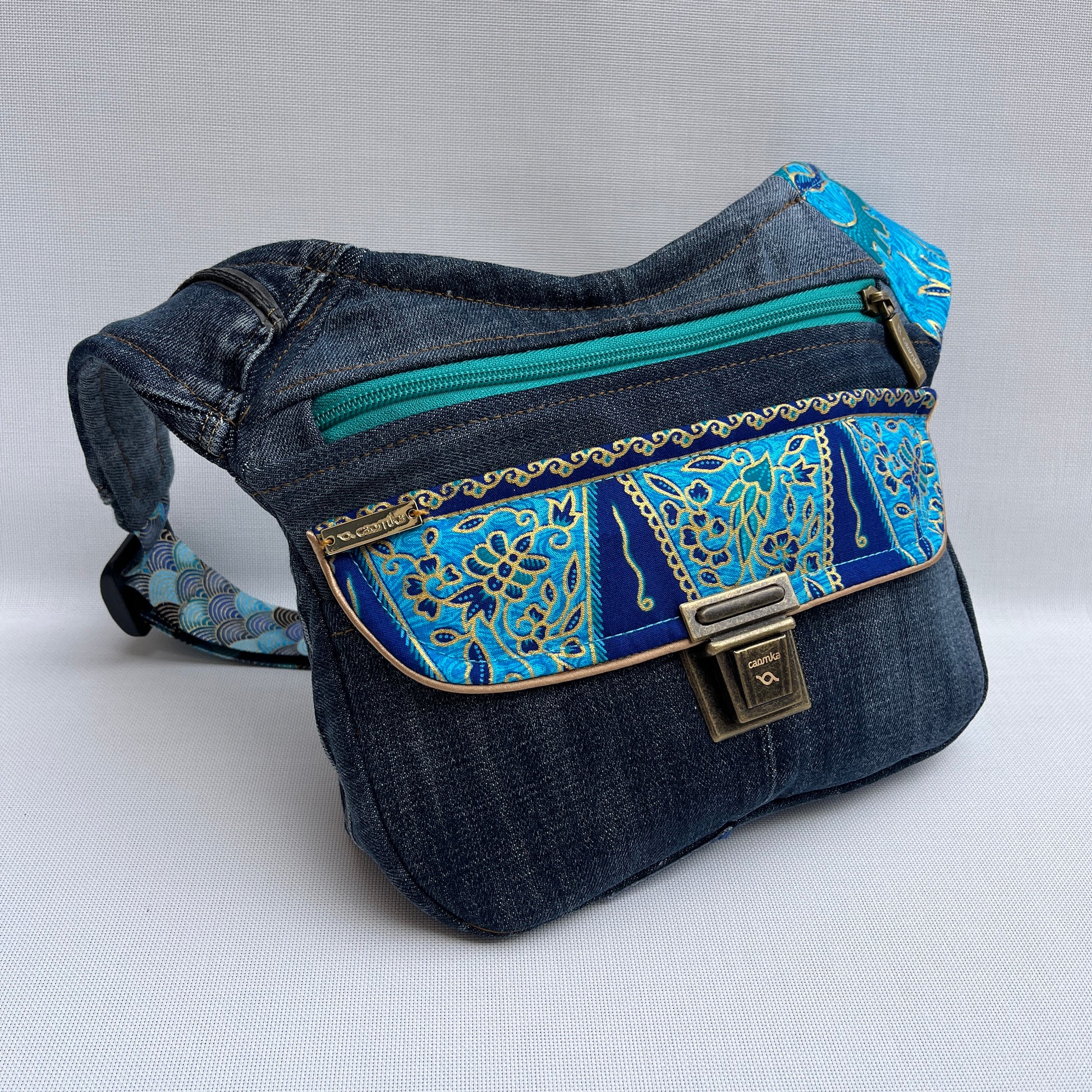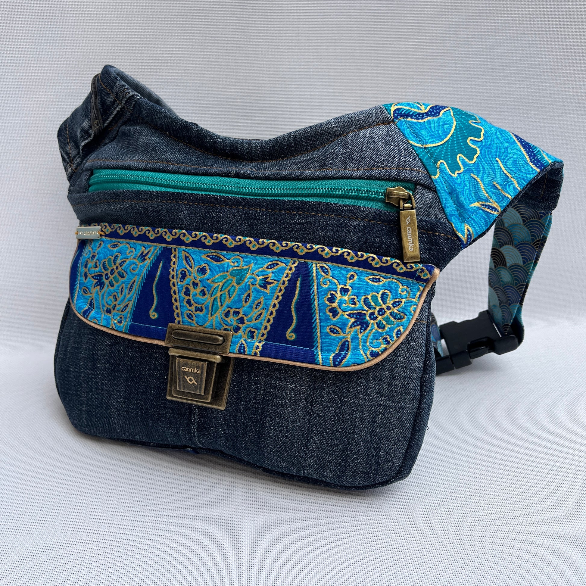 Bolso de Cadera multifunción (Riñonera - Bolso - Bandolera) en tela vaquera reciclada y resistente.