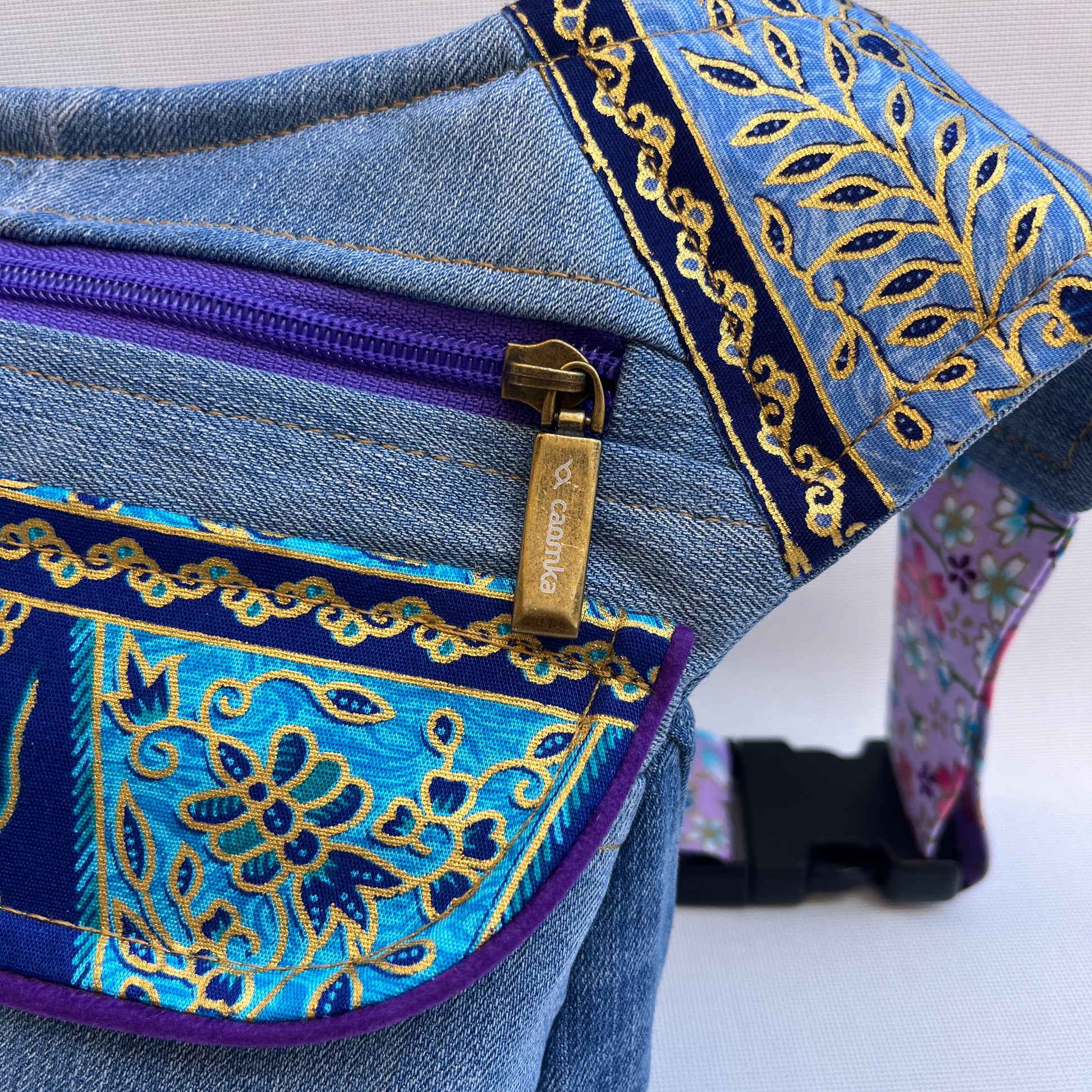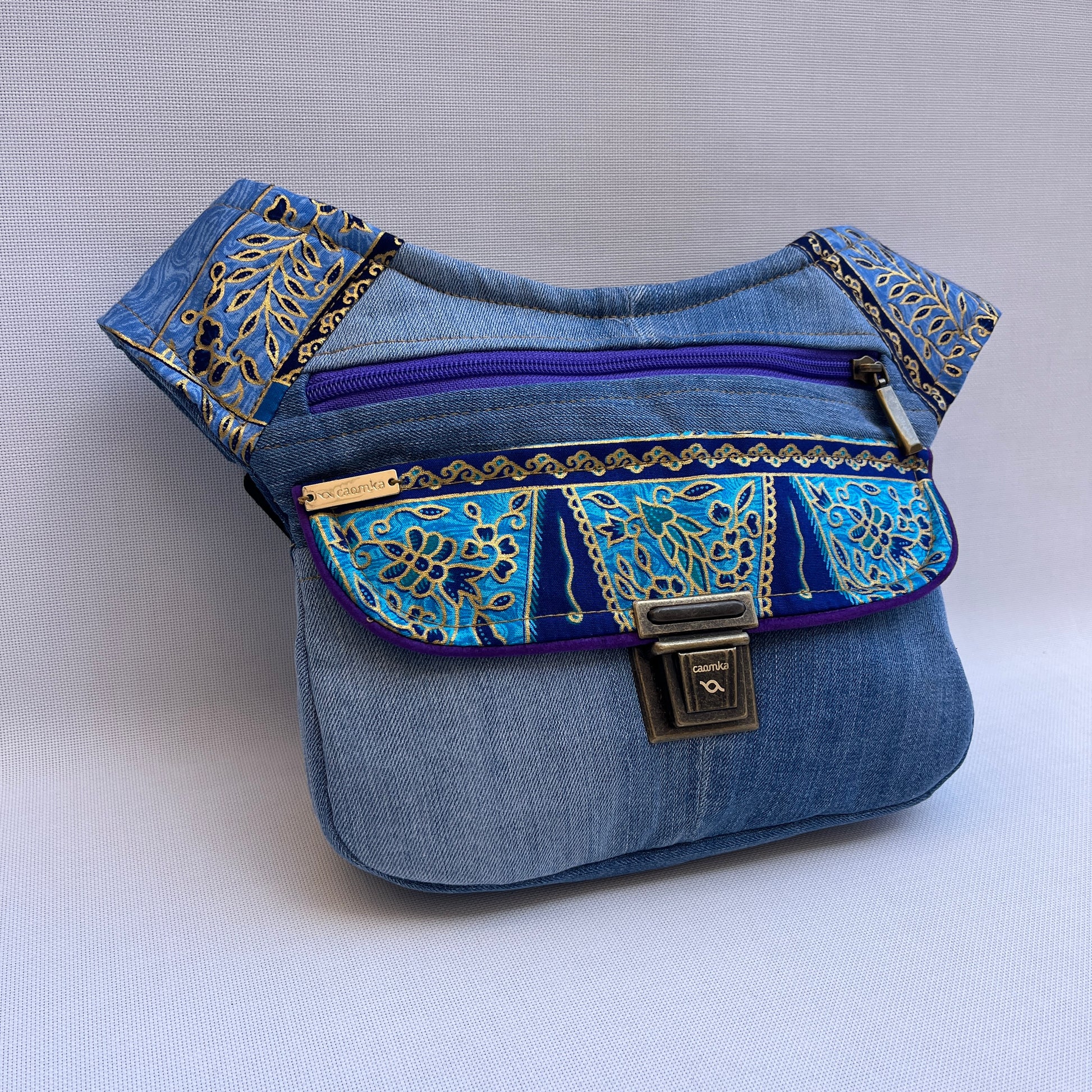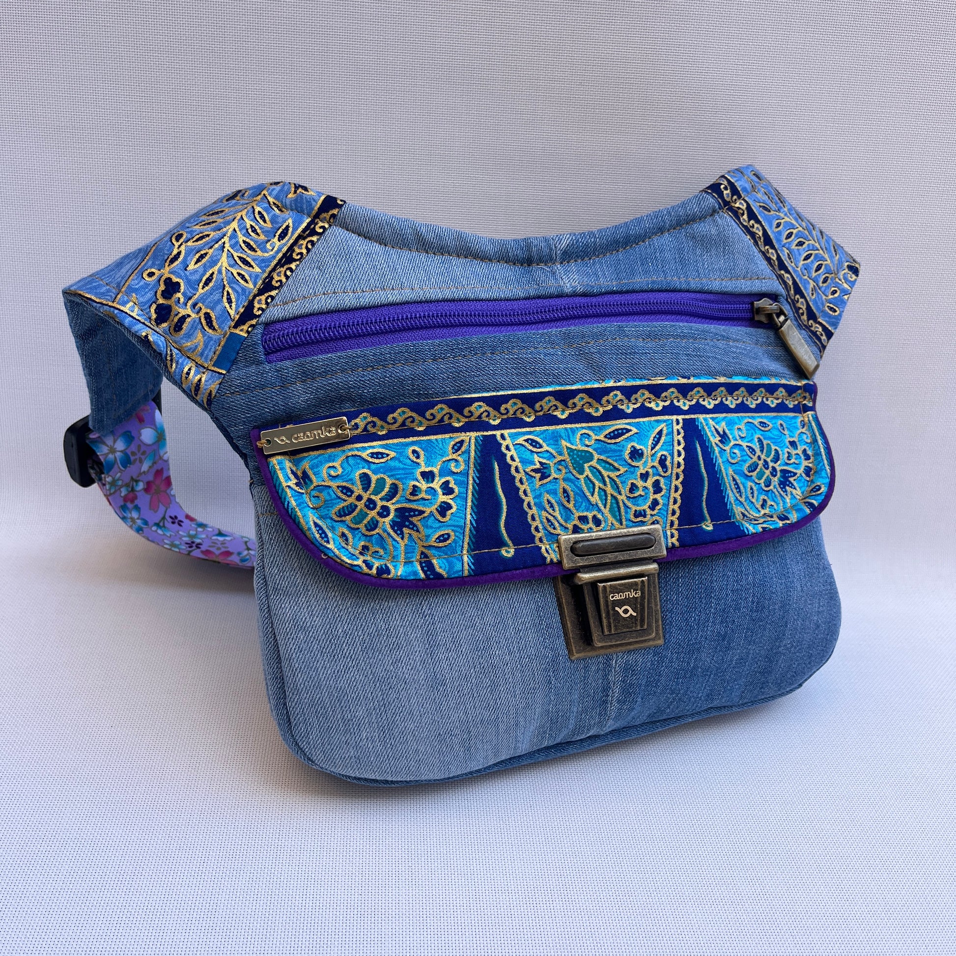 Bolso de Cadera multifunción (Riñonera - Bolso - Bandolera) en tela vaquera reciclada y resistente.