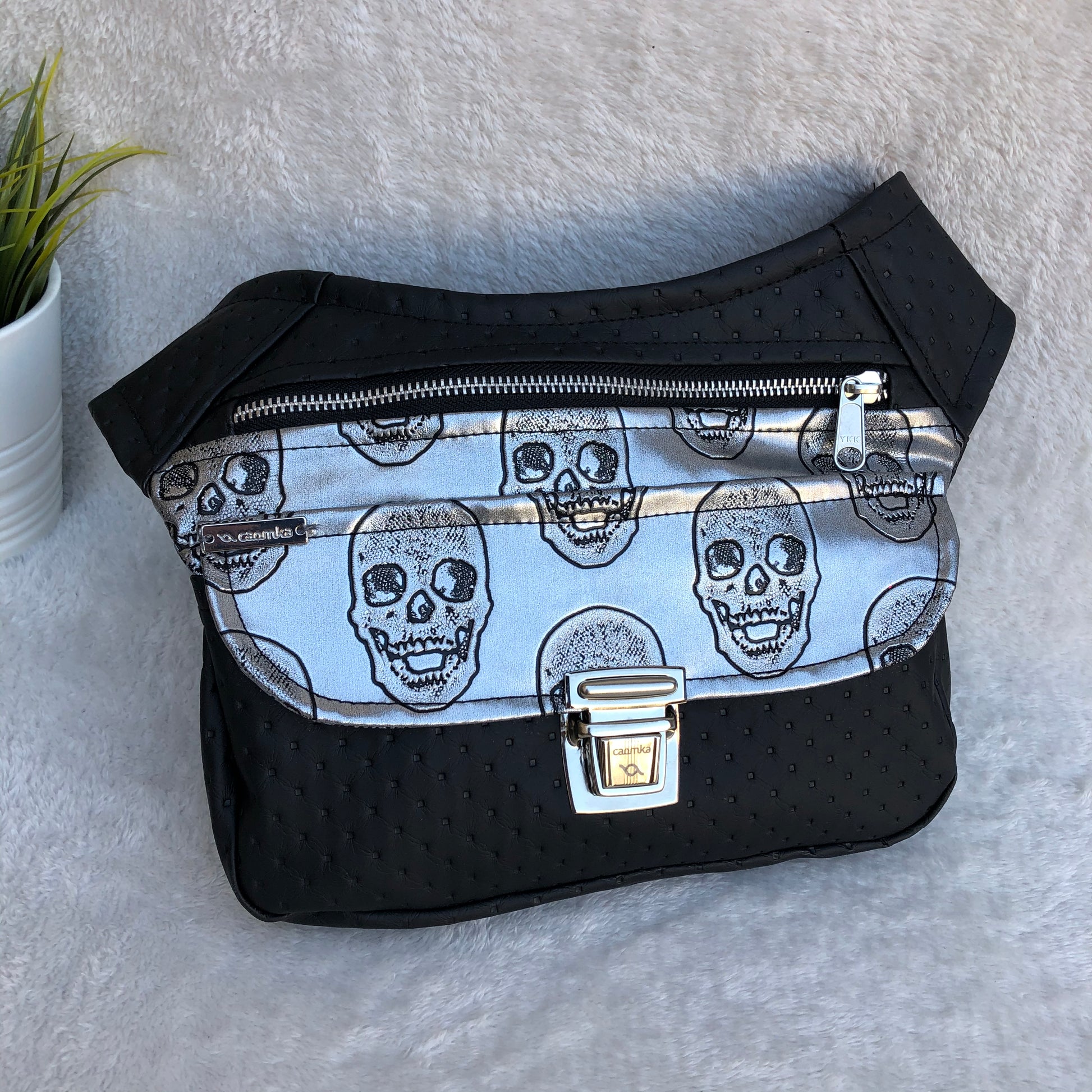 Designer belt bag: "Black & Silver Skulls Caomka"