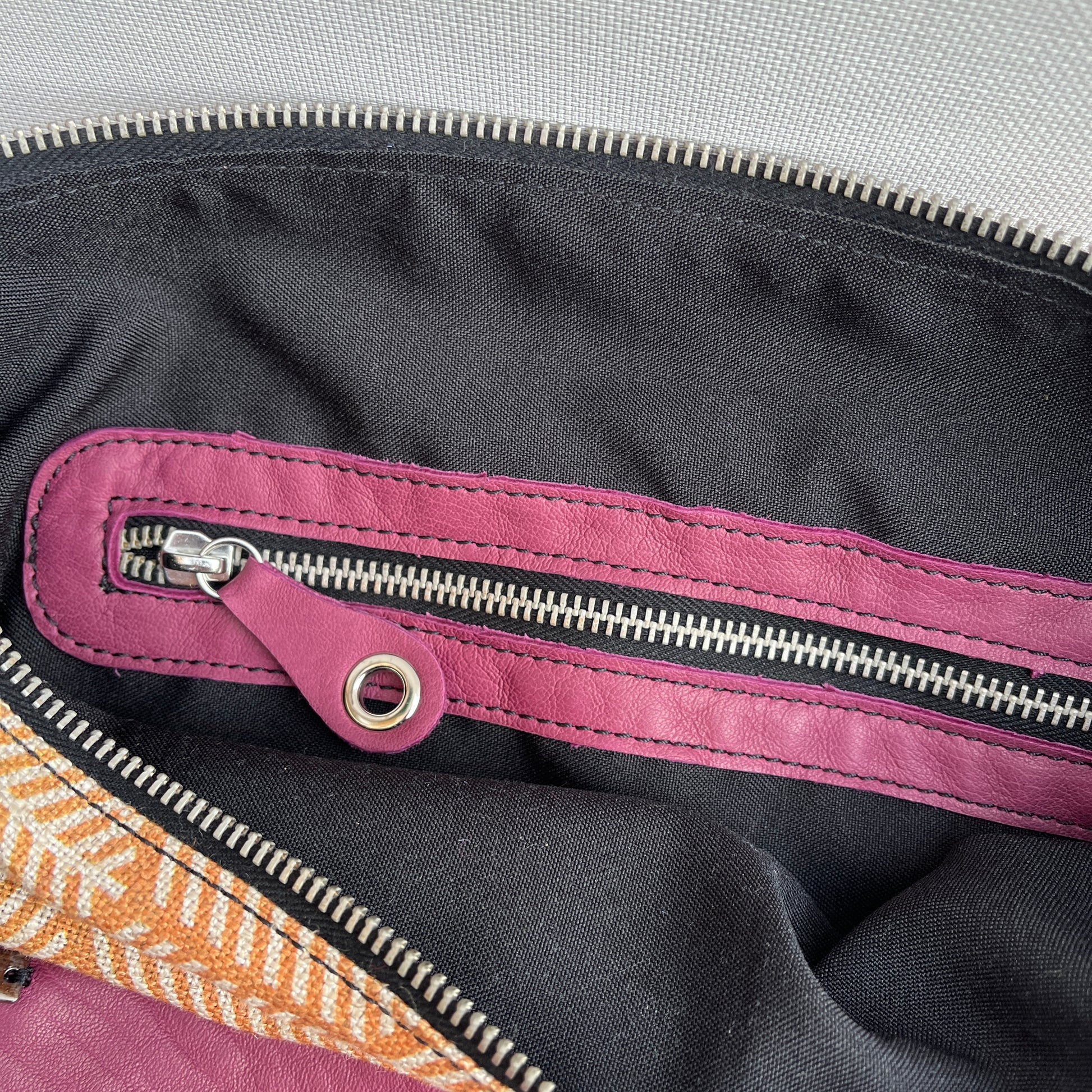 Large opening of the main pocket with a silver zip closure with a special leather handle.