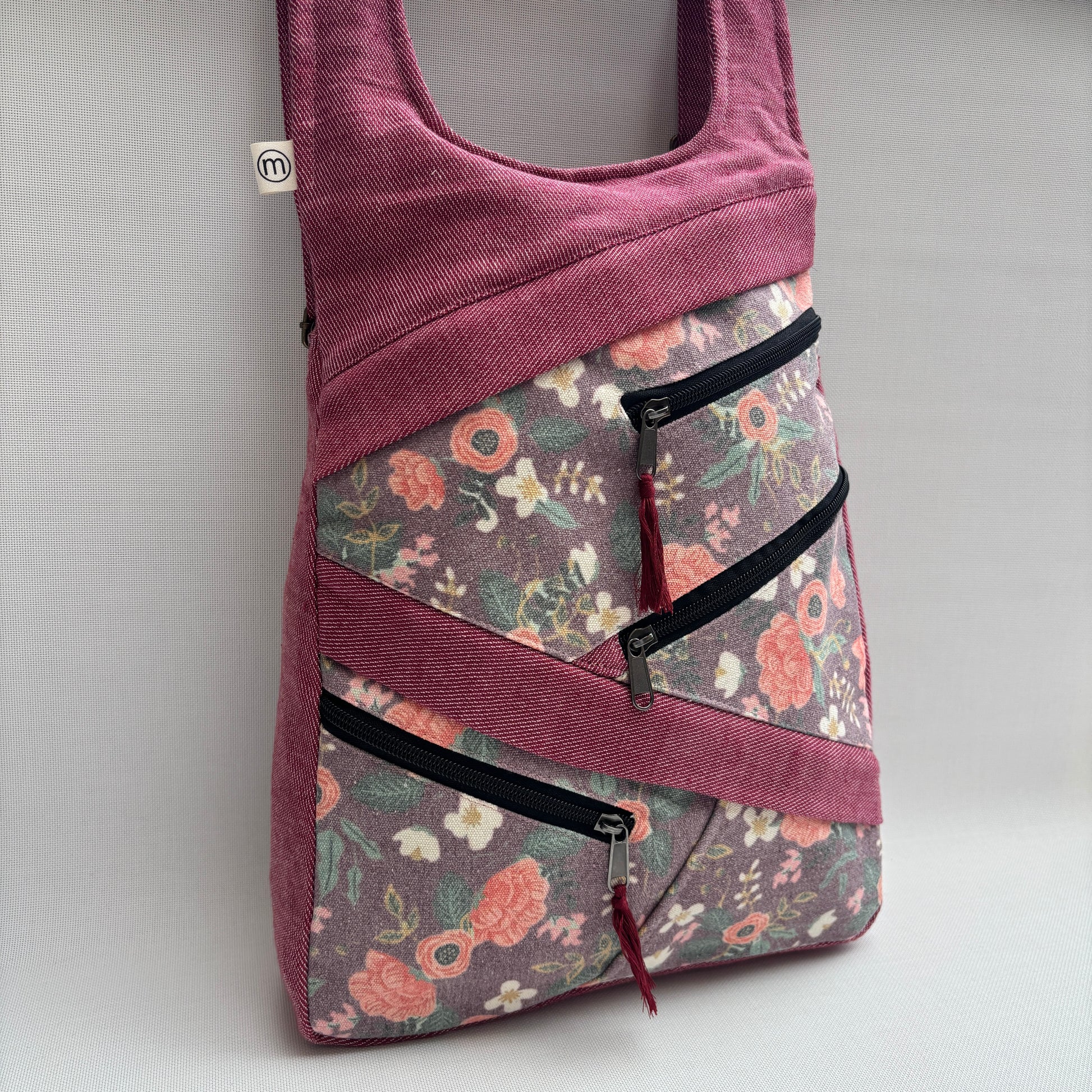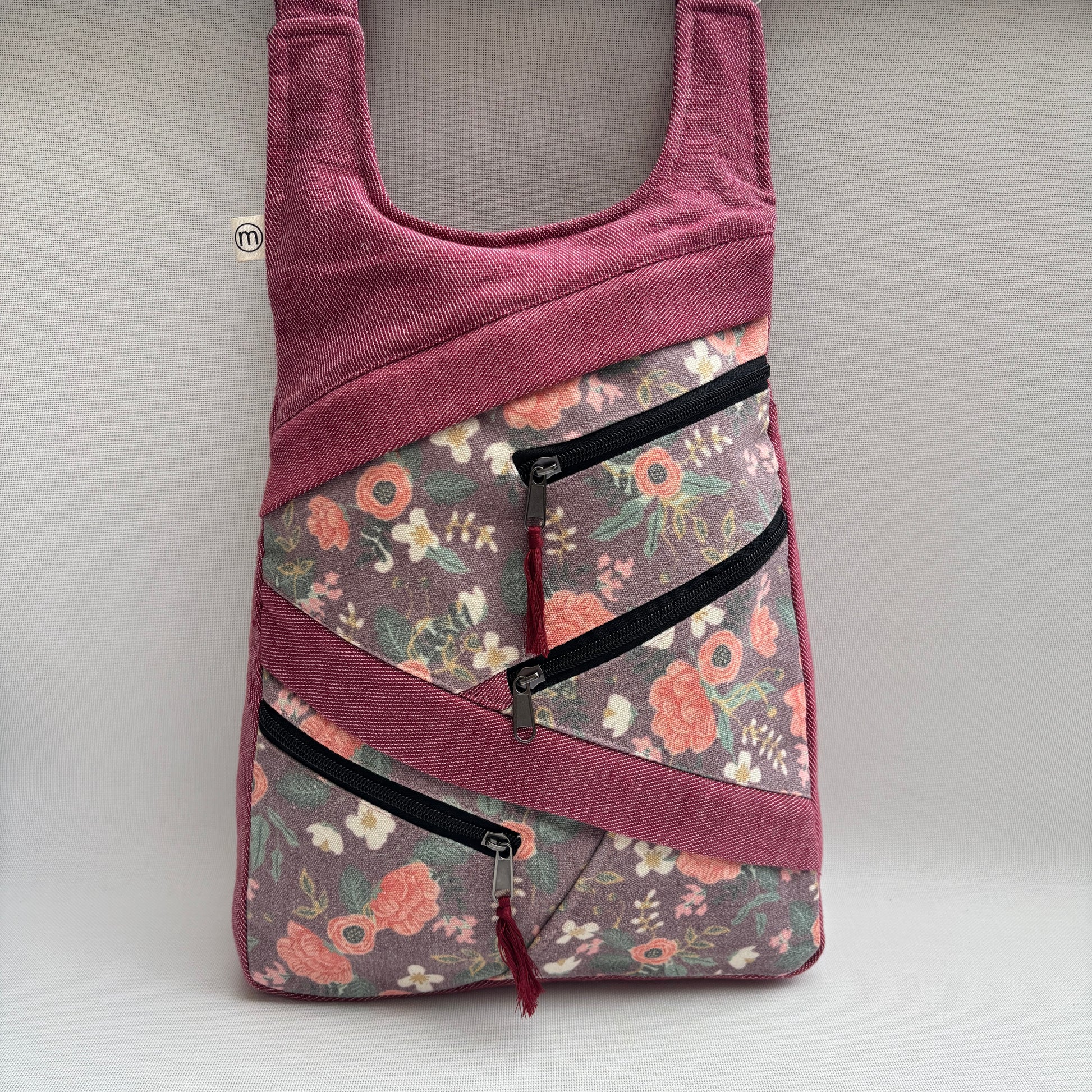 Mochila Multibolsillos "Sagarmatha" Jeans Rosado Rosas · Pieza 17409