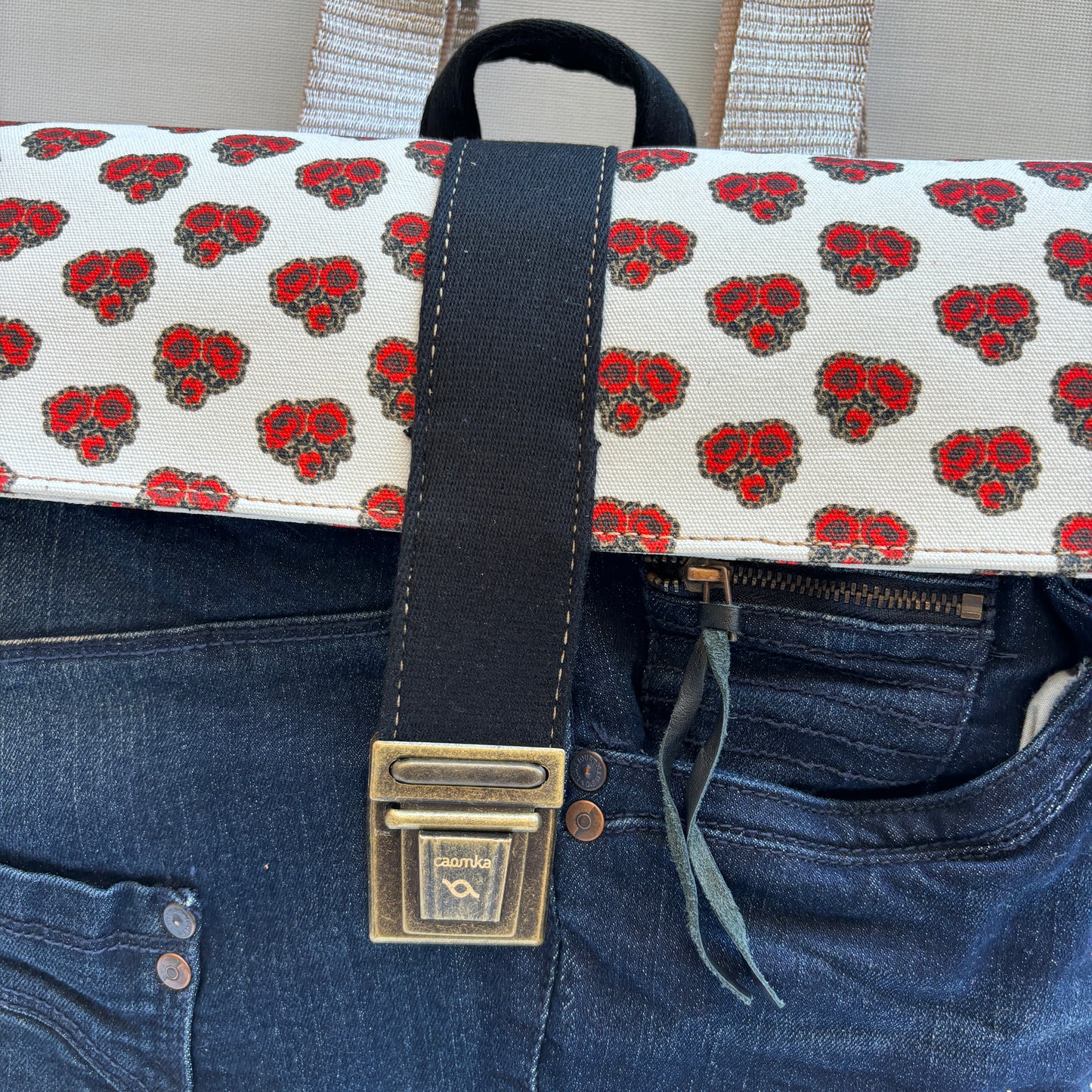 Mochila Caomka ultraligera confeccionada con tejido procedente de vaqueros reutilizados combinados con tejido especial Caomka.