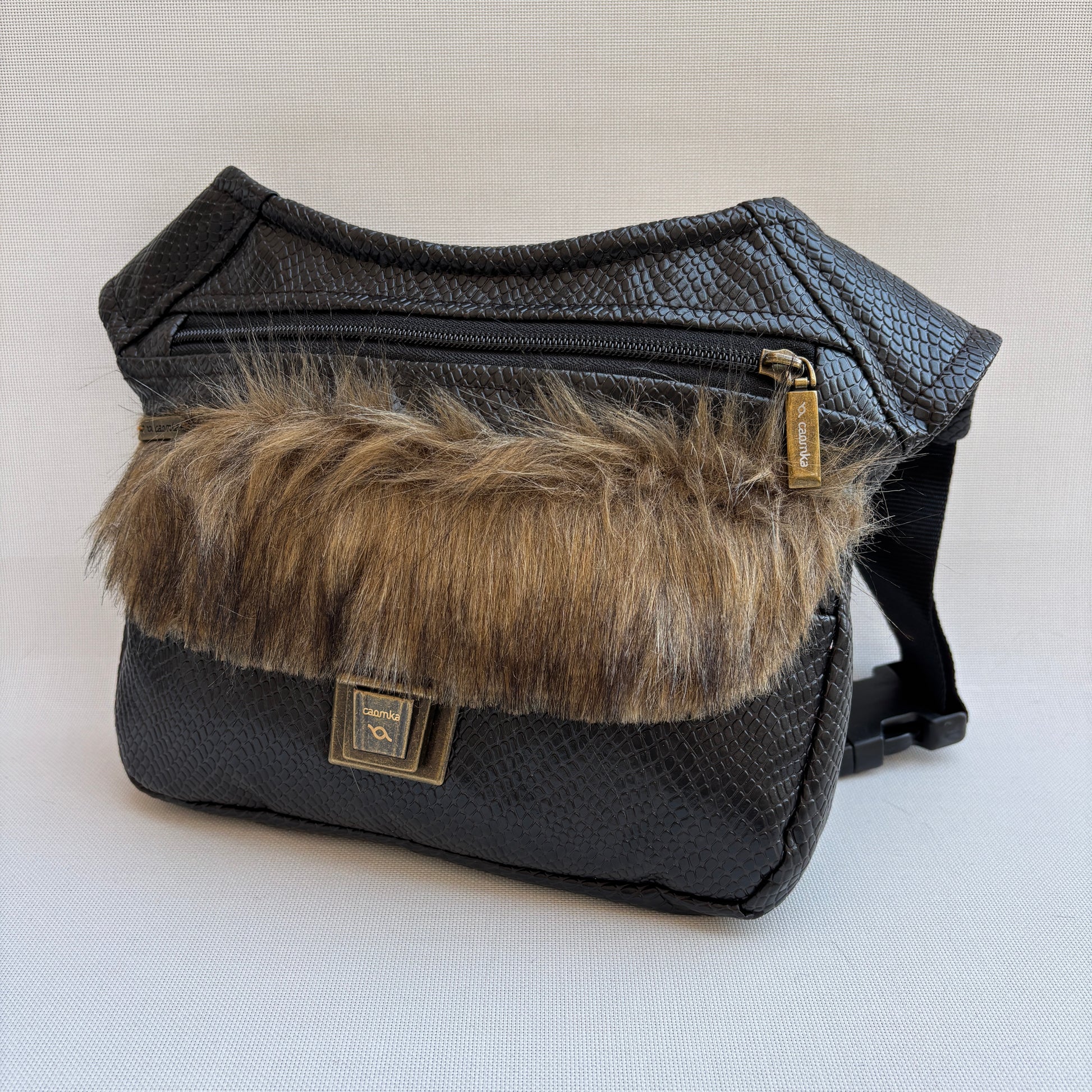 La Special Elegant Feline 18323 es una riñonera de carácter intenso y estética elegante que combina la sobriedad de la polipiel marrón oscuro con la presencia cálida del detalle frontal en pelo sintético