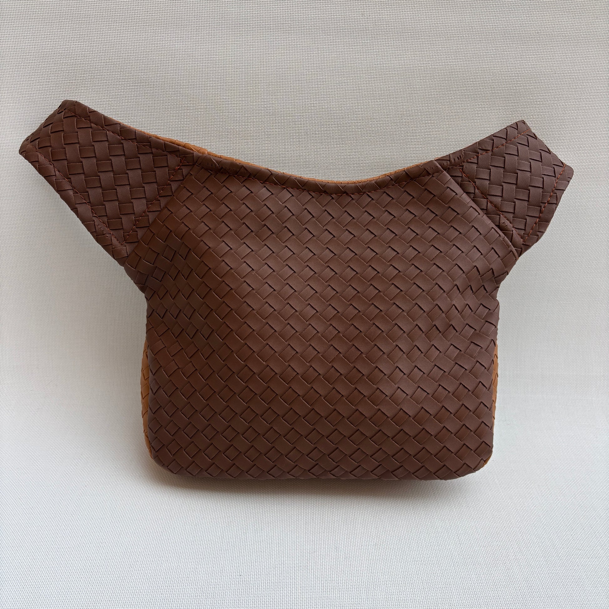 Cuerpo en polipiel trenzada marrón chocolate y terracota, resistente y con textura entrelazada.