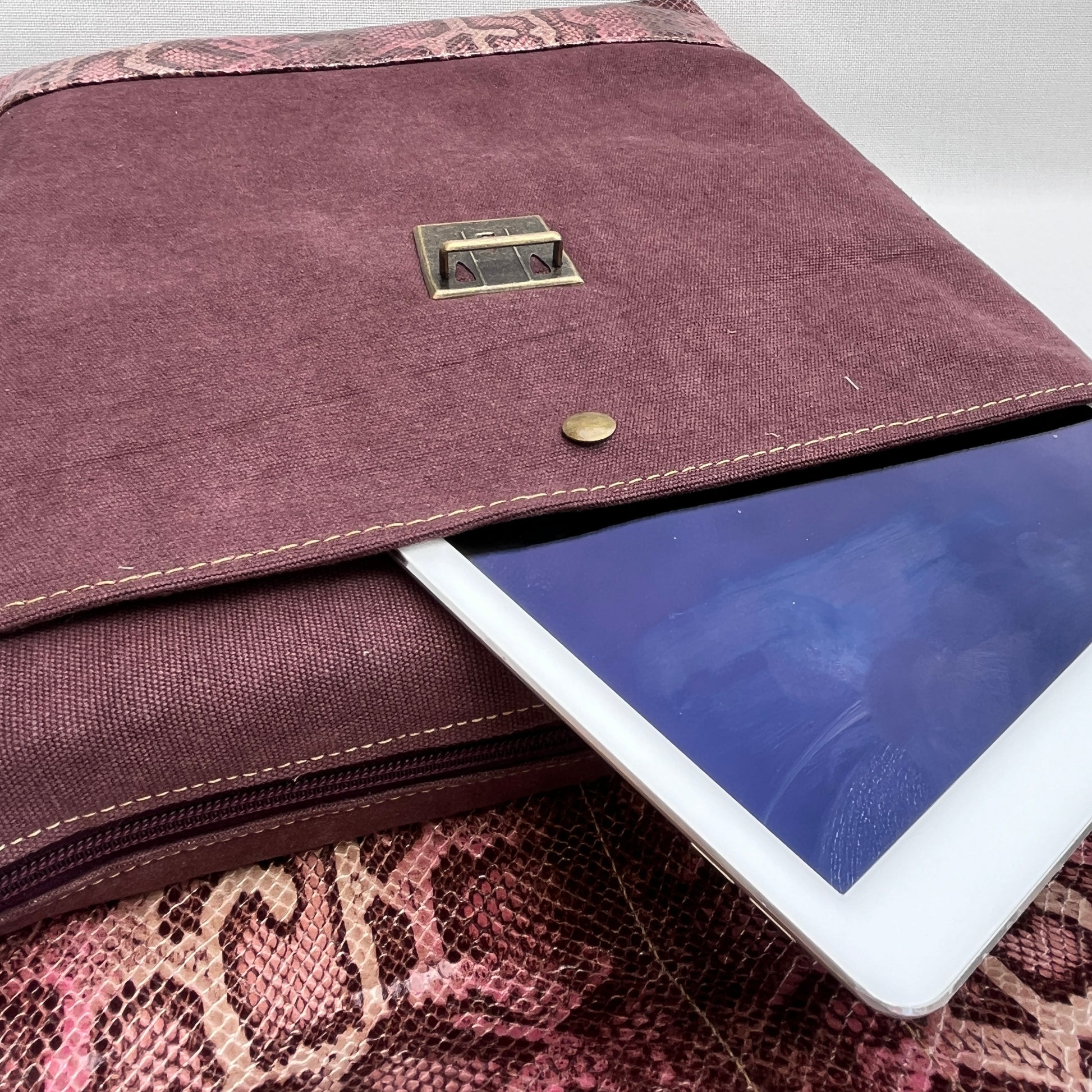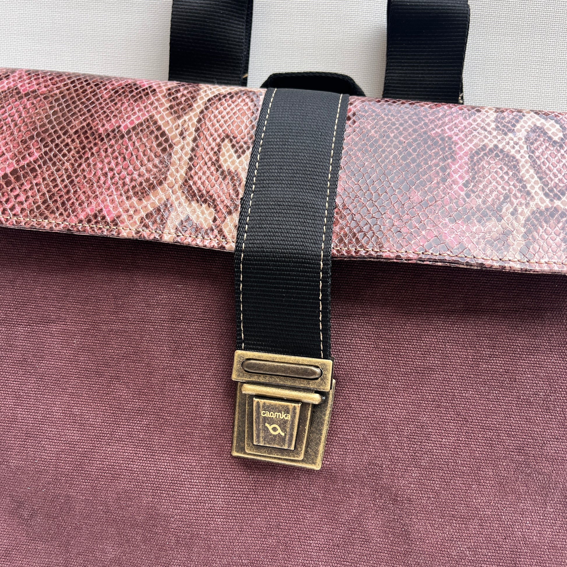 Mochila Caomka ultraligera confeccionada con tejido de cáñamo resistente combinado con tejido de polipiel.