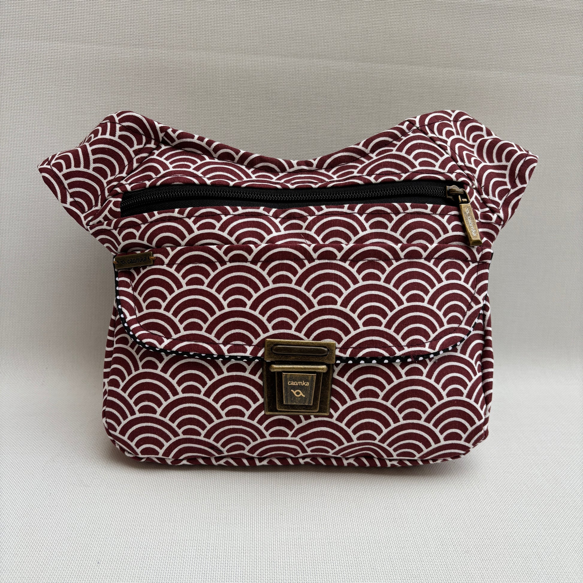Color: Rojo teja con estampado blanco de ondas japonesas y detalles en negro