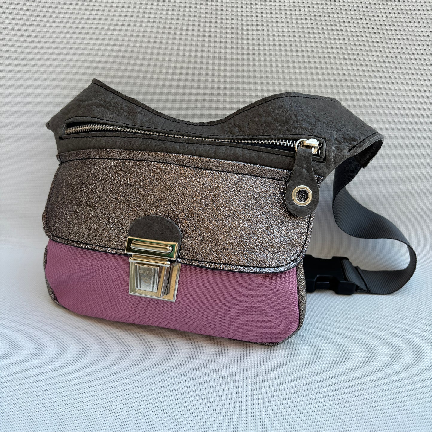 Bolso de Cadera multifunción (Riñonera - Bolso - Bandolera) confeccionado en piel y tejido.