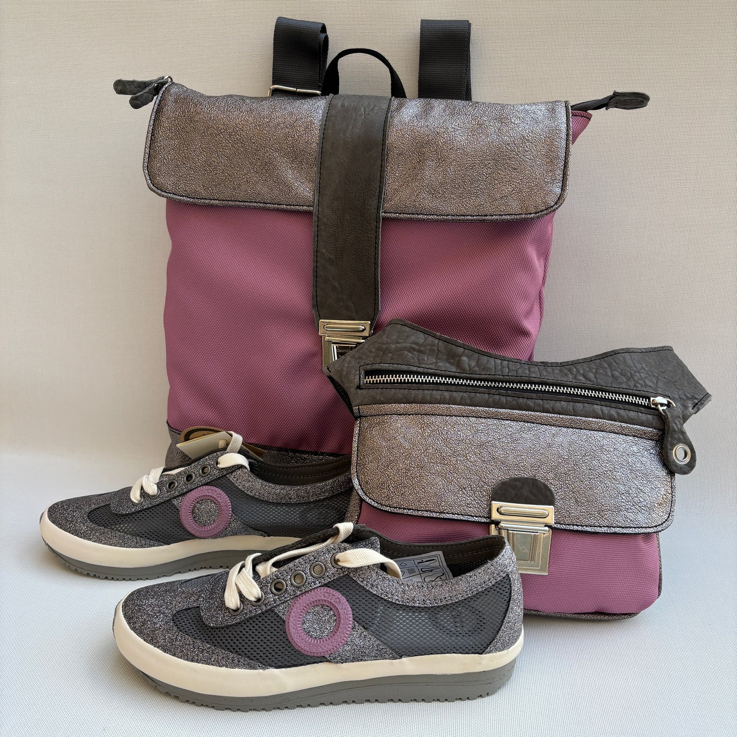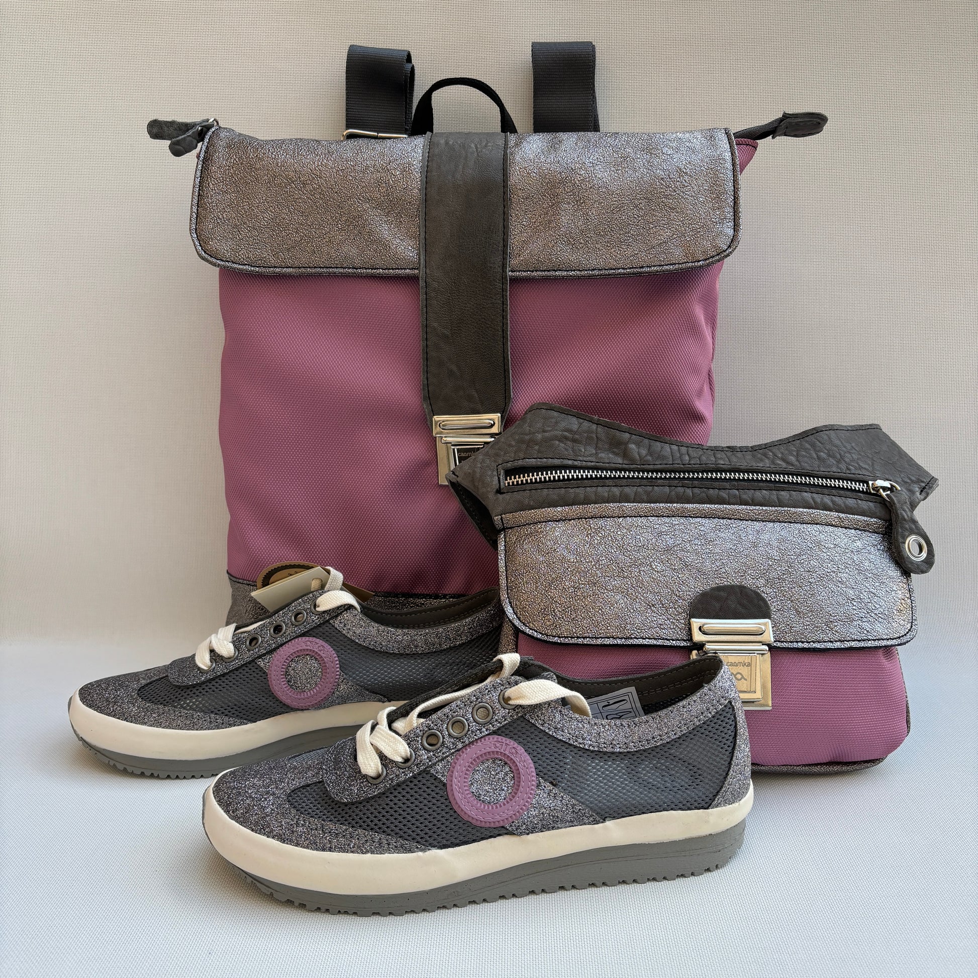 "Súper Pack Caomka" Mochila + Riñonera + Zapatillas ARO · Piezas únicas 15886 + 15887