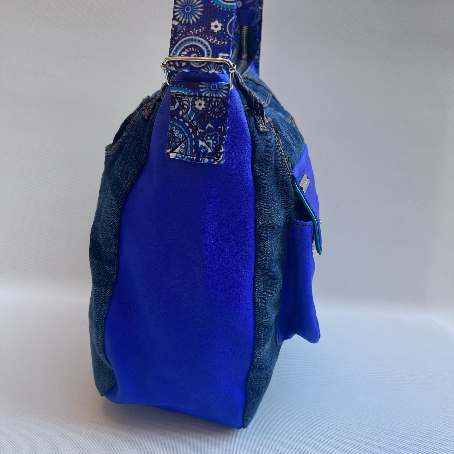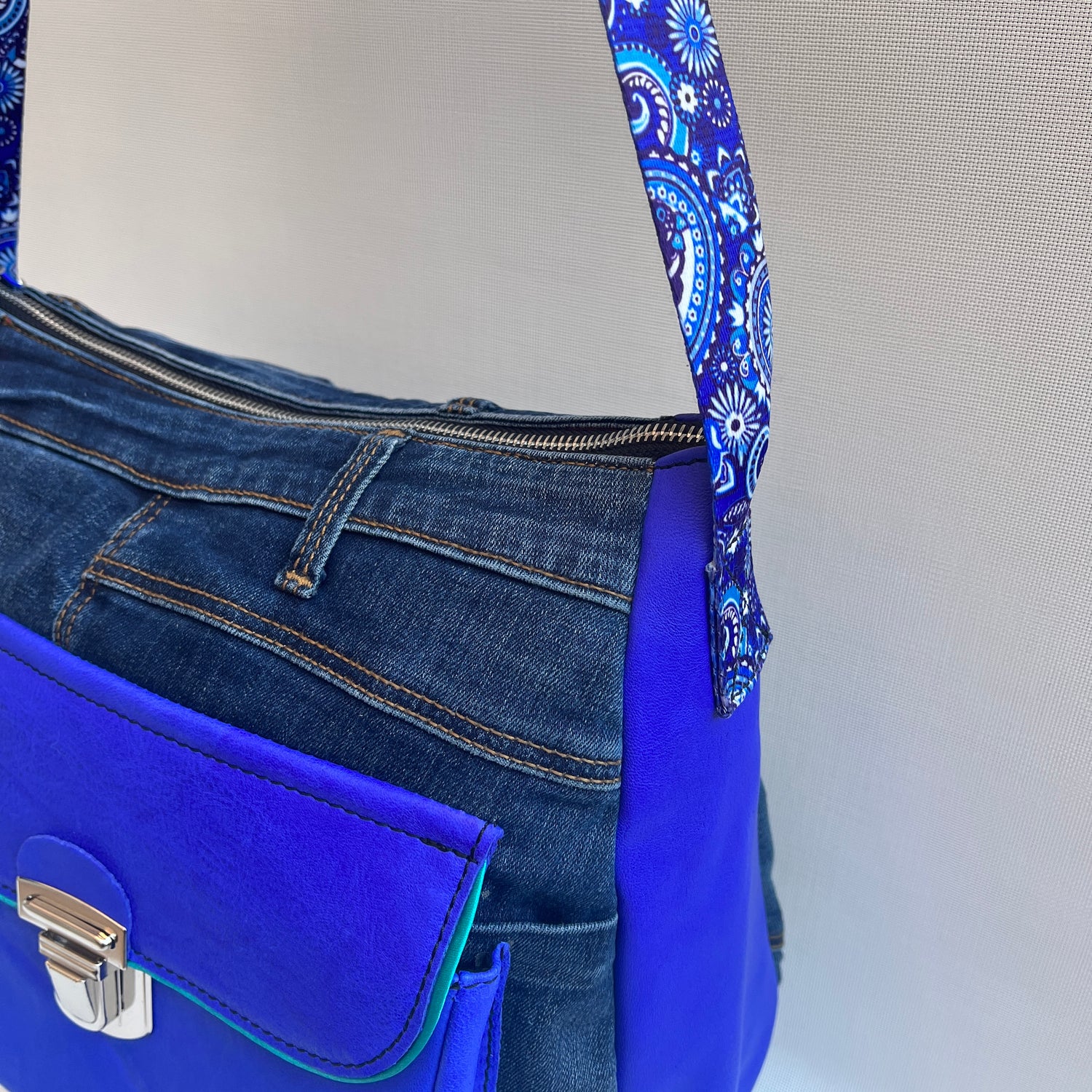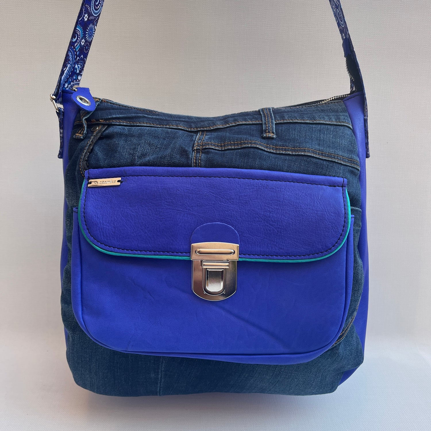Bolso Tote Caomka confeccionado en piel natural BioCuir® y tejido procedente de vaqueros reutilizados.