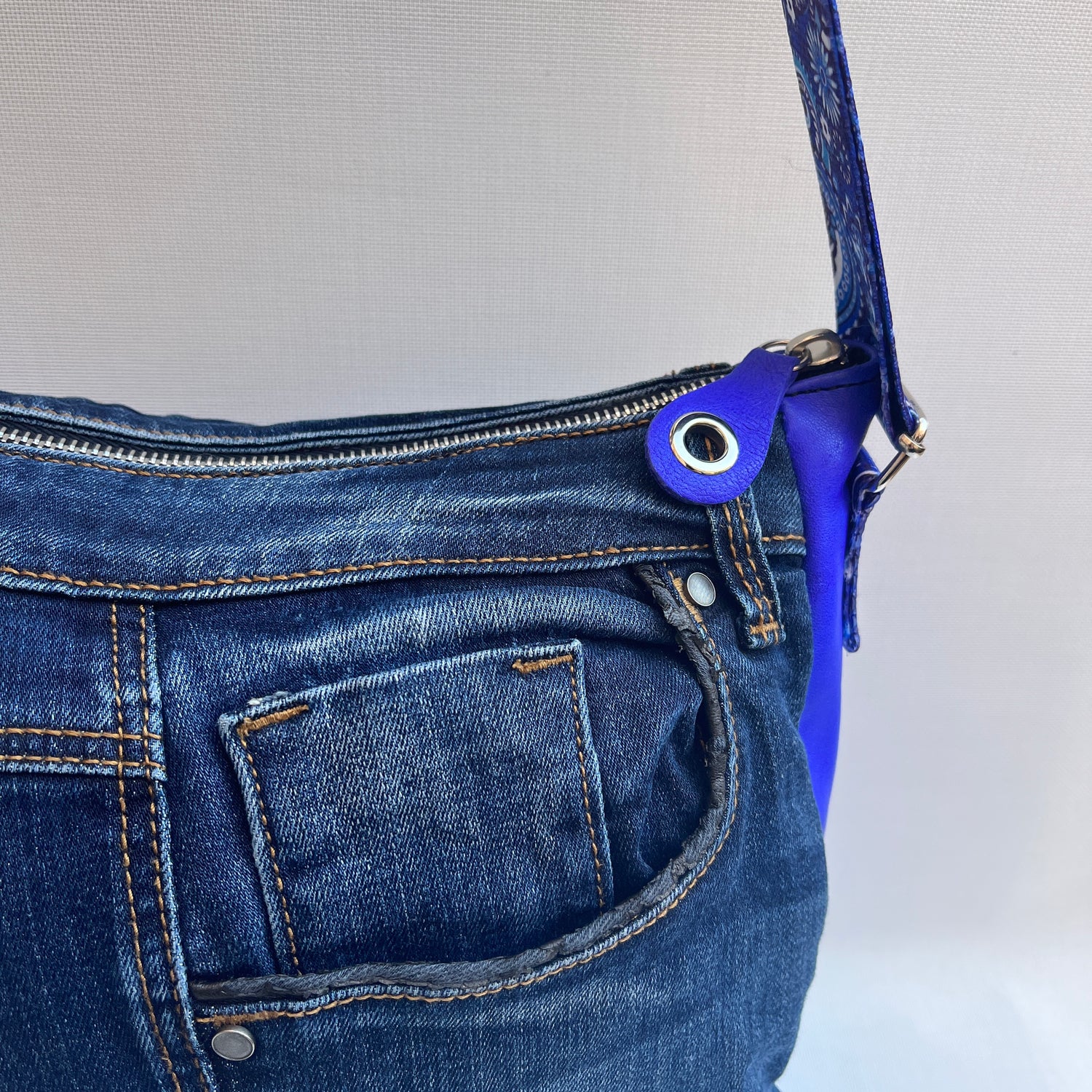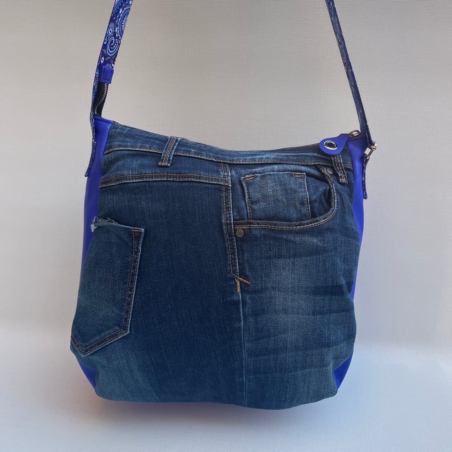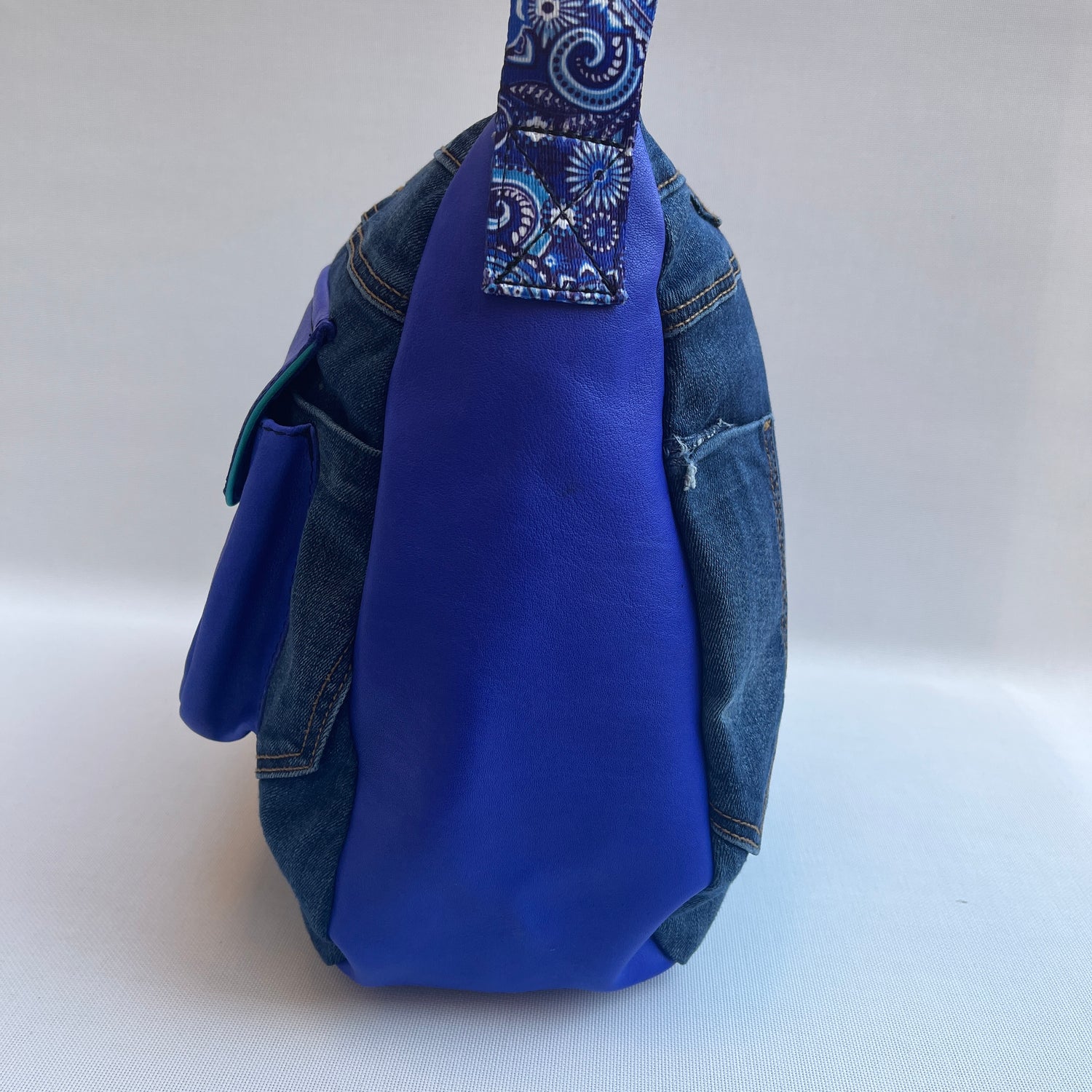 Bolso Tote Caomka confeccionado en piel natural BioCuir® y tejido procedente de vaqueros reutilizados.