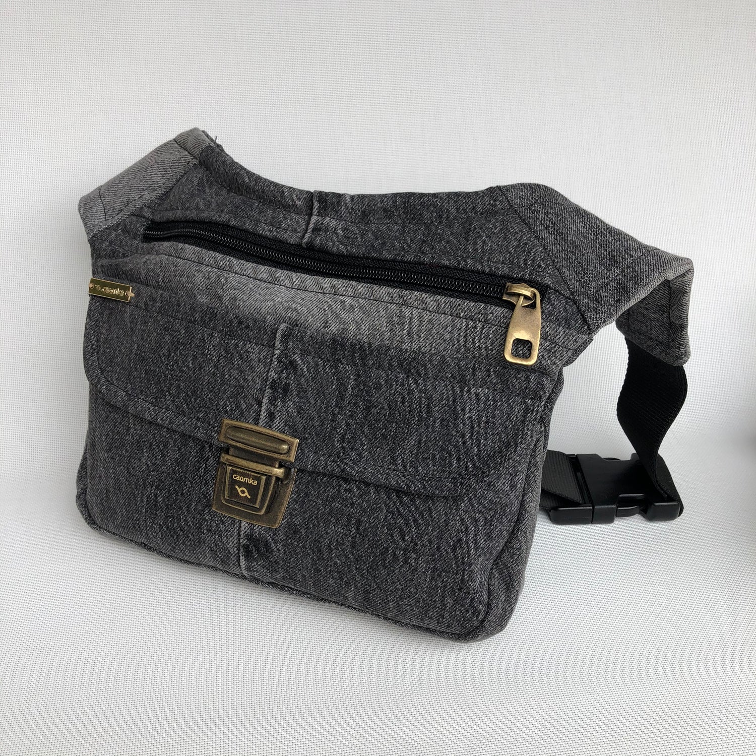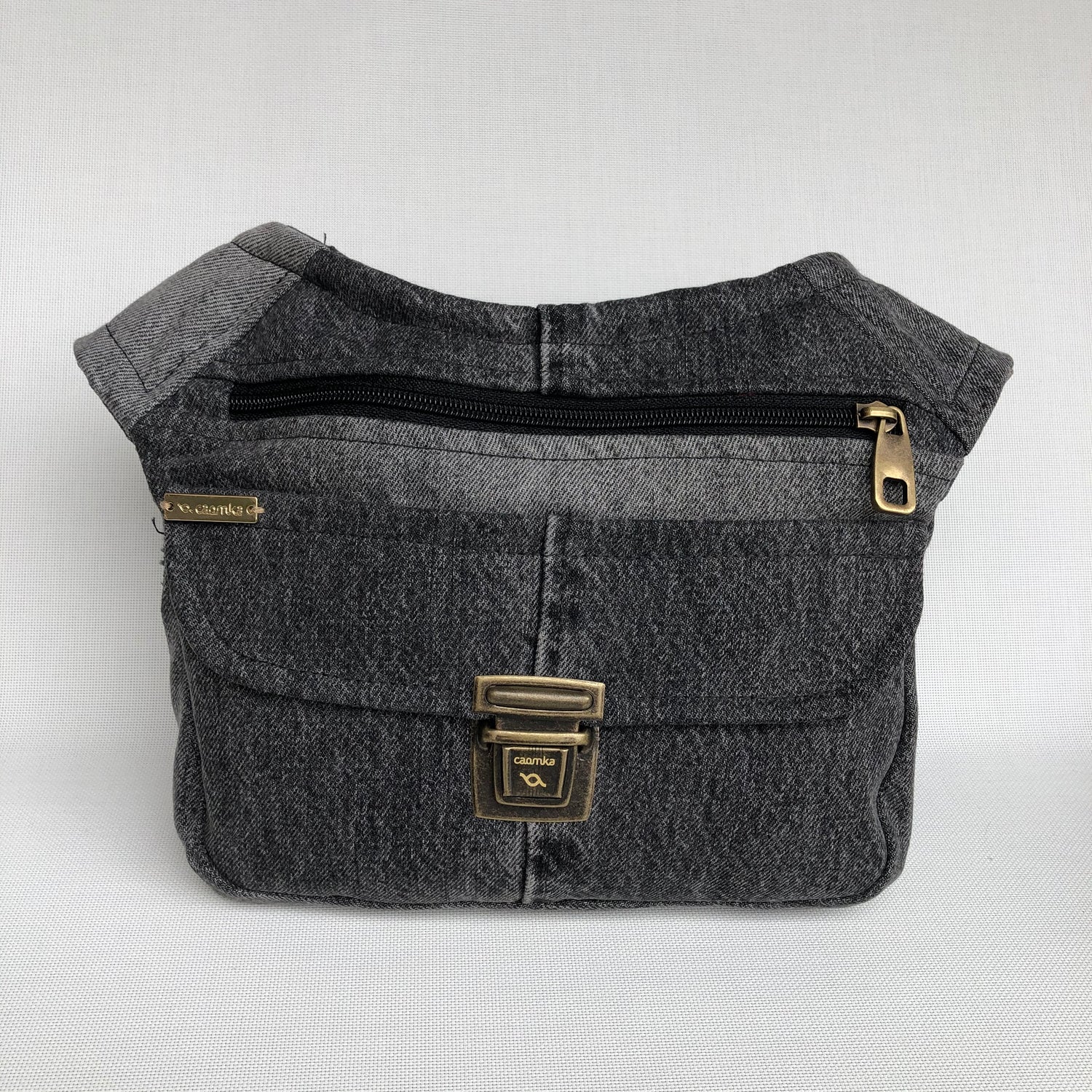 Bolso de Cadera multifunción (Riñonera - Bolso - Bandolera) en tela vaquera reciclada y resistente.