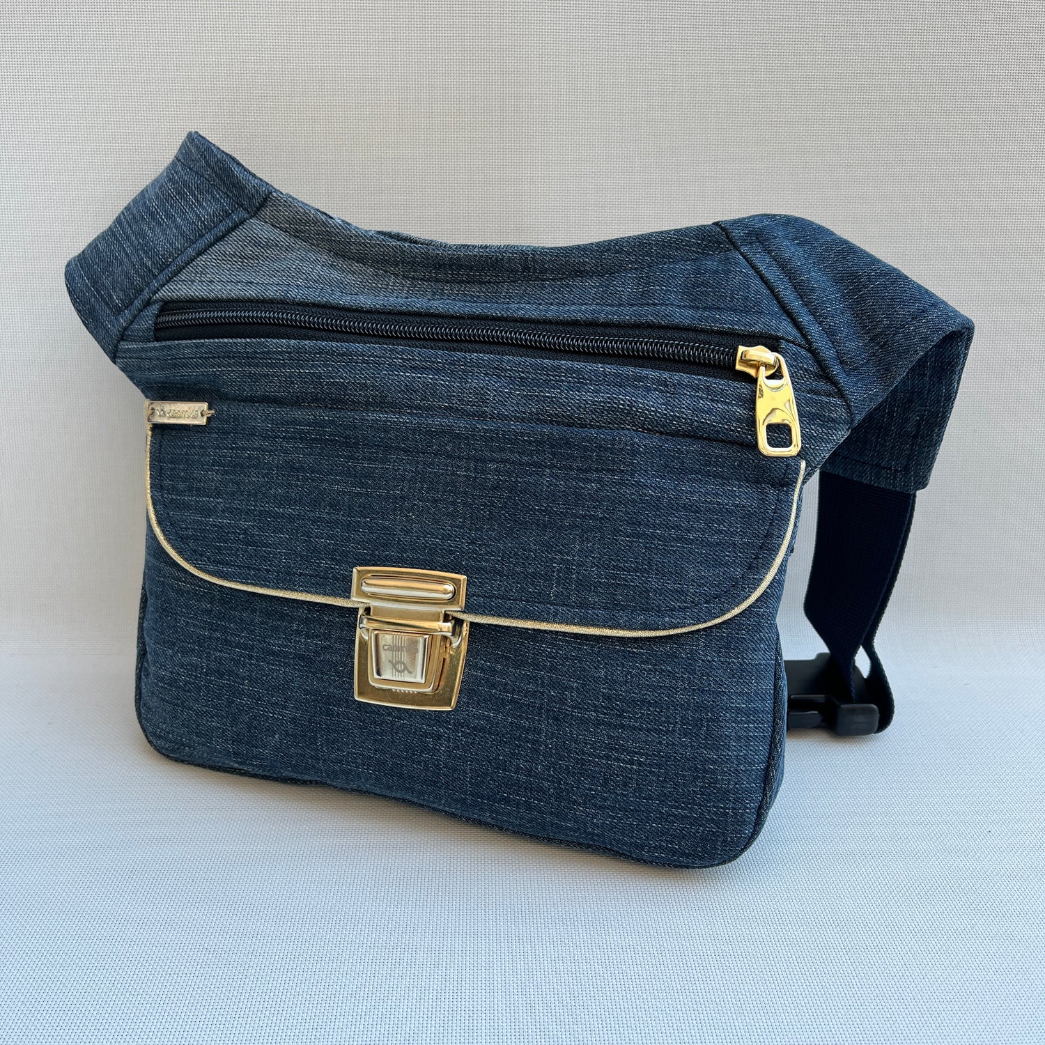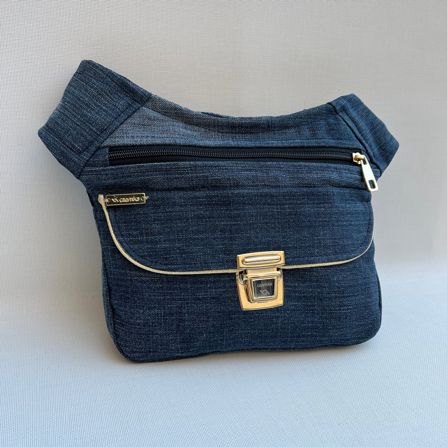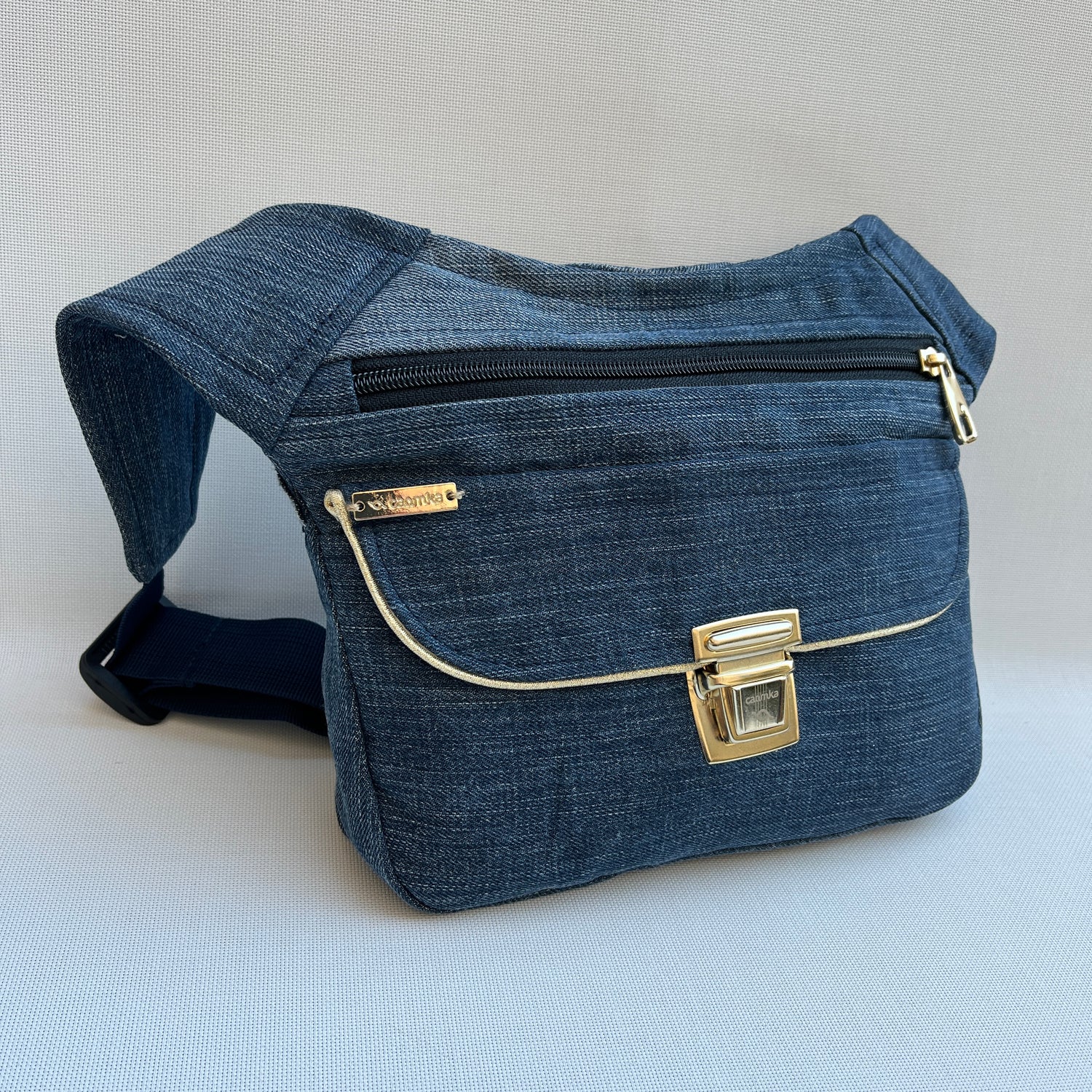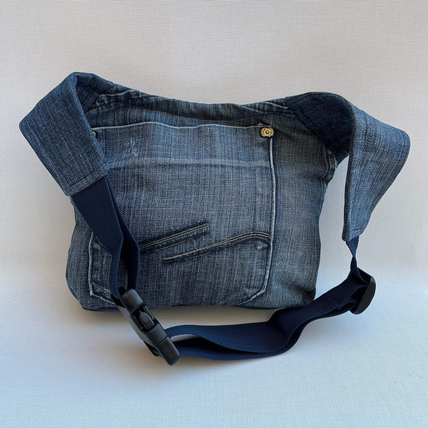 Bolso de Cadera multifunción (Riñonera - Bolso - Bandolera) en tela vaquera reciclada y resistente.