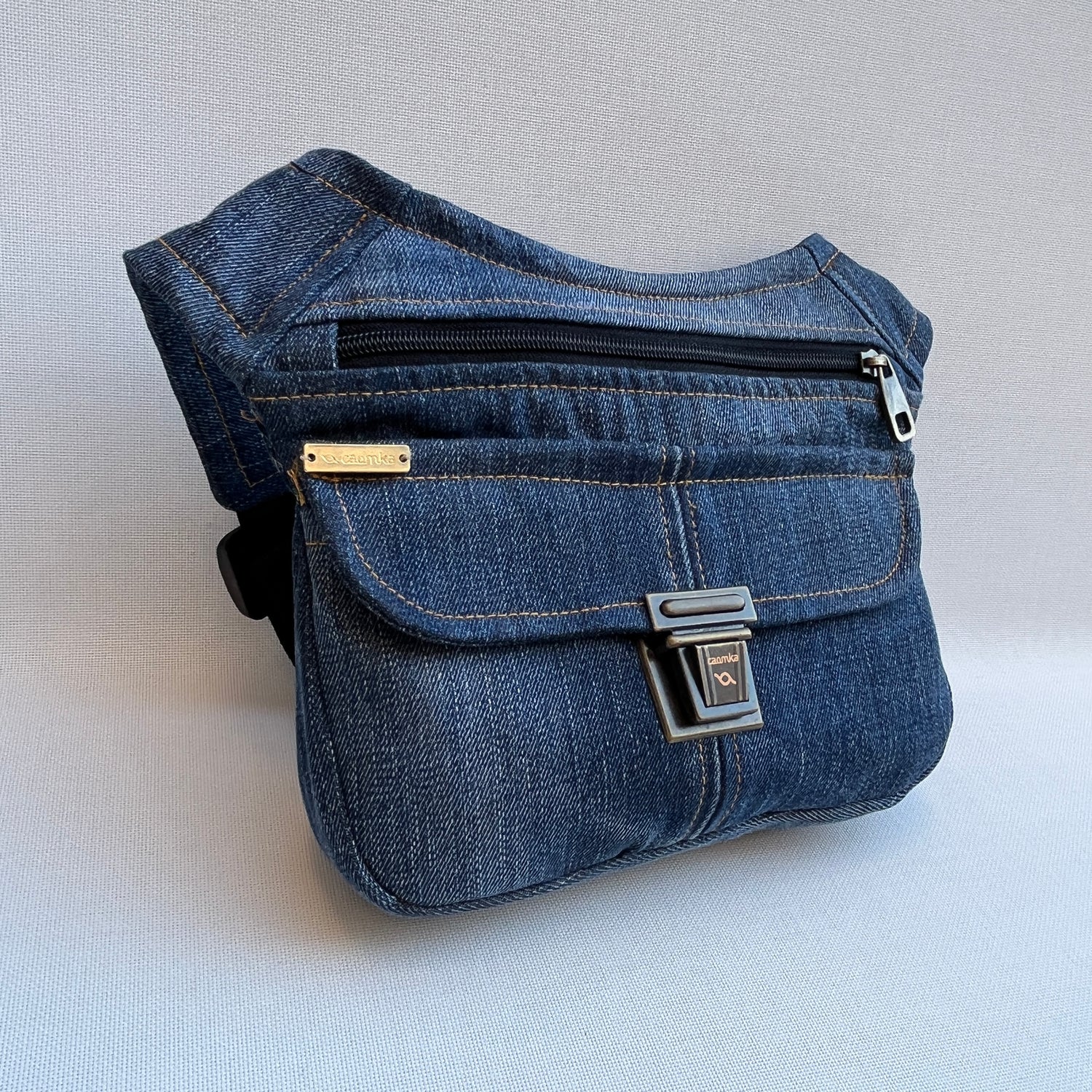 Bolso de Cadera multifunción (Riñonera - Bolso - Bandolera) en tela vaquera reciclada y resistente.