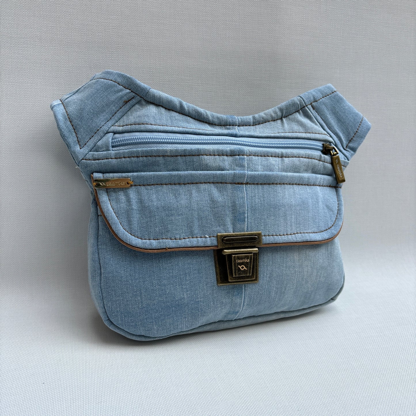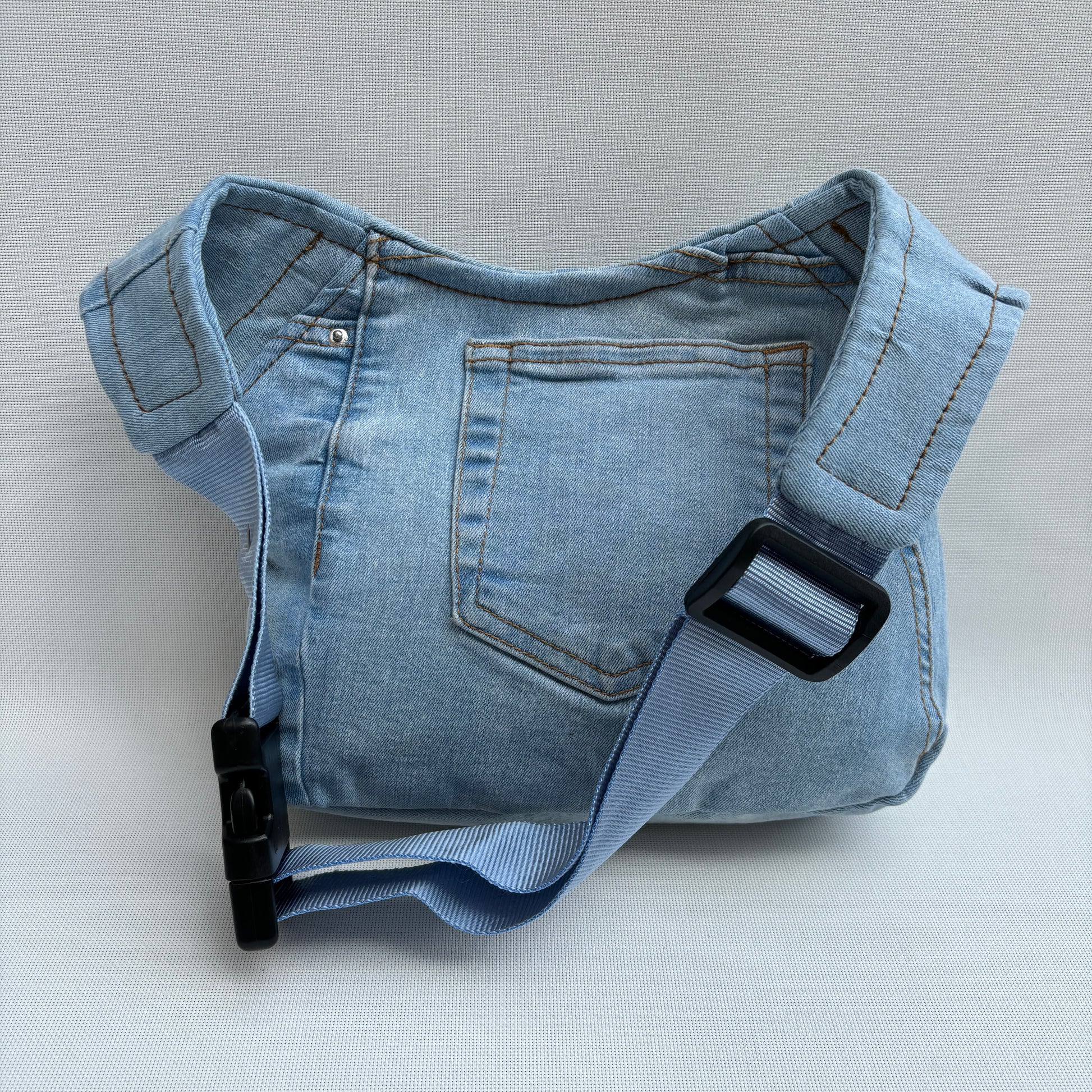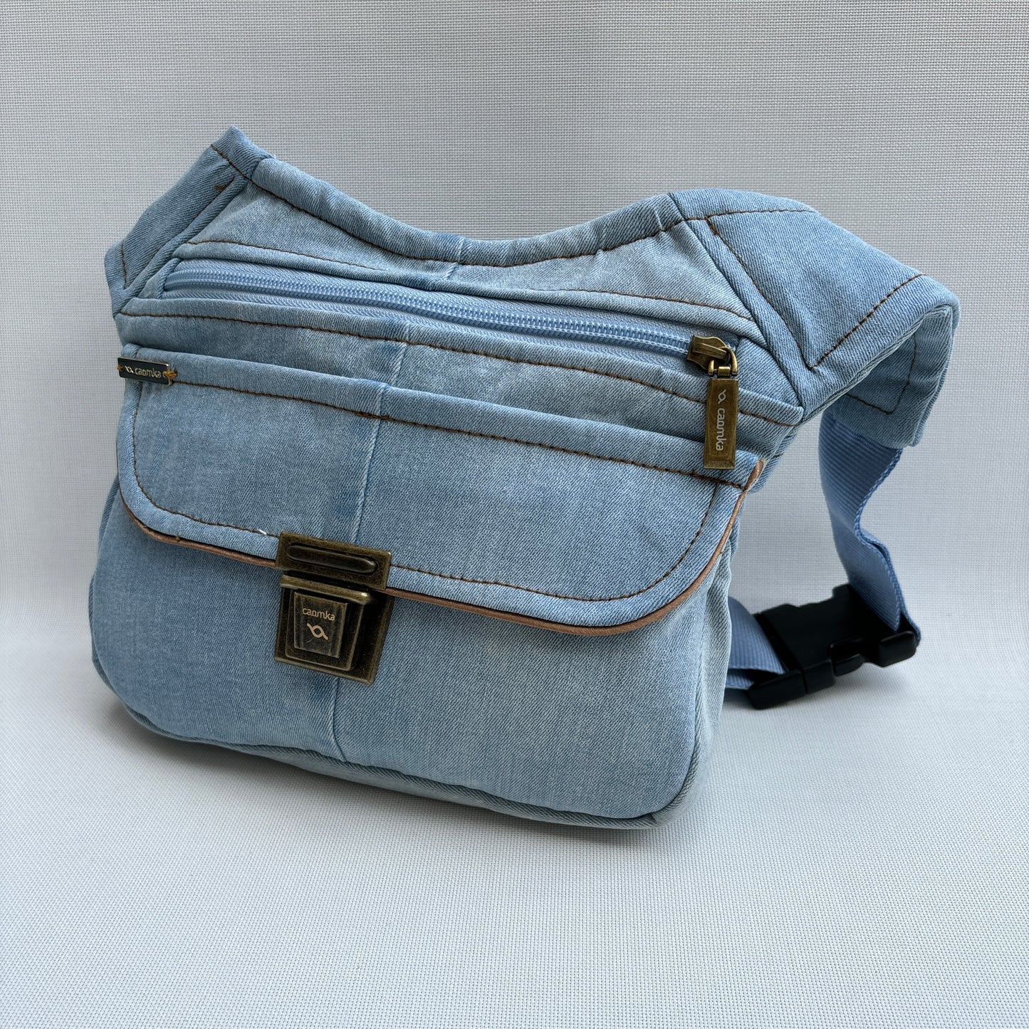 Bolso de Cadera multifunción (Riñonera - Bolso - Bandolera) en tela vaquera reciclada y resistente.