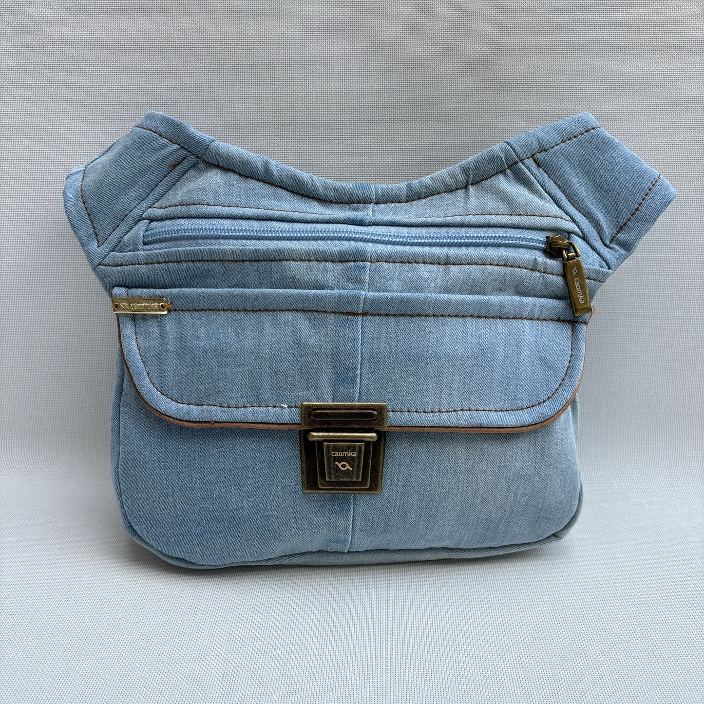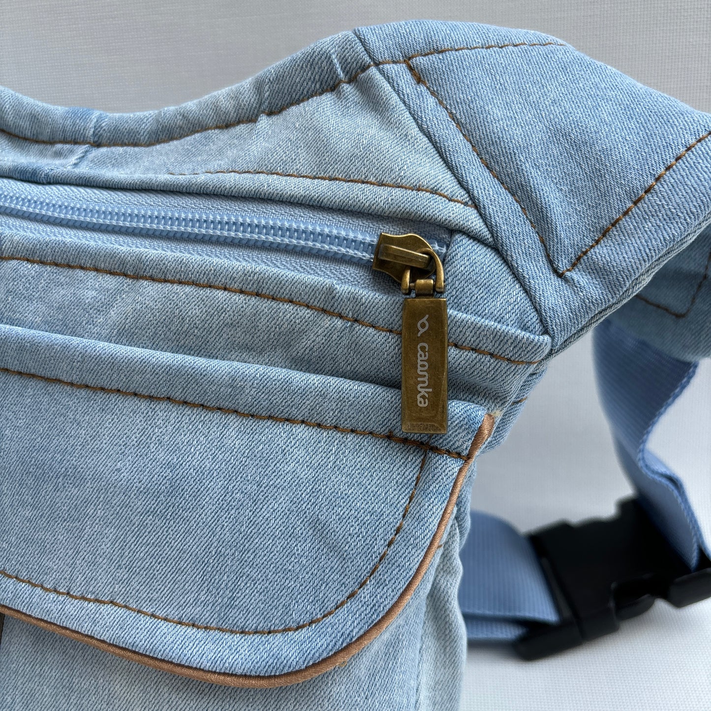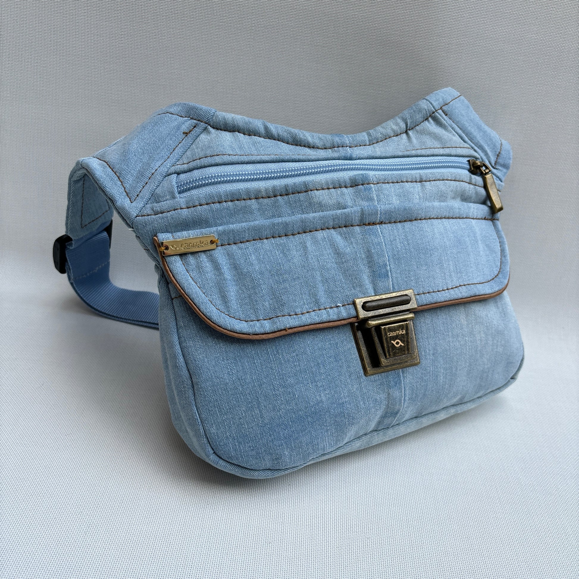 Bolso de Cadera multifunción (Riñonera - Bolso - Bandolera) en tela vaquera reciclada y resistente.