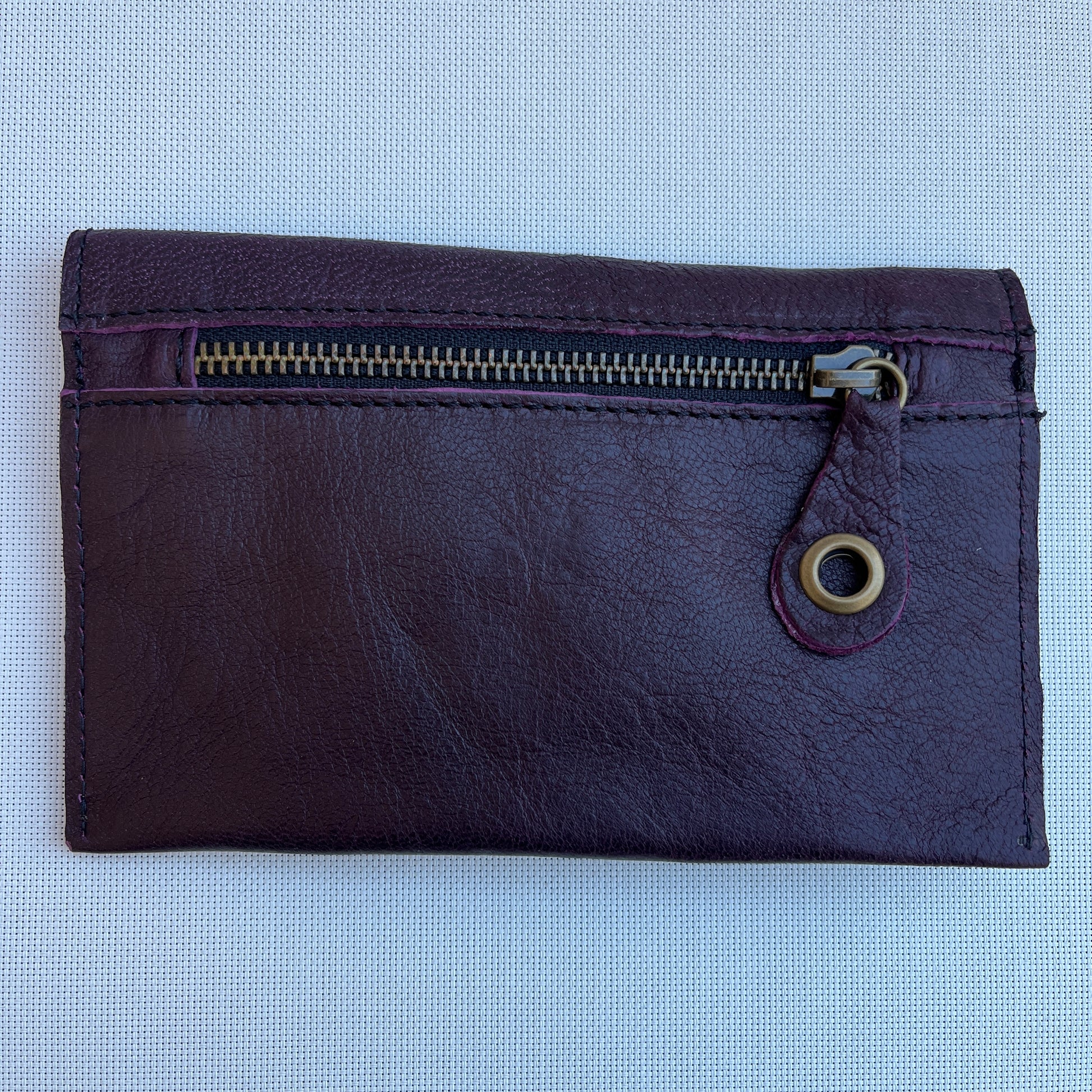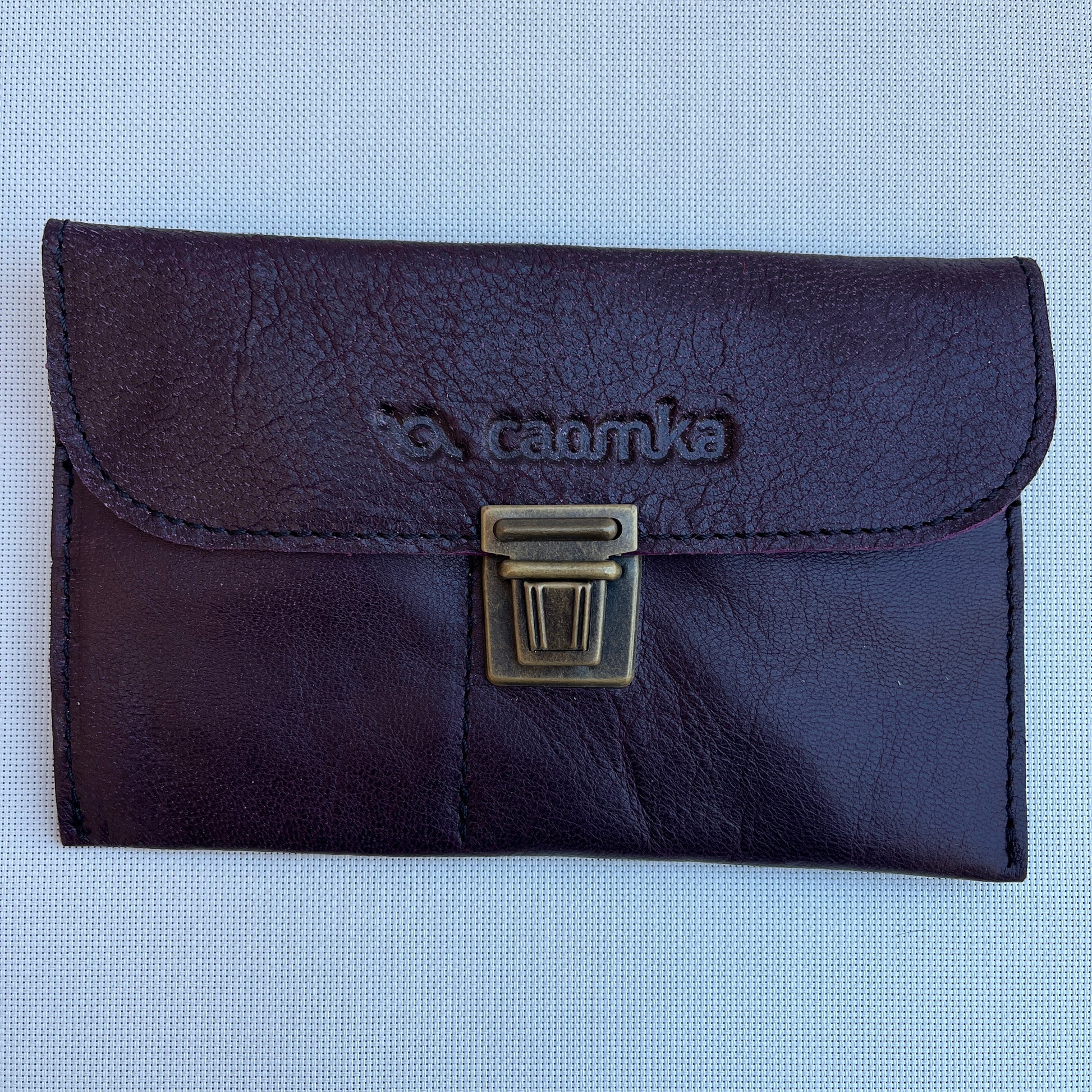 Monedero Plano en Piel natural BioCuir® CAOMKA en color Lila