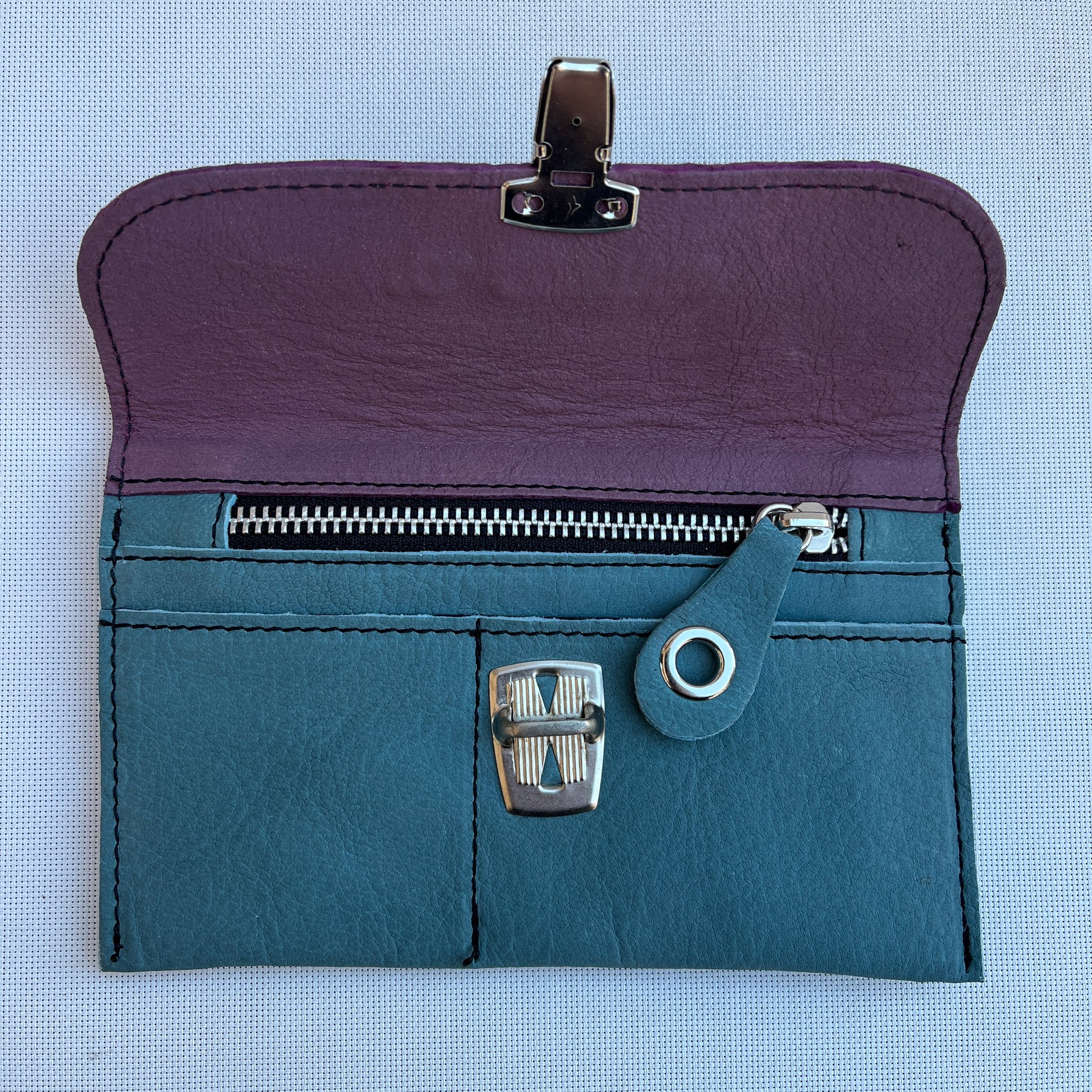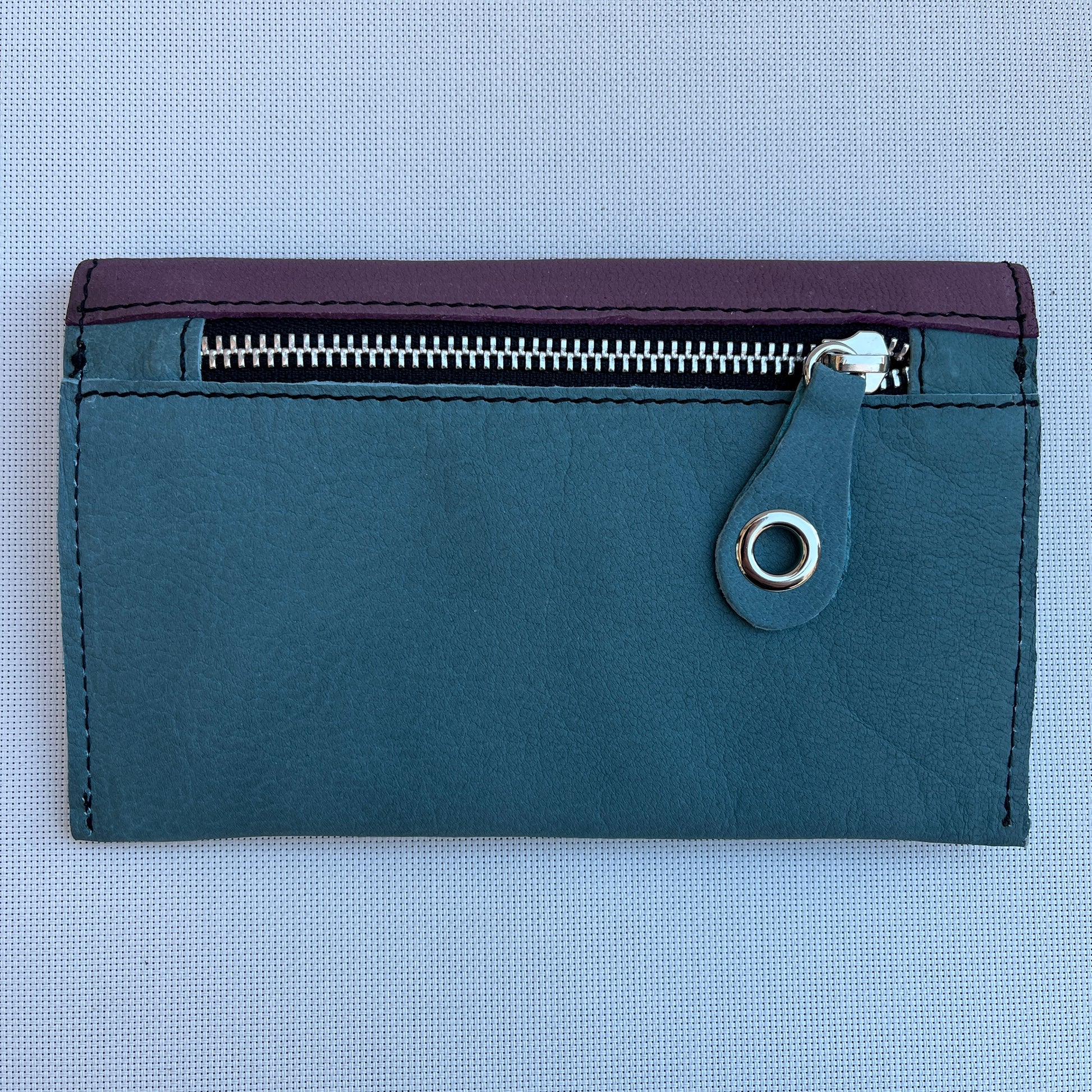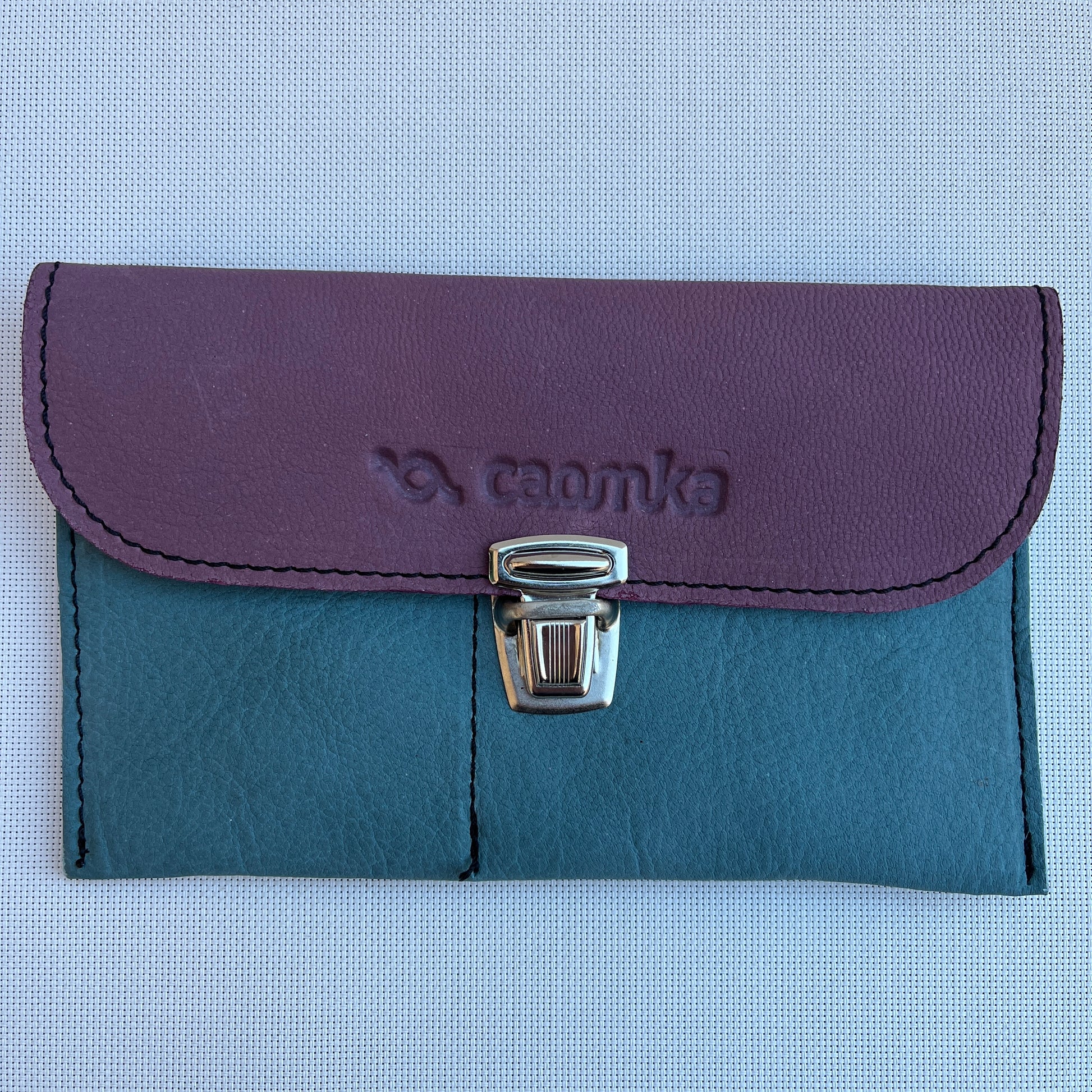 Monedero Plano en Piel natural BioCuir® CAOMKA en color Azul Petroleo y Burdeos Claro
