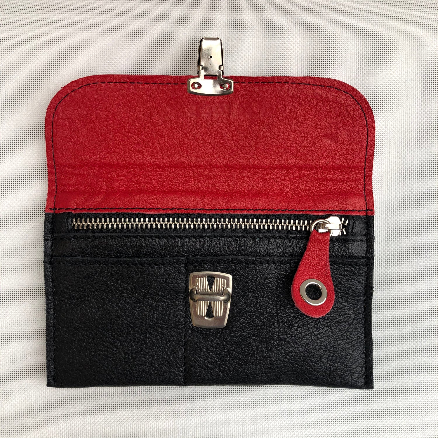 Monedero Plano en Piel natural BioCuir® CAOMKA en color Negro y Rojo
