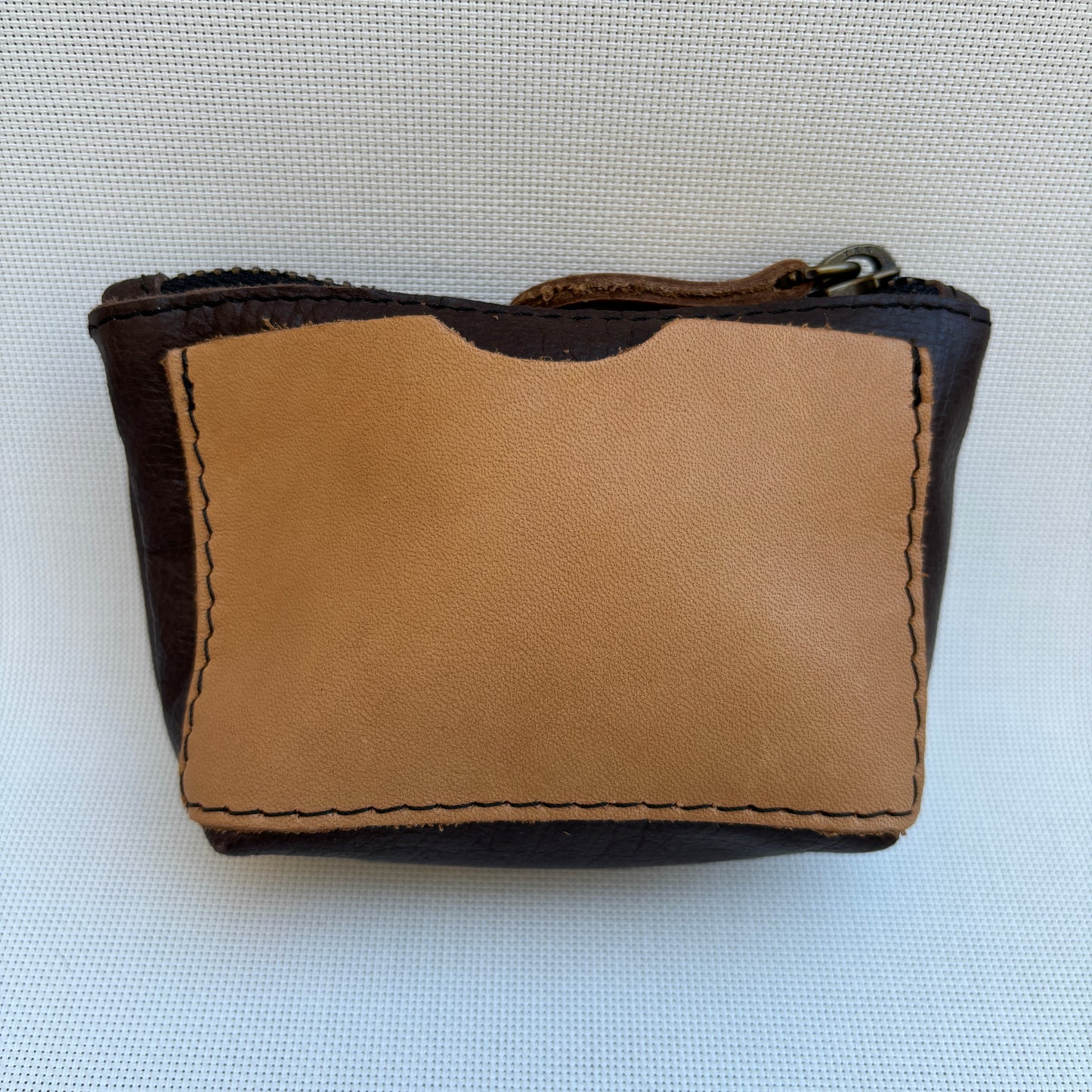 Monedero CAOMKA ideal tarjetas y monedas en Piel color marrón oscuro y camel.