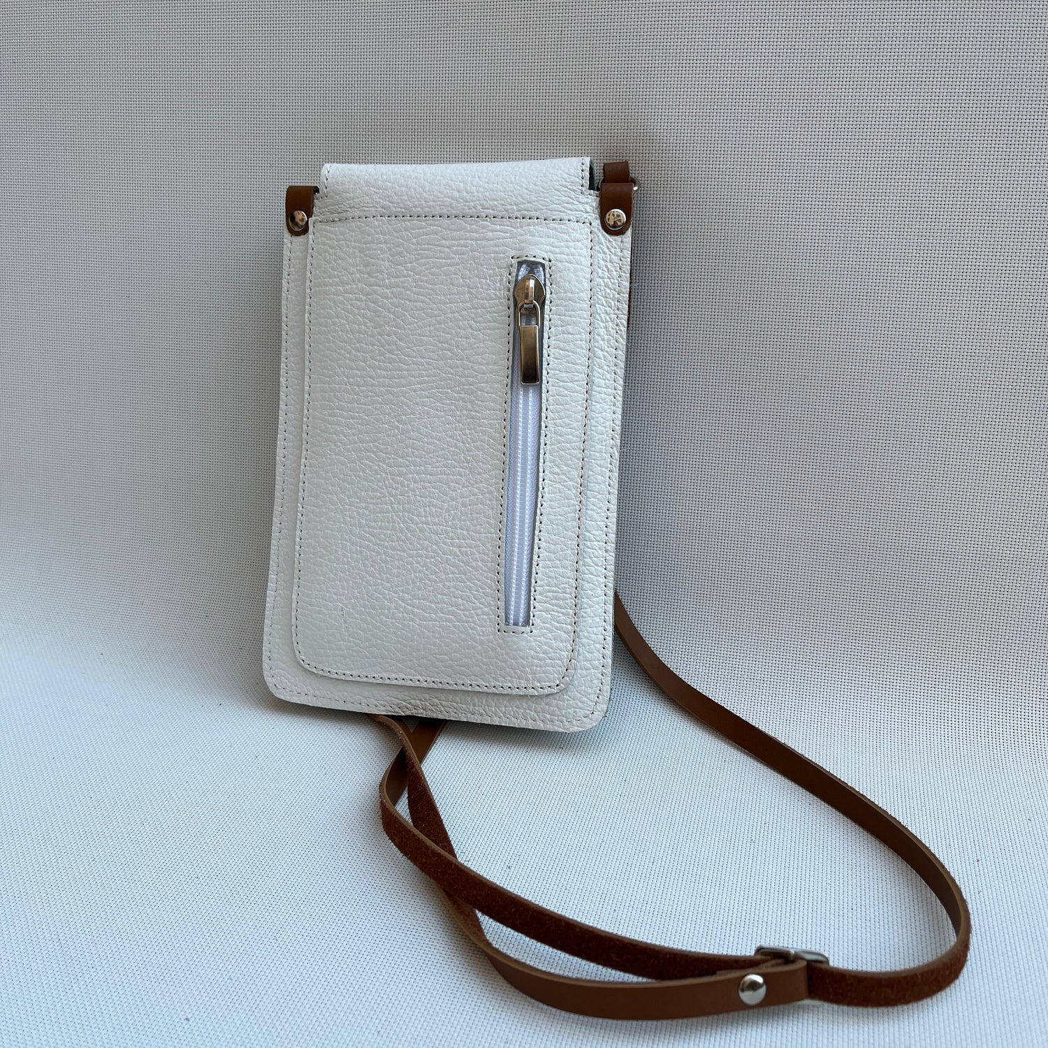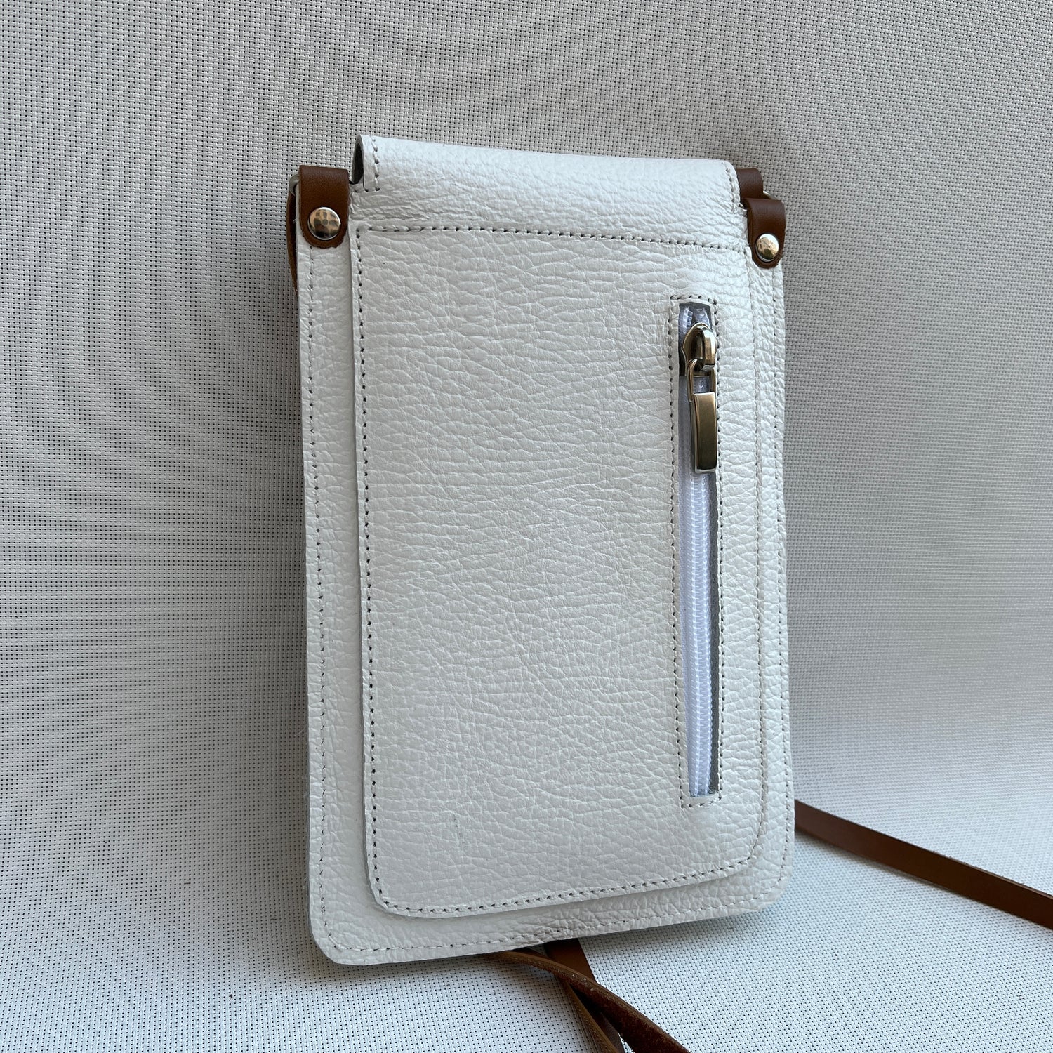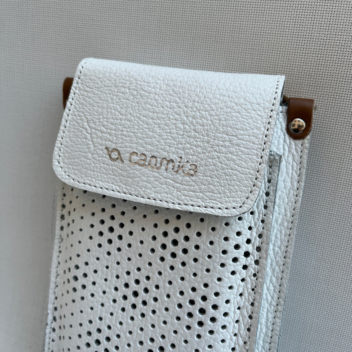 Bolsito ideal para llevar el móvil en piel natural perforada.