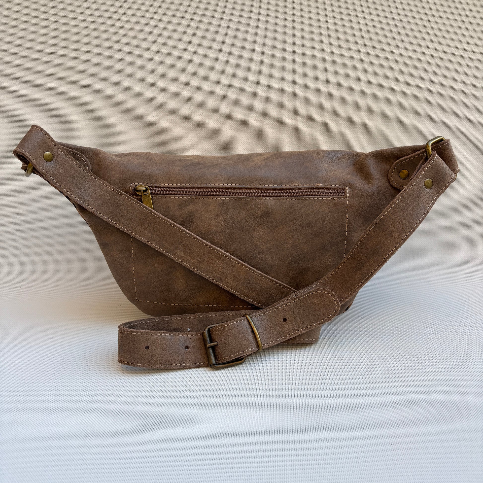 Riñonera confeccionada en piel con un barniz especial para facilitar su cuidado y protección.