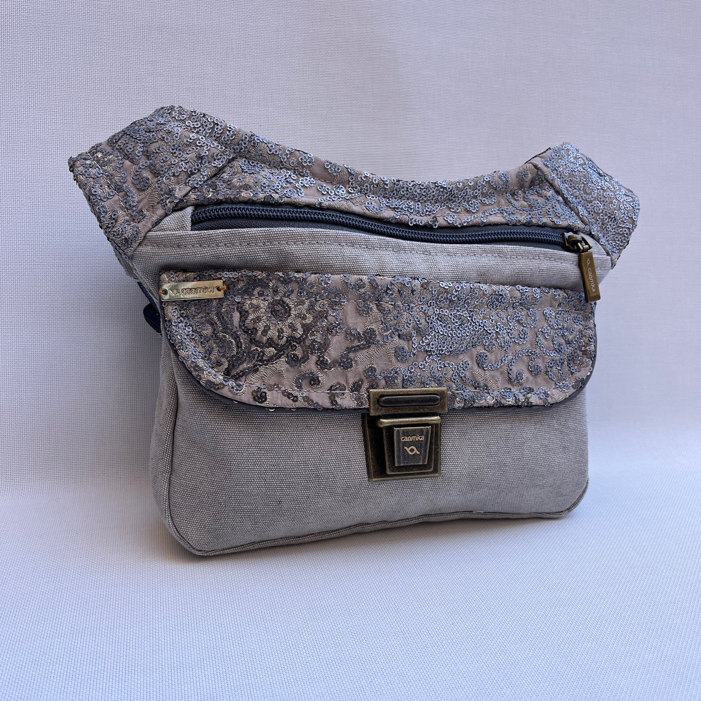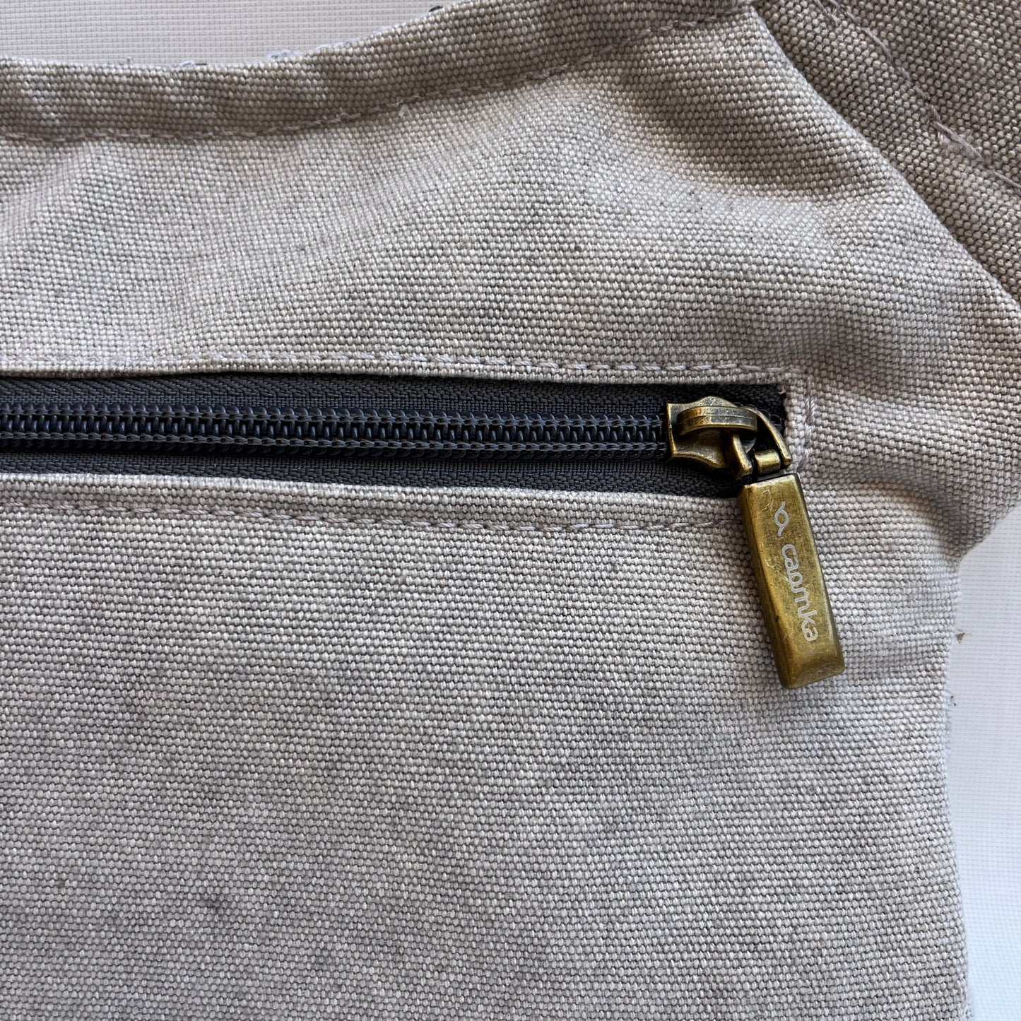 Cremallera original en color gris a juego con tirador especial en Oro Viejo.