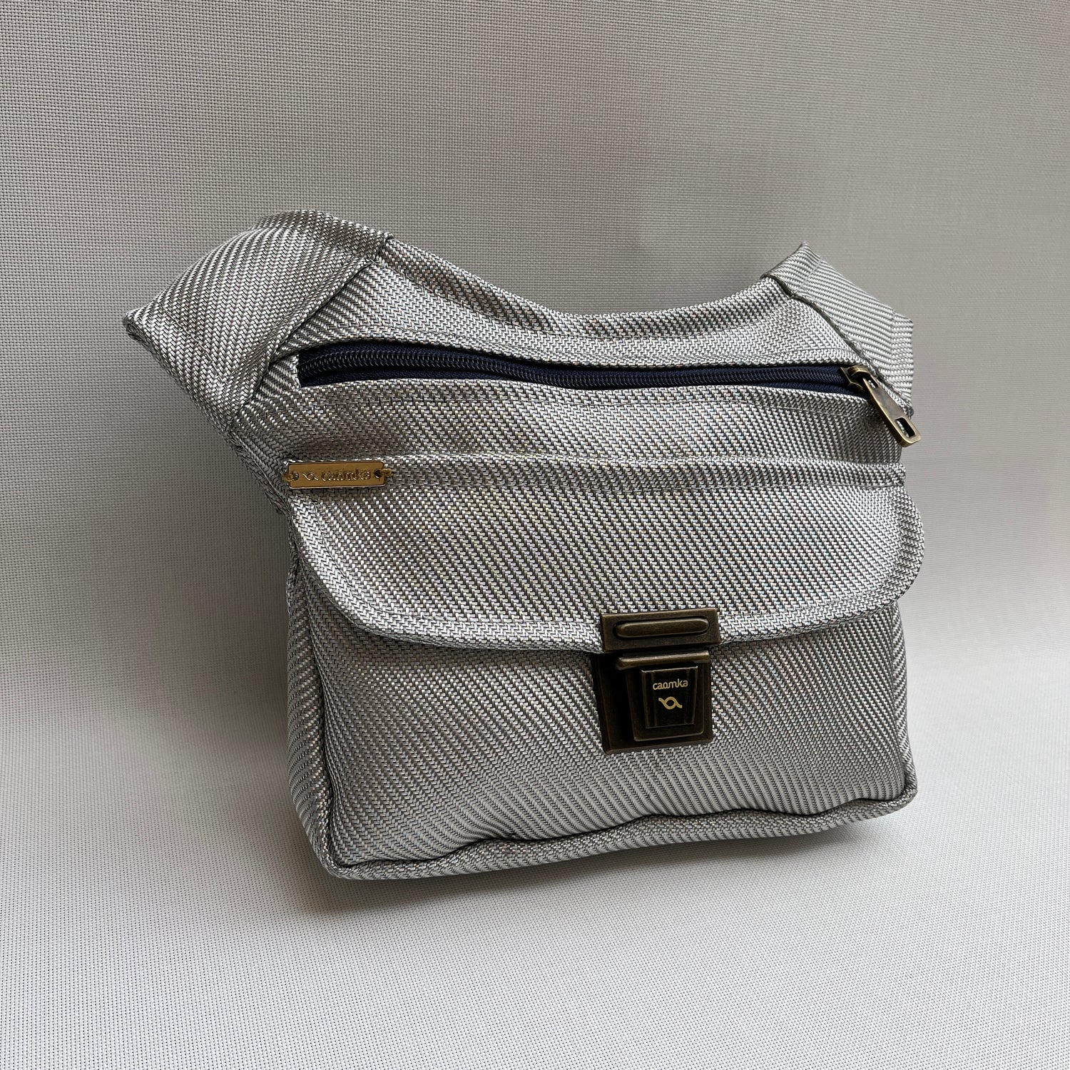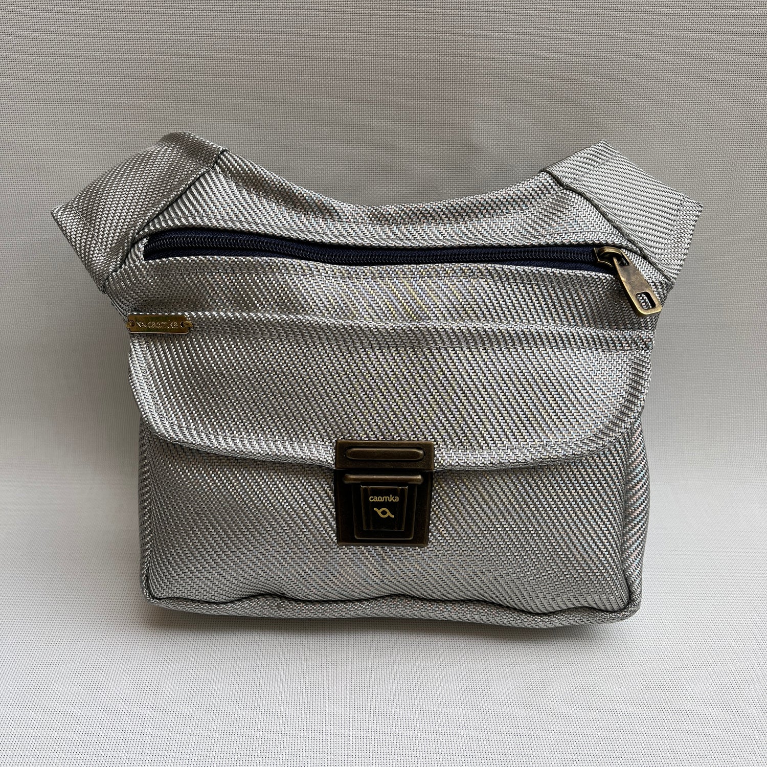Cremallera original en color azul marino con tirador especial Caomka en Oro Viejo.