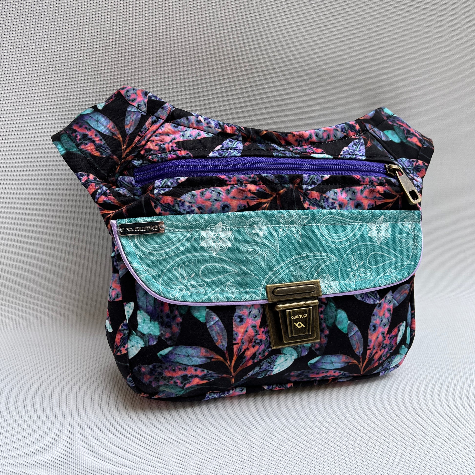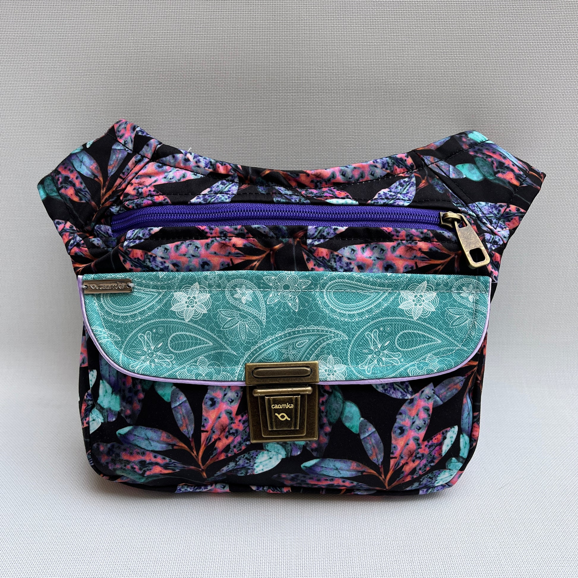 Cremallera original en color lila con tirador especial Caomka en color Oro Viejo.