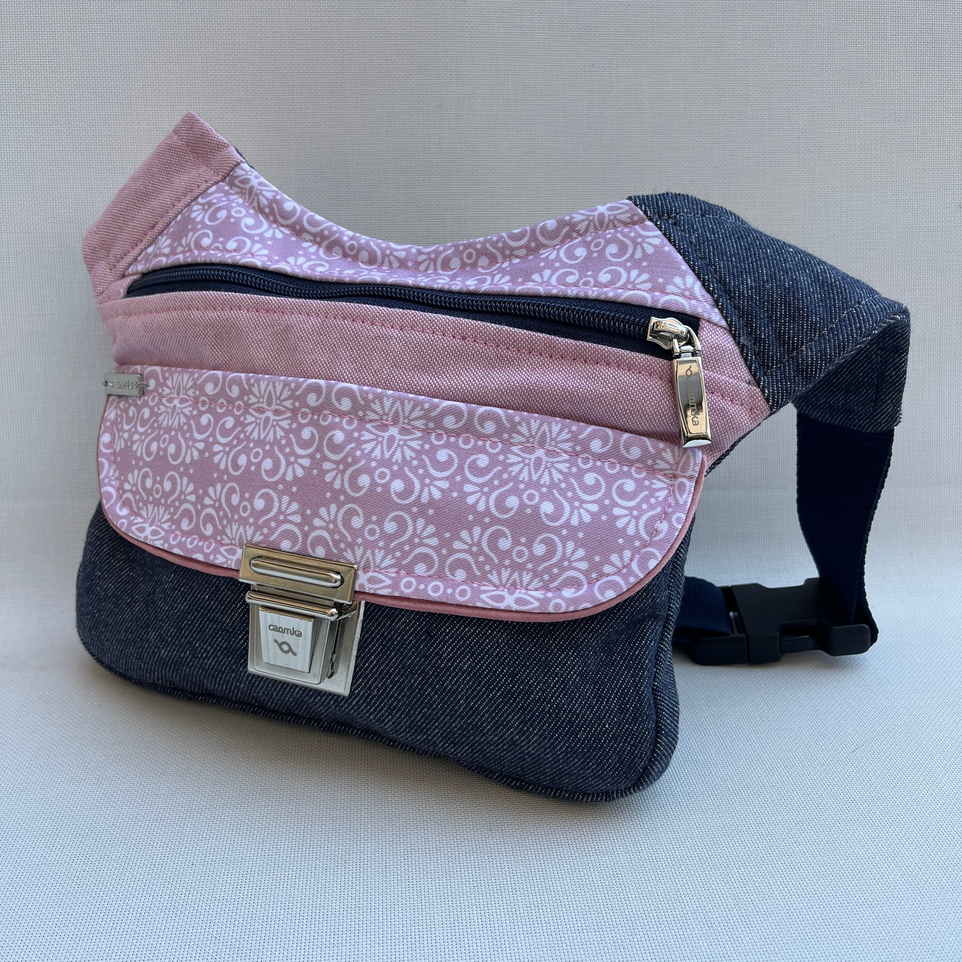Bolso de Cadera multifunción (Riñonera - Bolso - Bandolera) en tela vaquera reciclada y resistente.