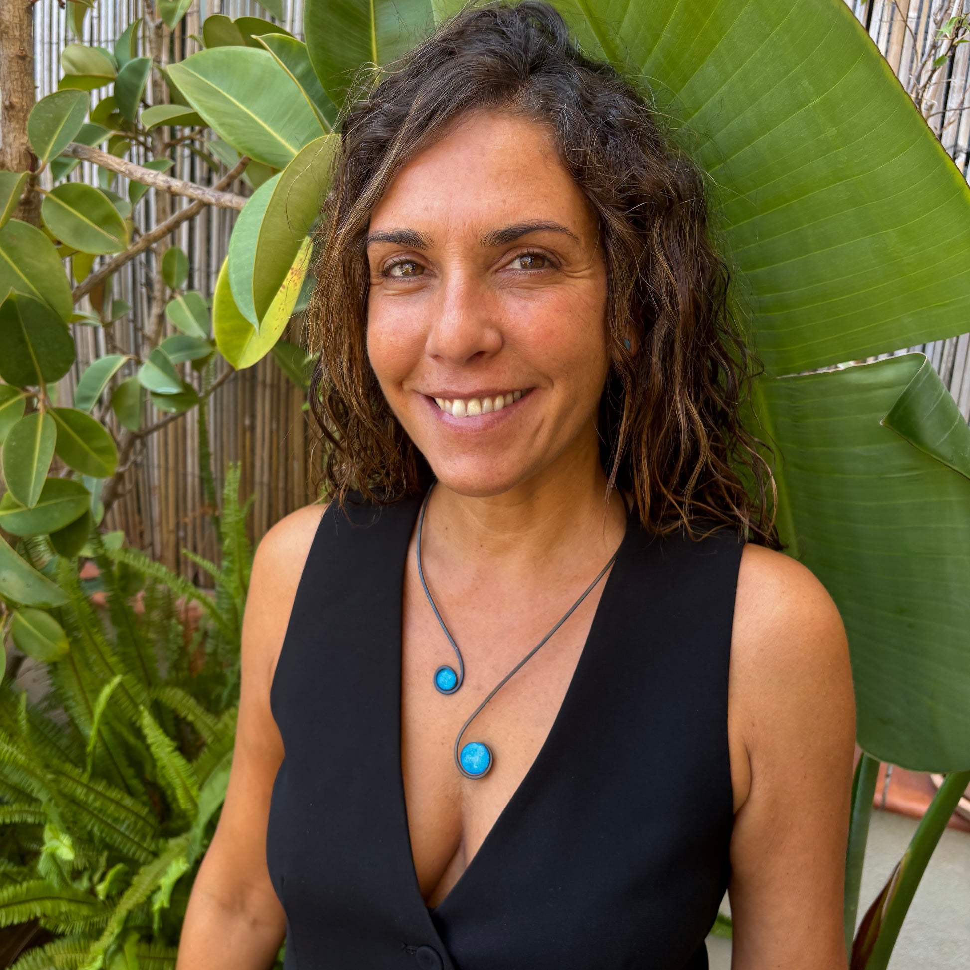 Presentamos el Collar Doble Sol Azul Mediterráneo, una colaboración exclusiva de Caomka con el artista Mauricio Andrade. Hecho a mano en Barcelona, combina la profundidad del vidrio fundido azul con la fluidez del hierro forjado, en un diseño natural, minimalista y lleno de paz.