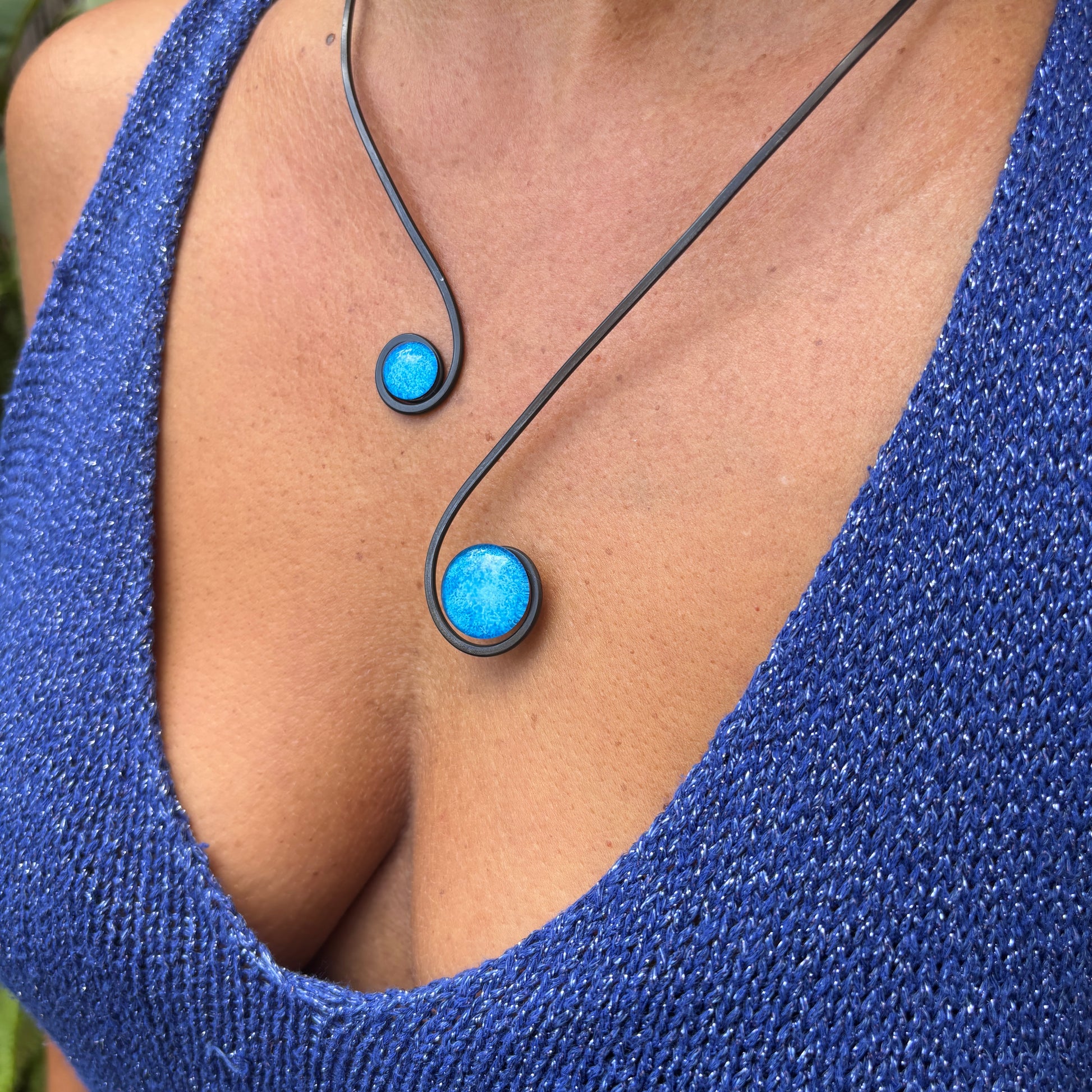 Collar "Doble Sol Azul" – Vidrio fundido y hierro forjado.