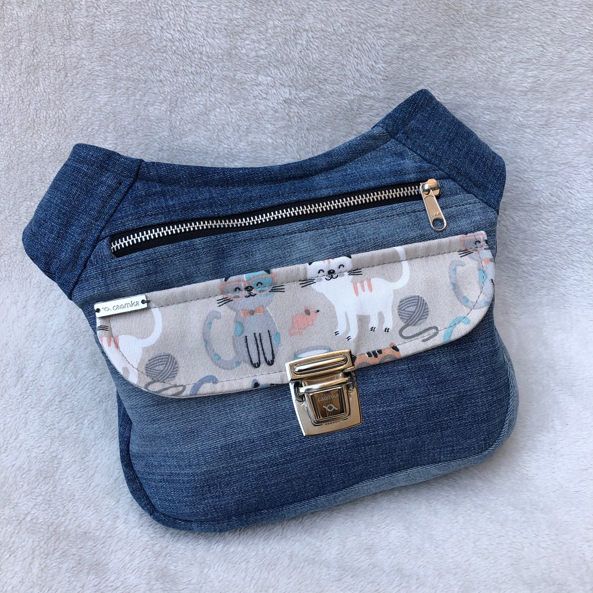 Riñonera de diseño: "Jeans Recycled & Cats"