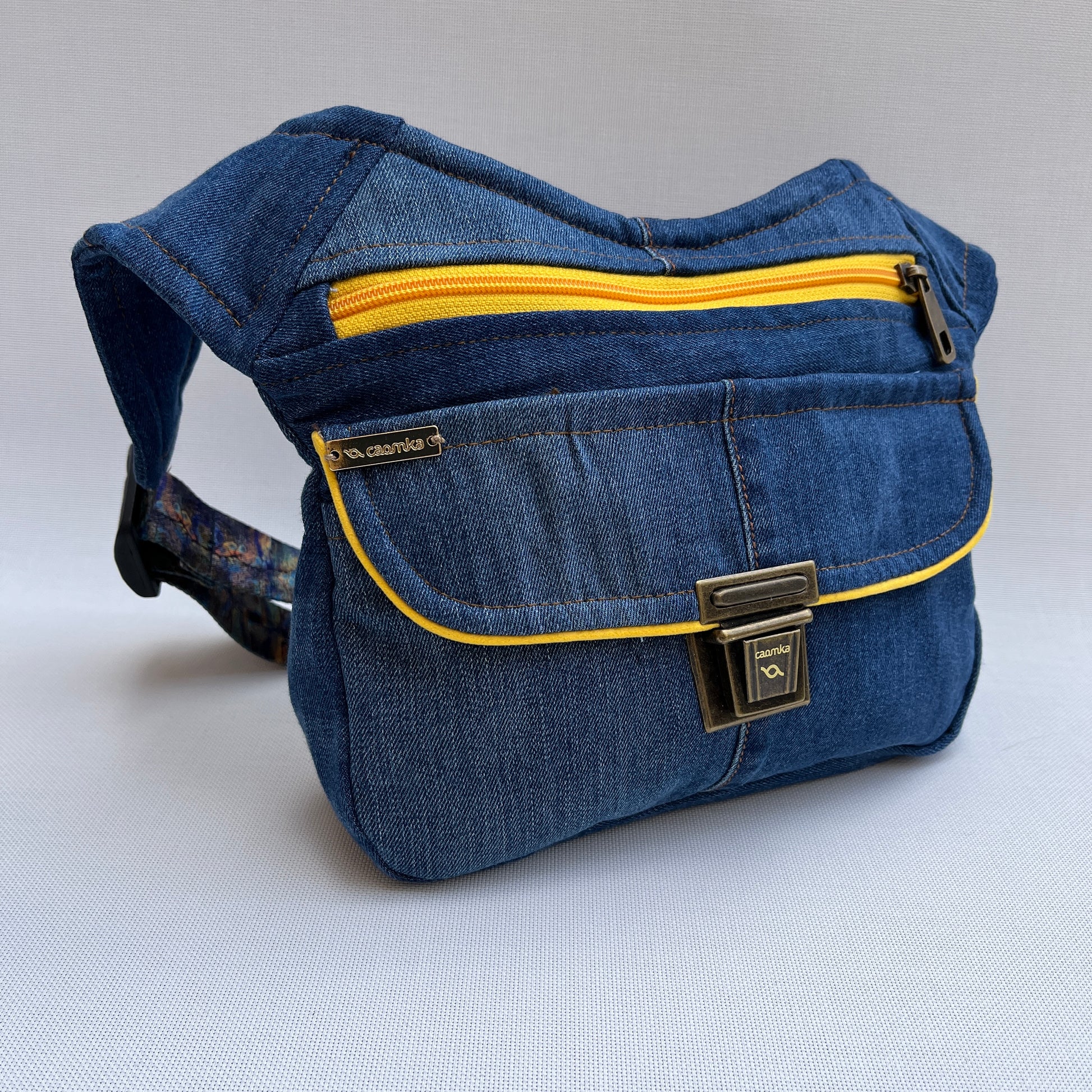 Bolso de Cadera multifunción (Riñonera - Bolso - Bandolera) en tela vaquera reciclada y resistente.