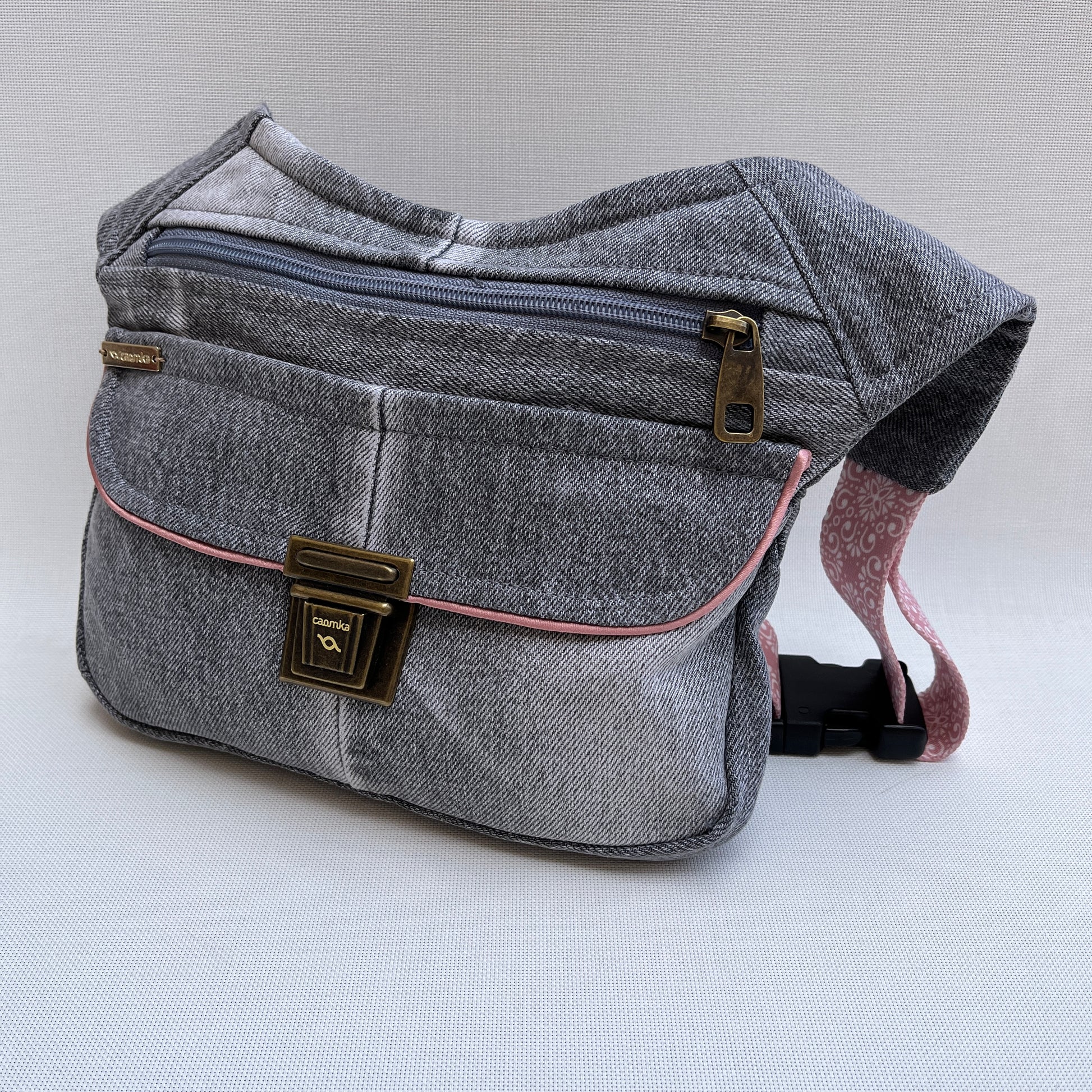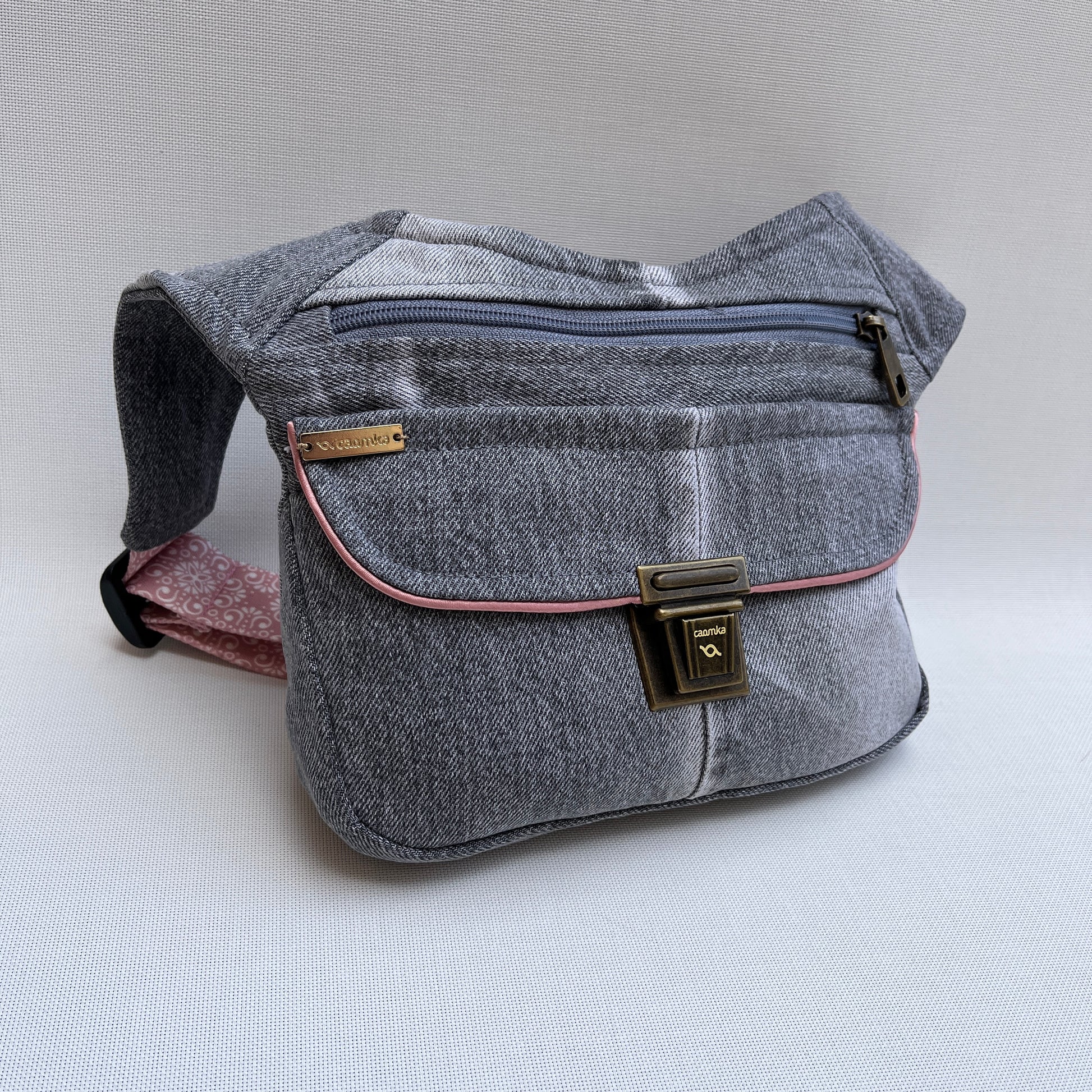 Bolso de Cadera multifunción (Riñonera - Bolso - Bandolera) en tela vaquera reciclada y resistente.