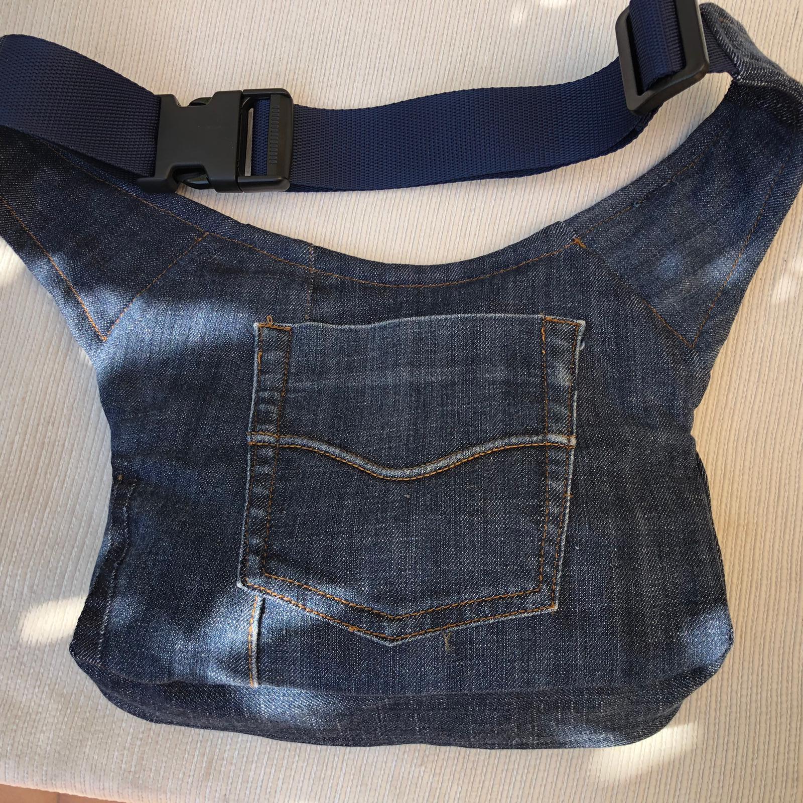 Bolso de Cadera multifunción (Riñonera - Bolso - Bandolera) en tela vaquera reciclada y resistente.