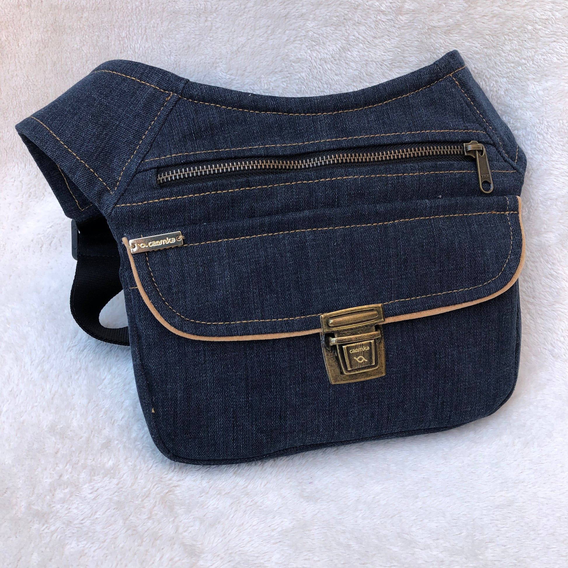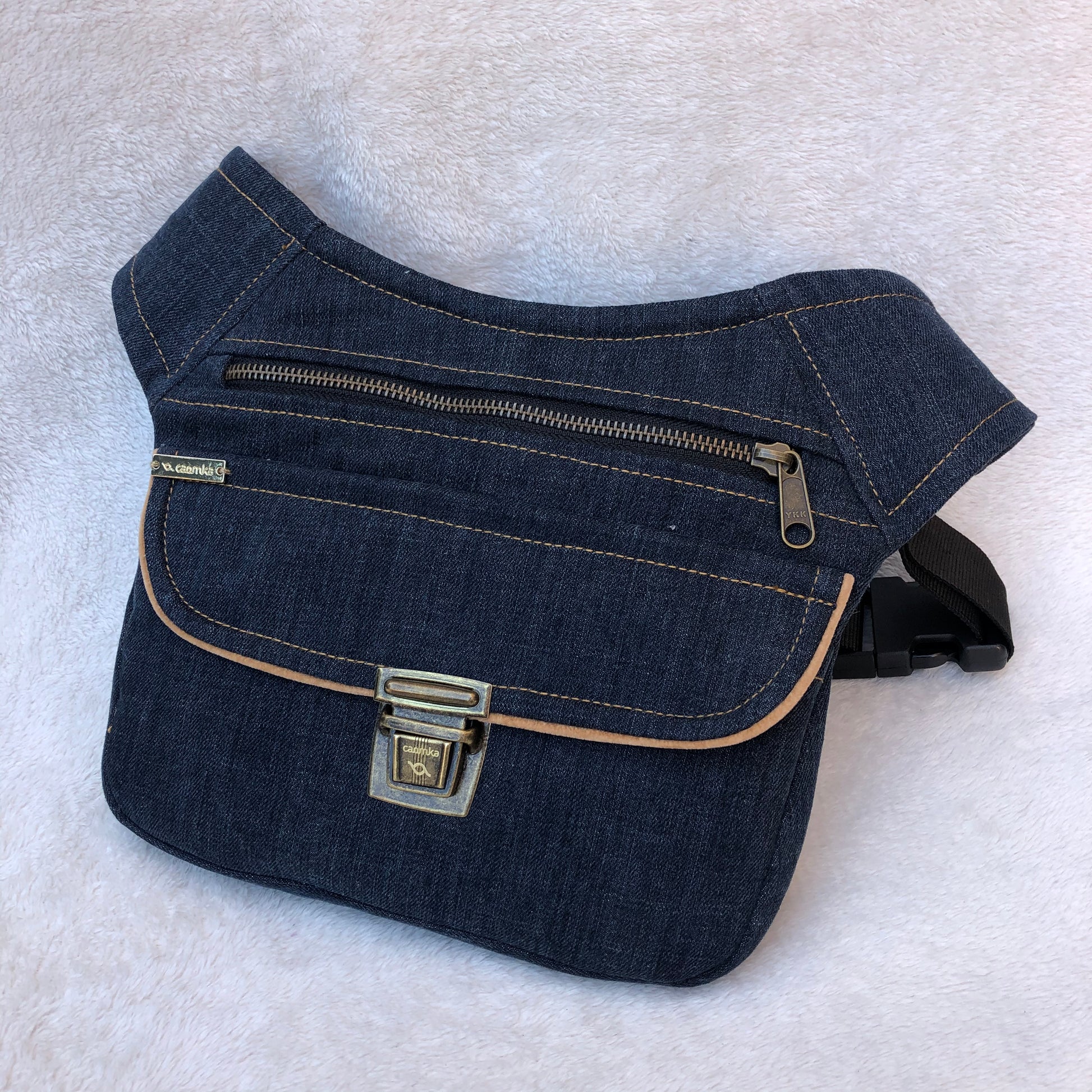 Bolso de Cadera multifunción (Riñonera - Bolso - Bandolera) en tela vaquera reciclada y resistente.