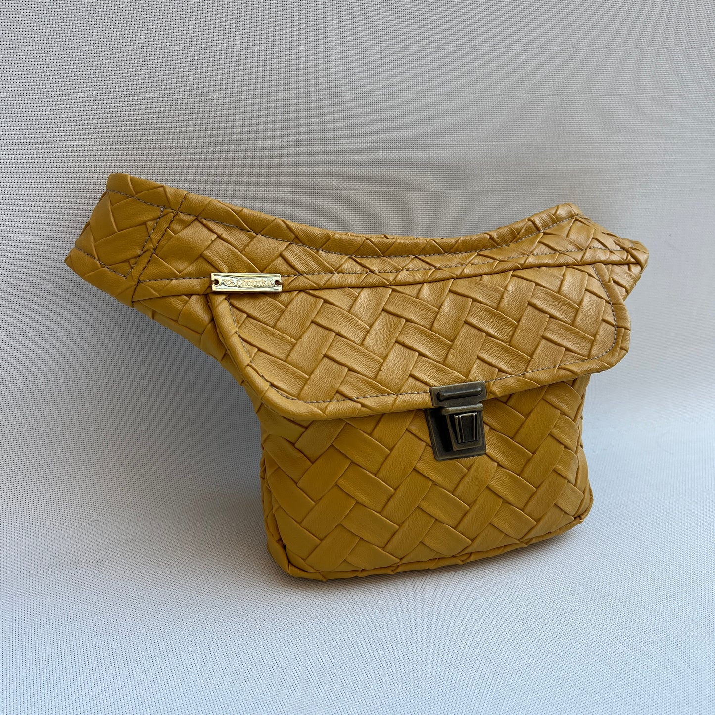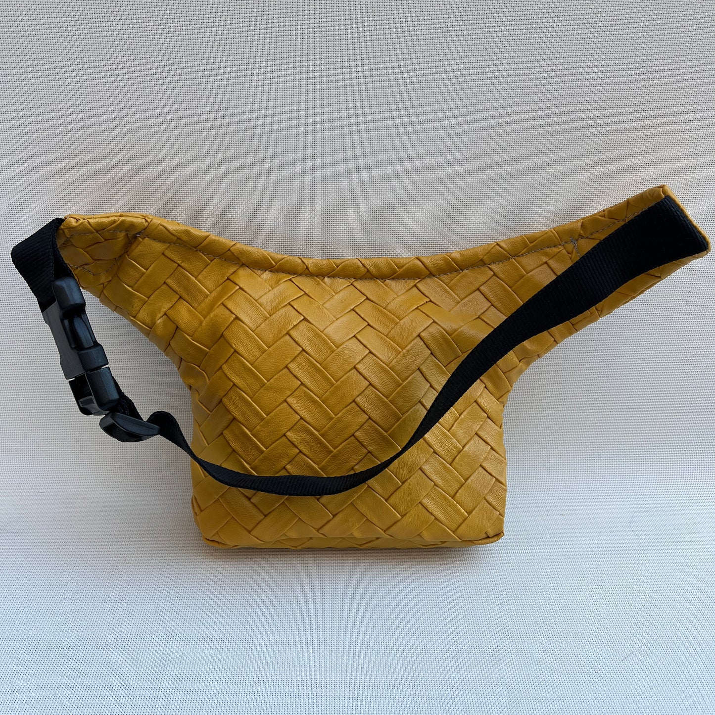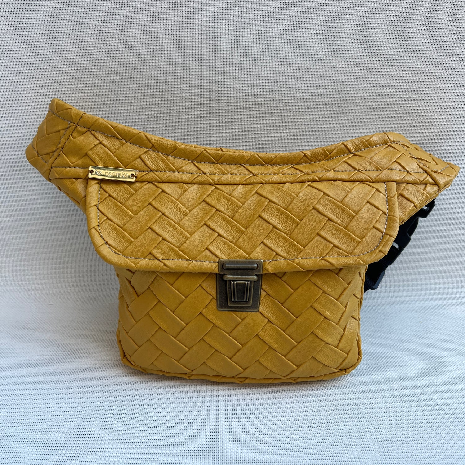 Mini Bolso de Cadera multifunción (Riñonera - Bolso - Bandolera) en tela exclusiva y resistente en diseño: "Happy Yellow" Especial para Niño/a.