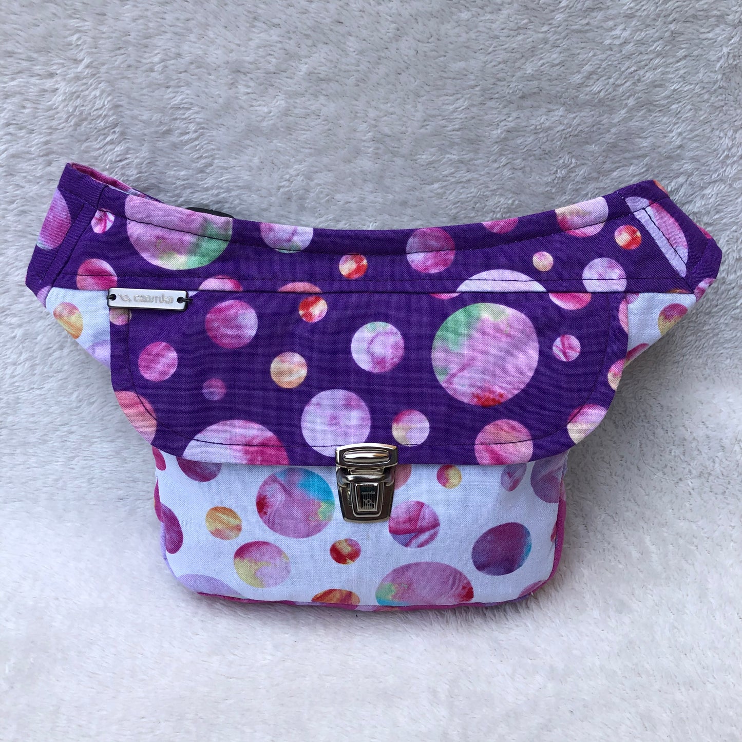 Mini Bolso de Cadera multifunción (Riñonera - Bolso - Bandolera) en tela exclusiva y resistente en diseño: "Mini Colors Dots" Especial para Niño/a.