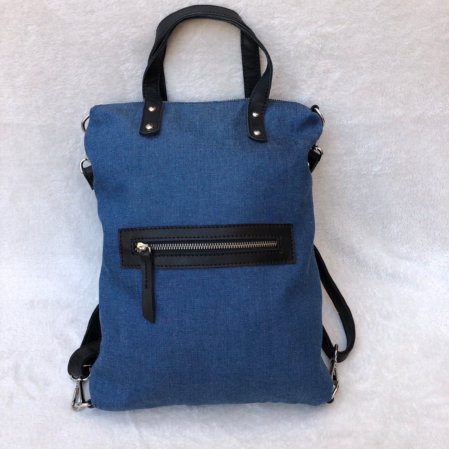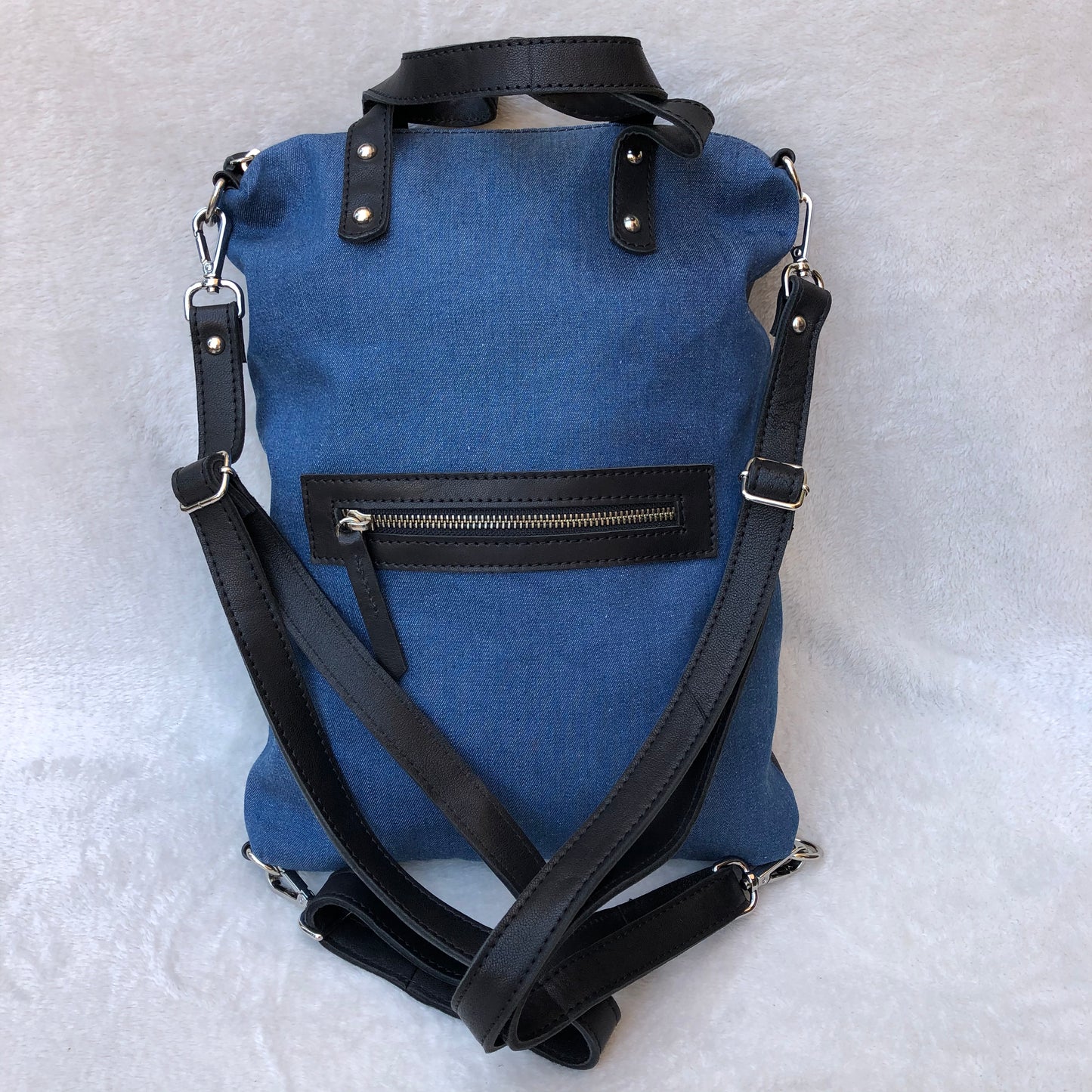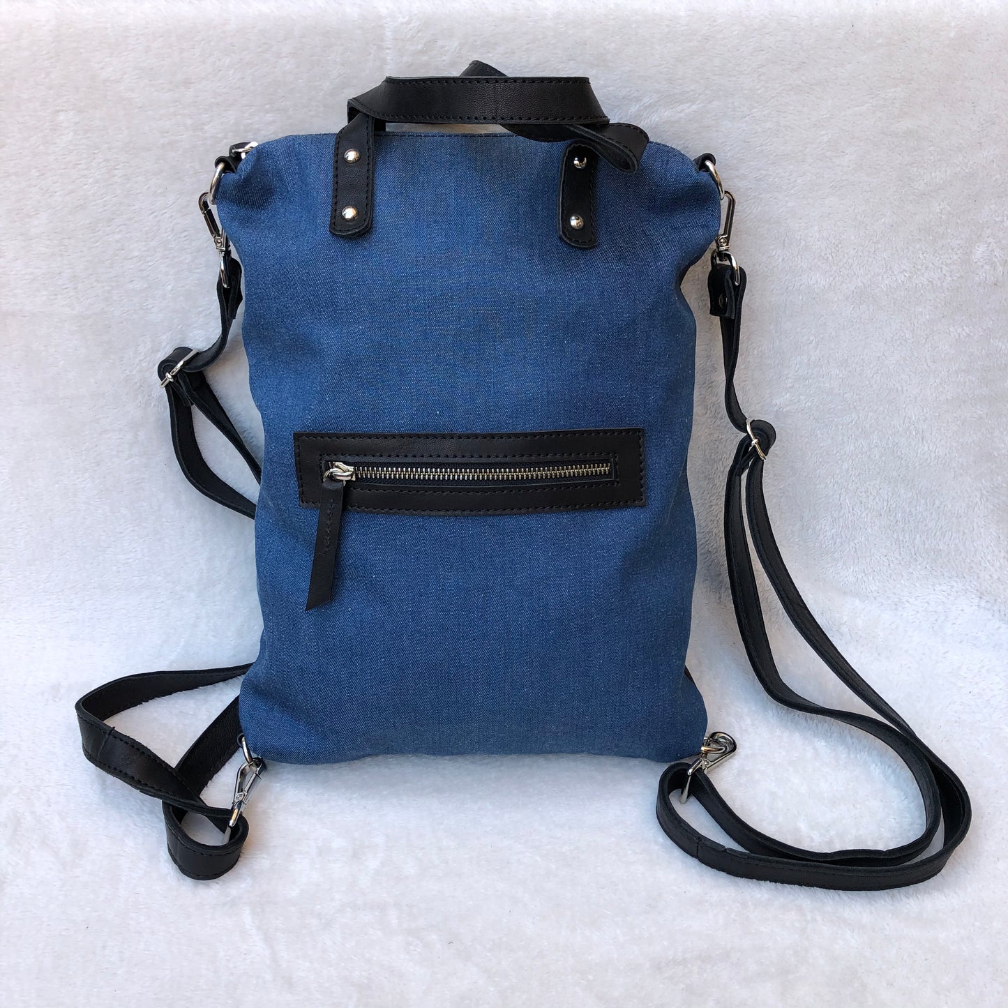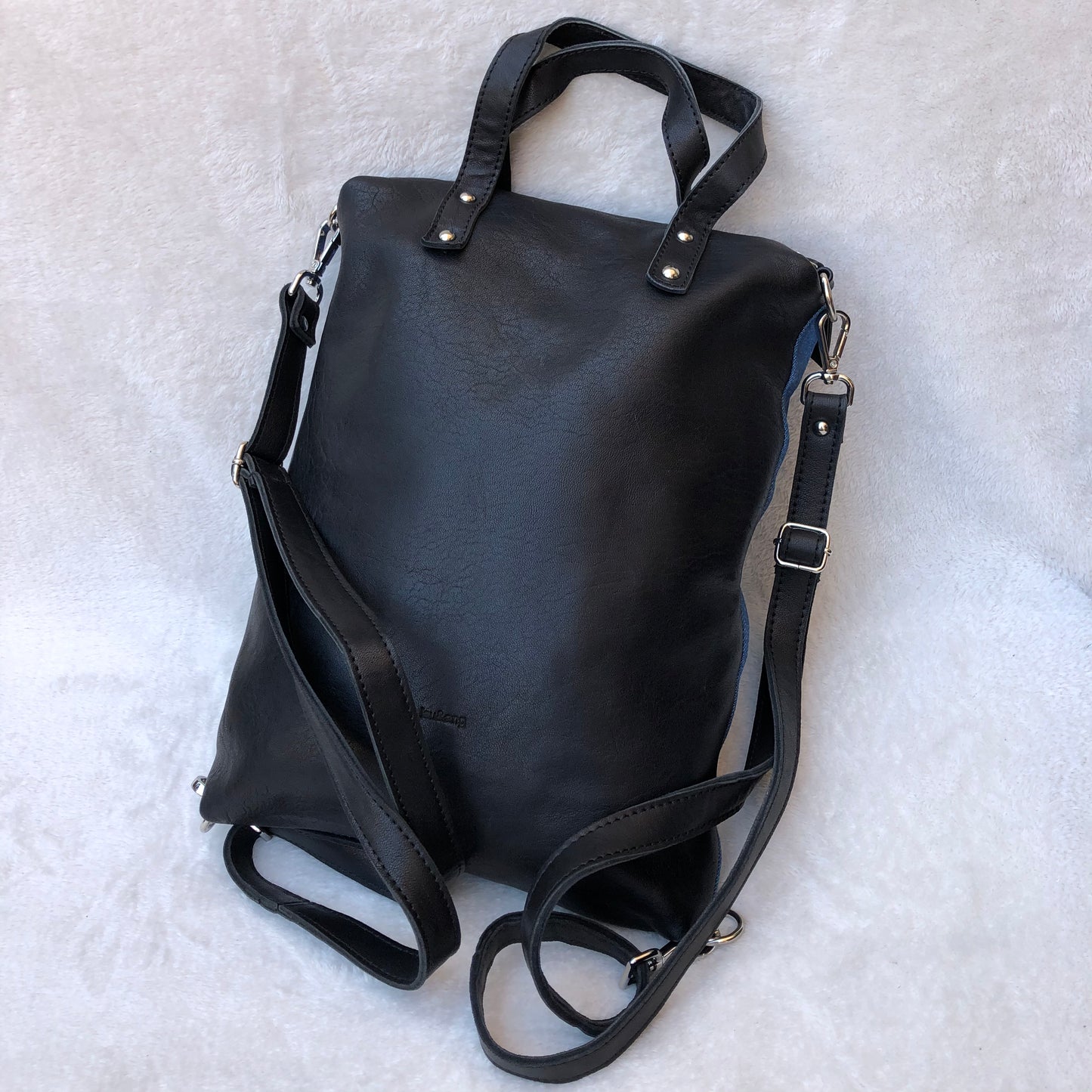 Mochila multifunción (Bandolera-Bolso-Mochila) confeccionado en piel natural Eco Fast® libre de cromo.